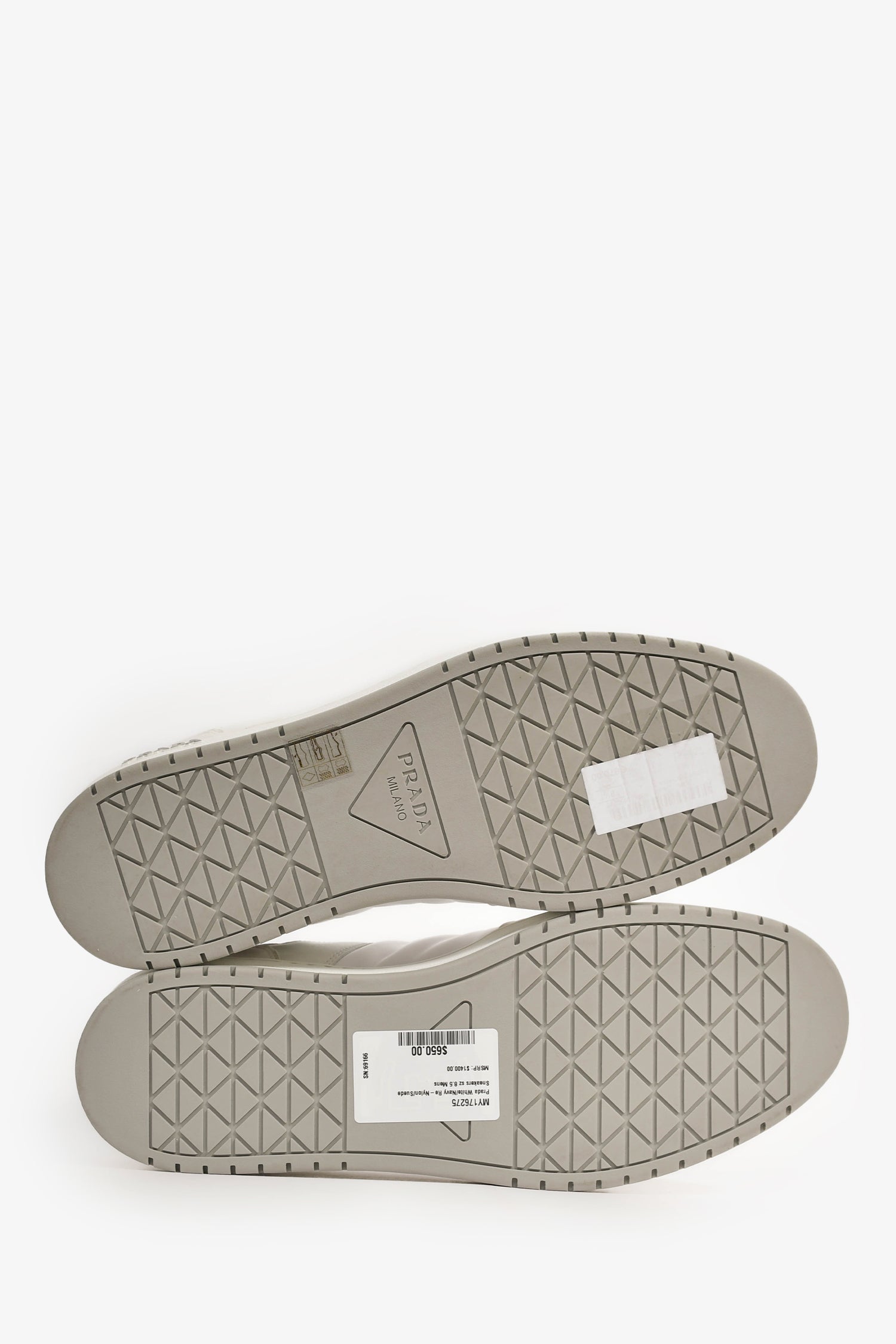 Prada White/Navy Re-Nylon/Suede Sneakers Size 8.5 Mens