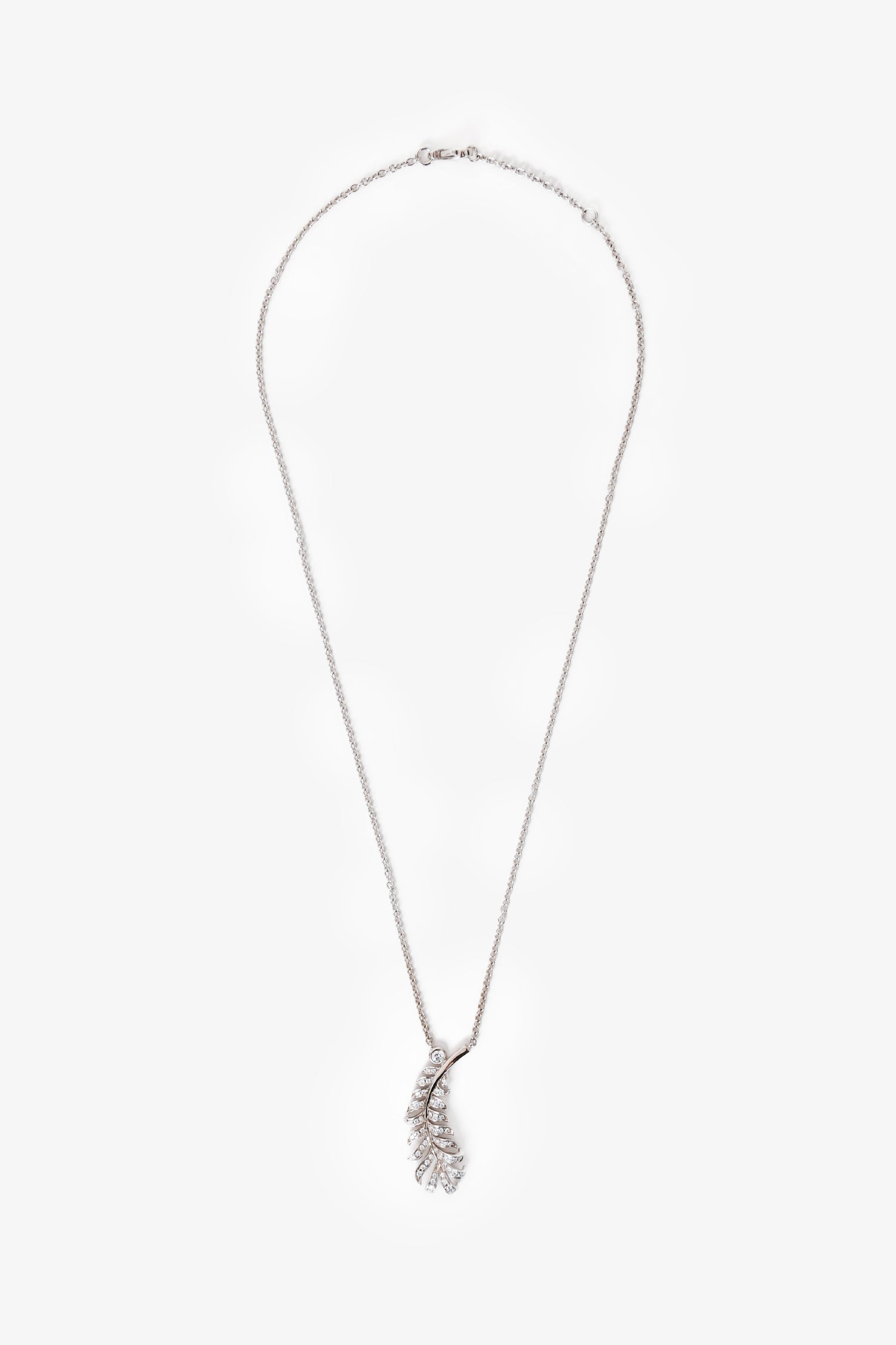 Refresh availabilityPre-Loved Chanel™ 18K White Gold Diamond Set Plume de Chanel Pendant Necklace. Lobster clasp closure.