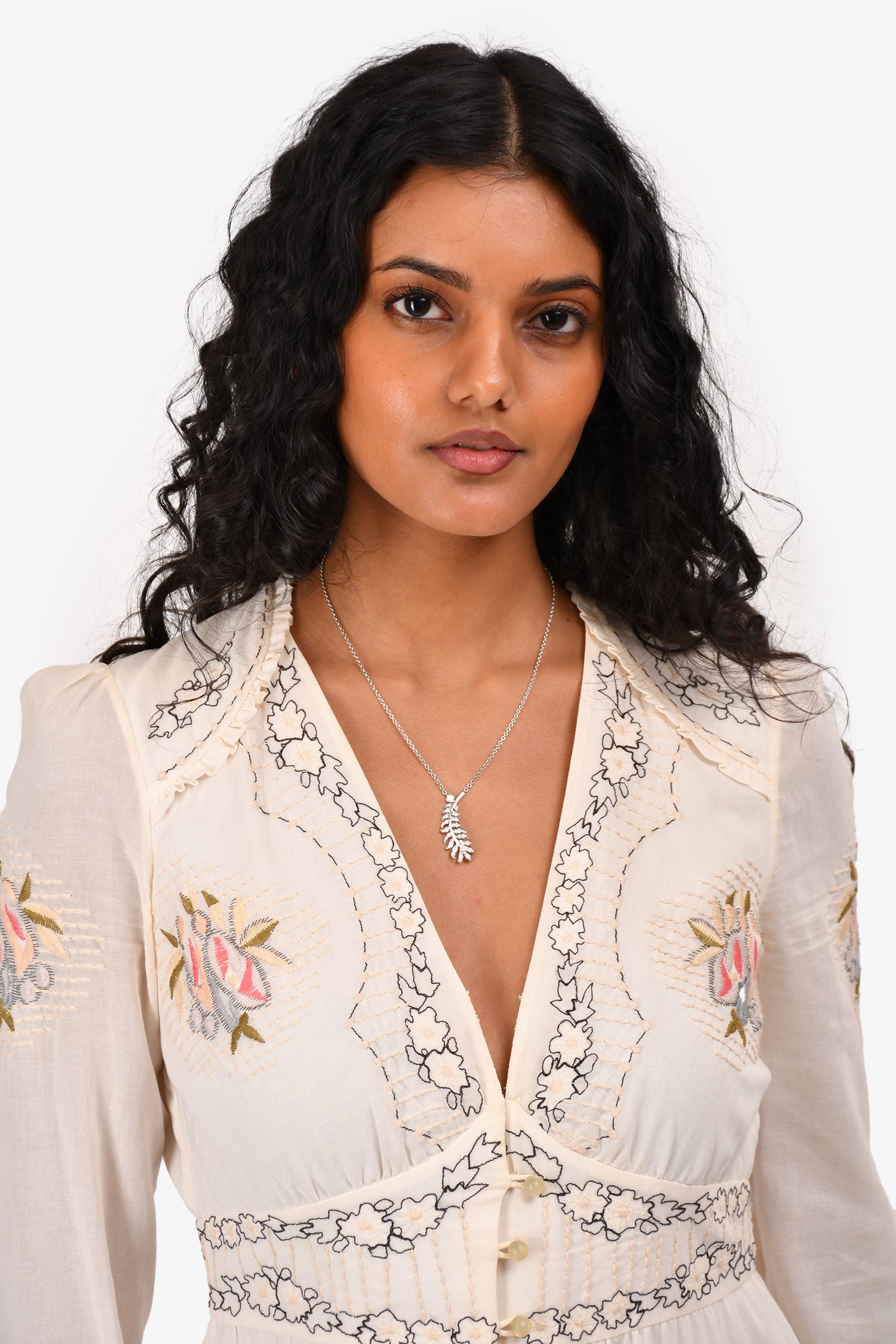 Pre-Loved Chanel™ 18K White Gold Diamond Set Plume de Chanel Pendant Necklace