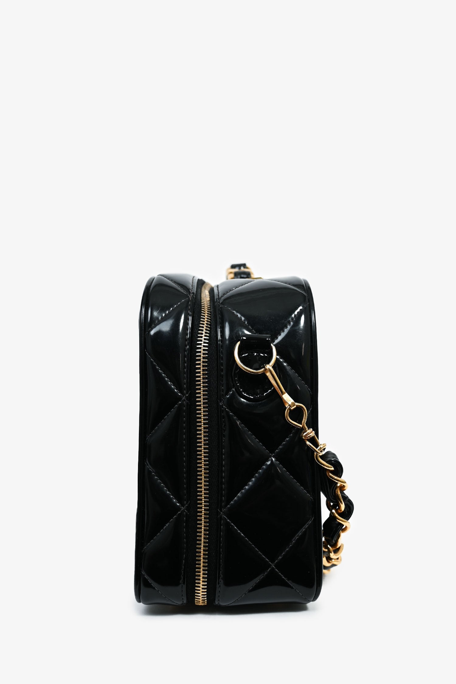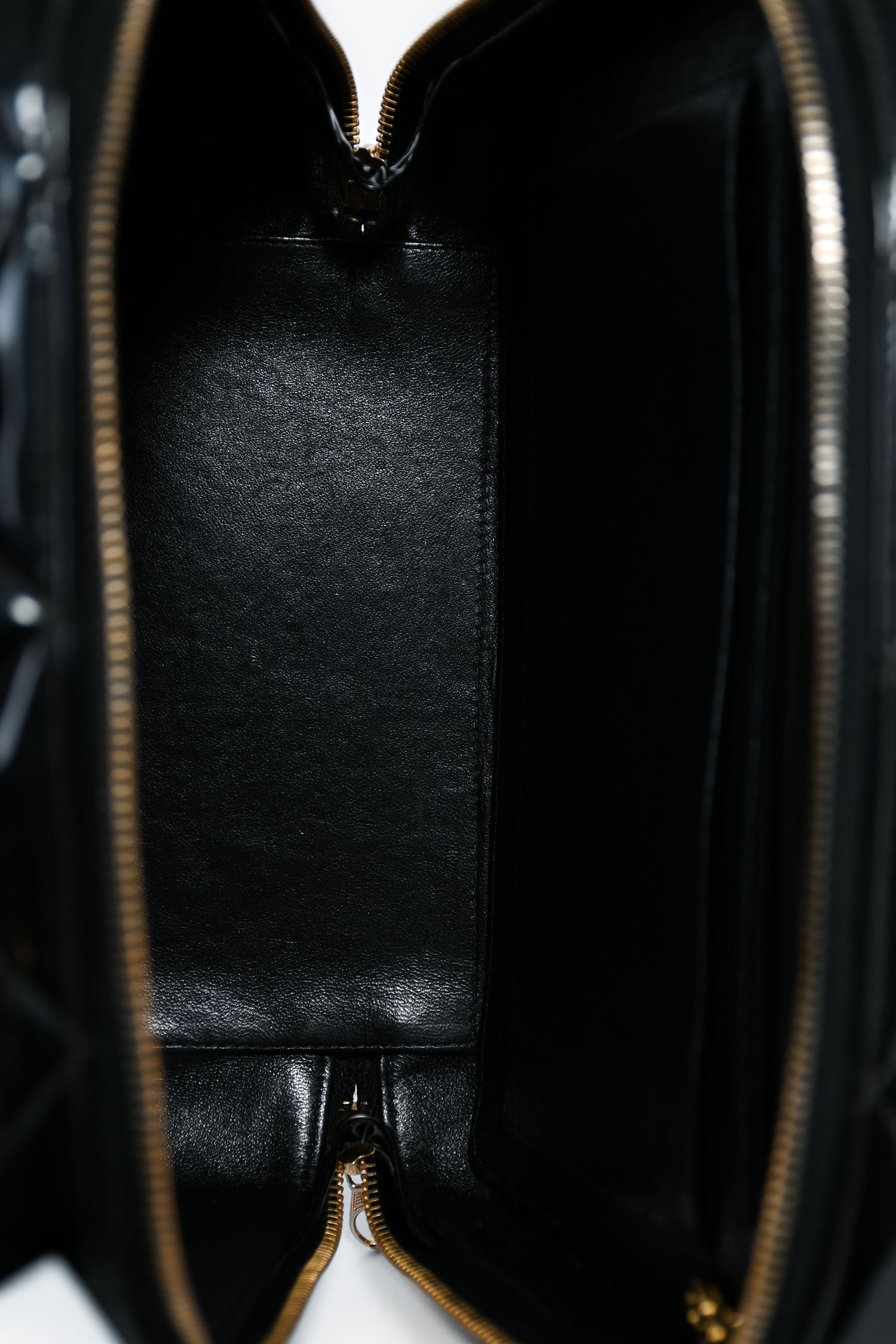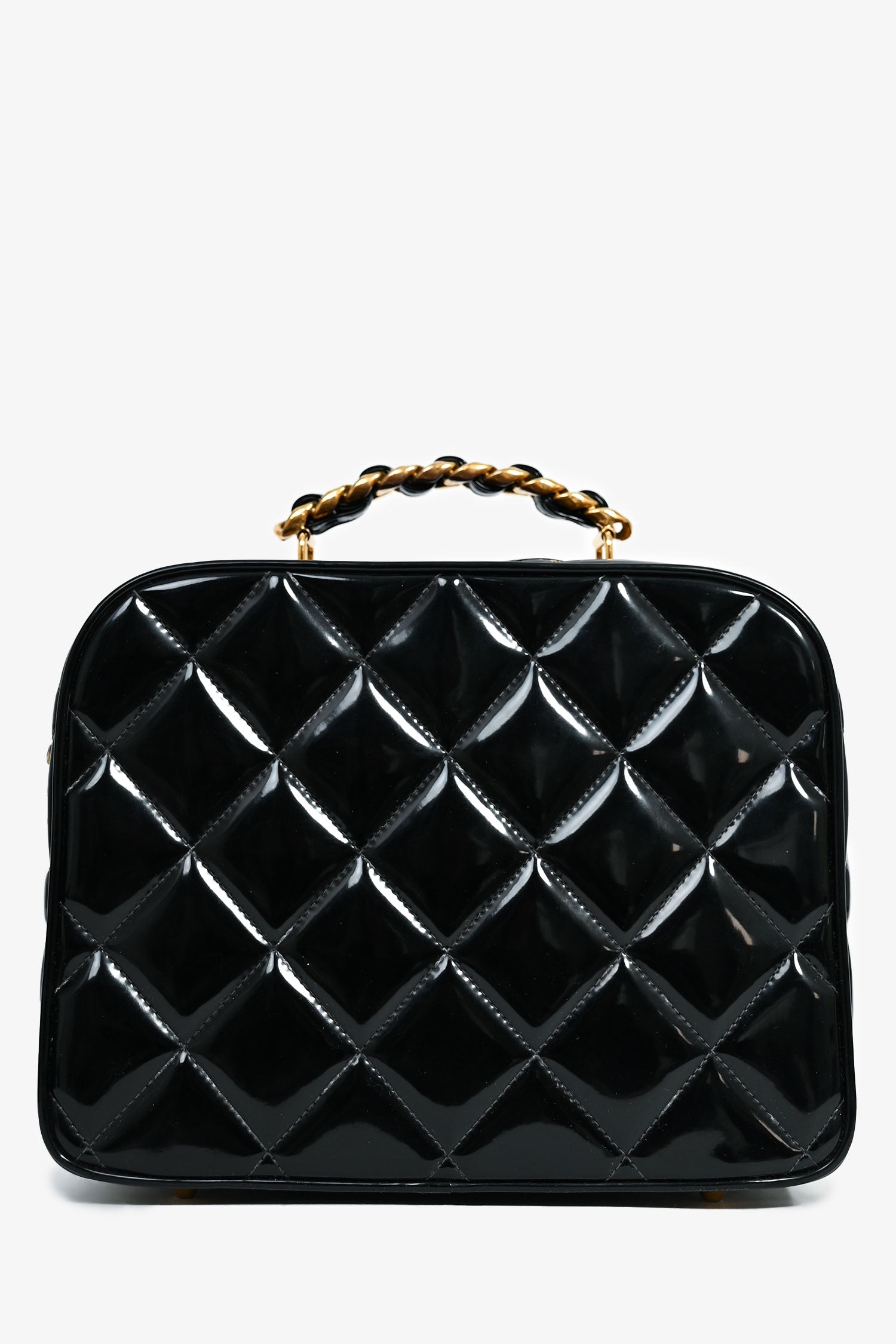 Refresh availabilityPre-Loved Chanel™ 1994-96 Black Patent Leather Large Vanity Case. Chain-link top handle and crossbody strap. Zipped interior compartment. Gold-tone hardware. Tonal stitching.