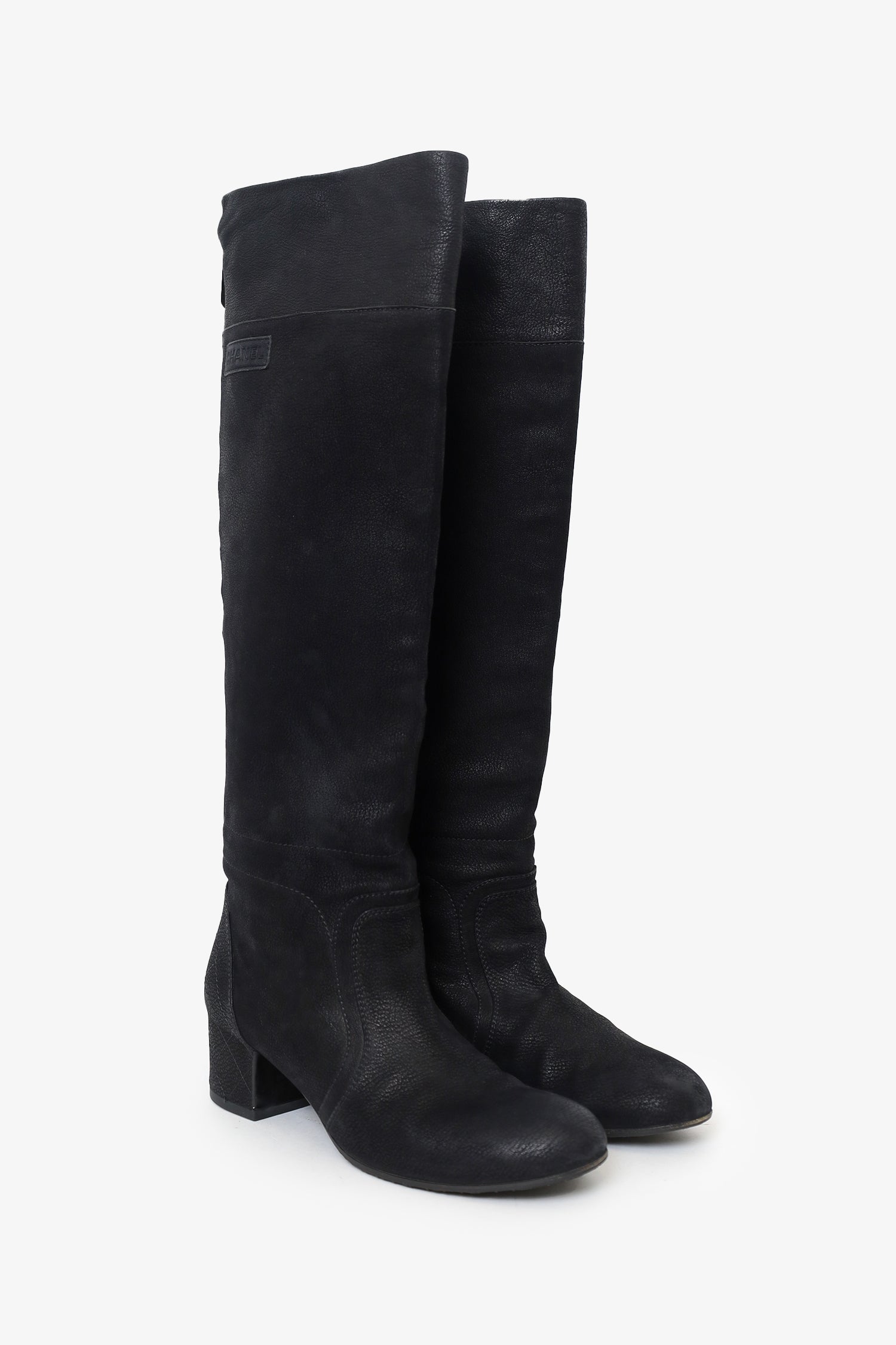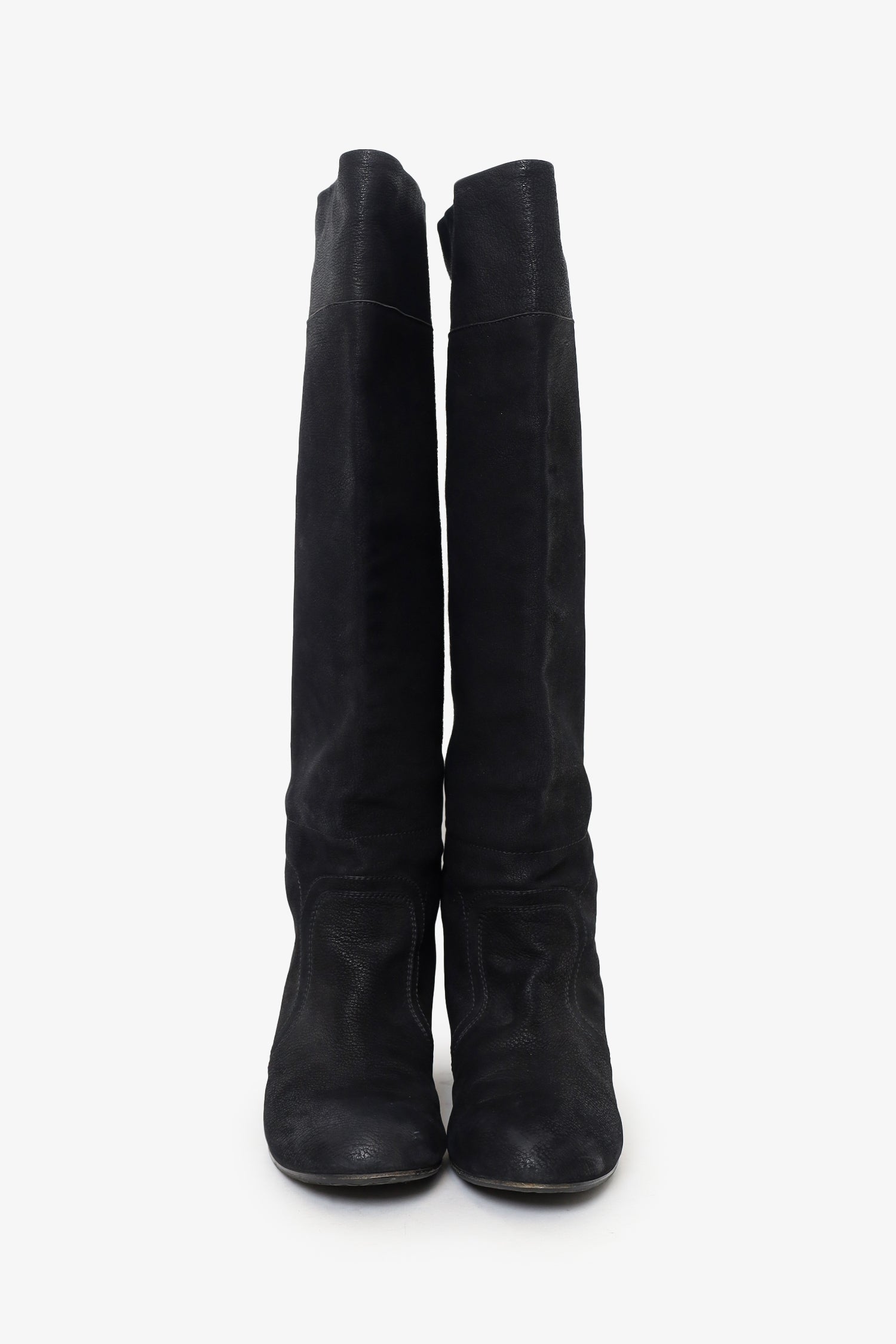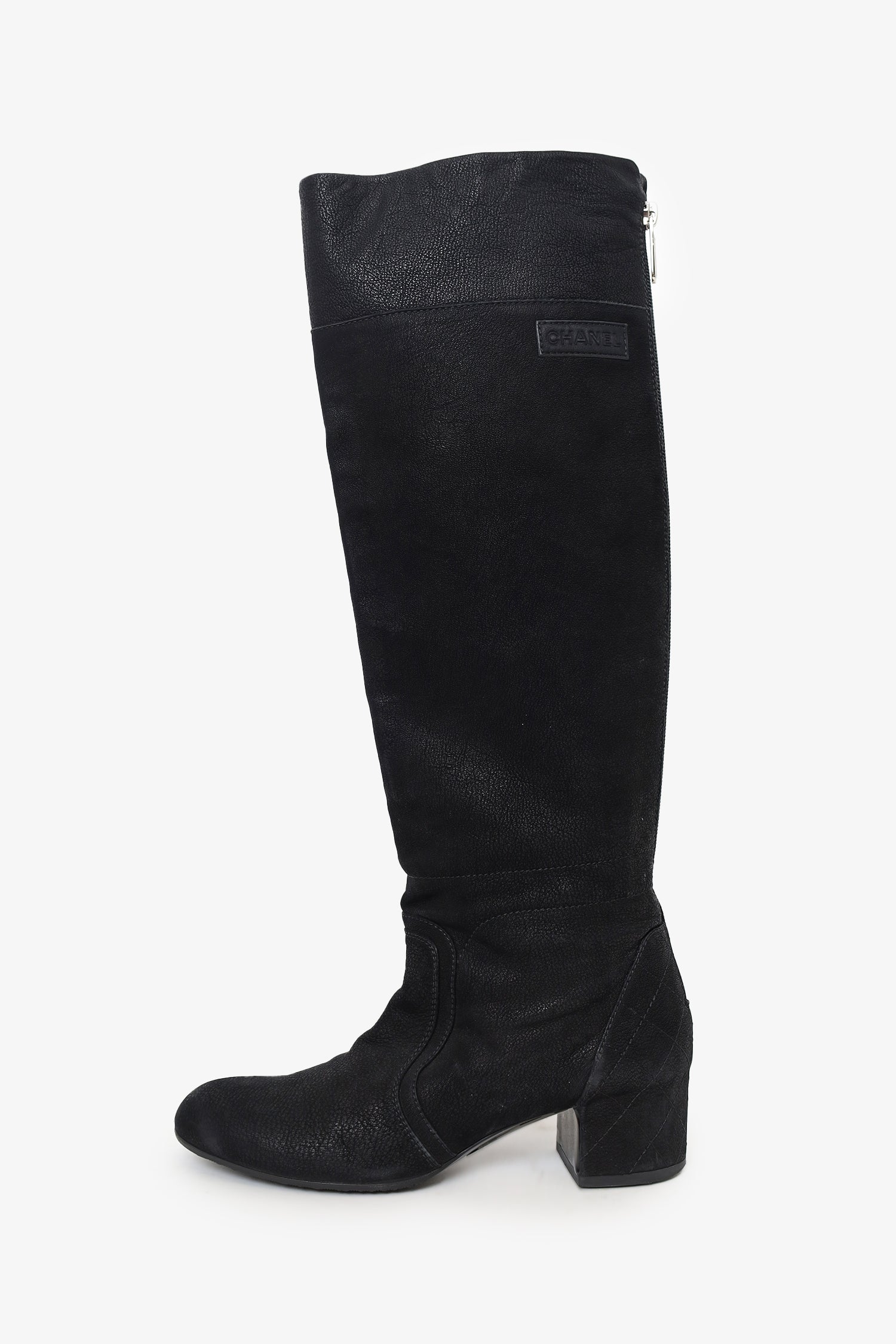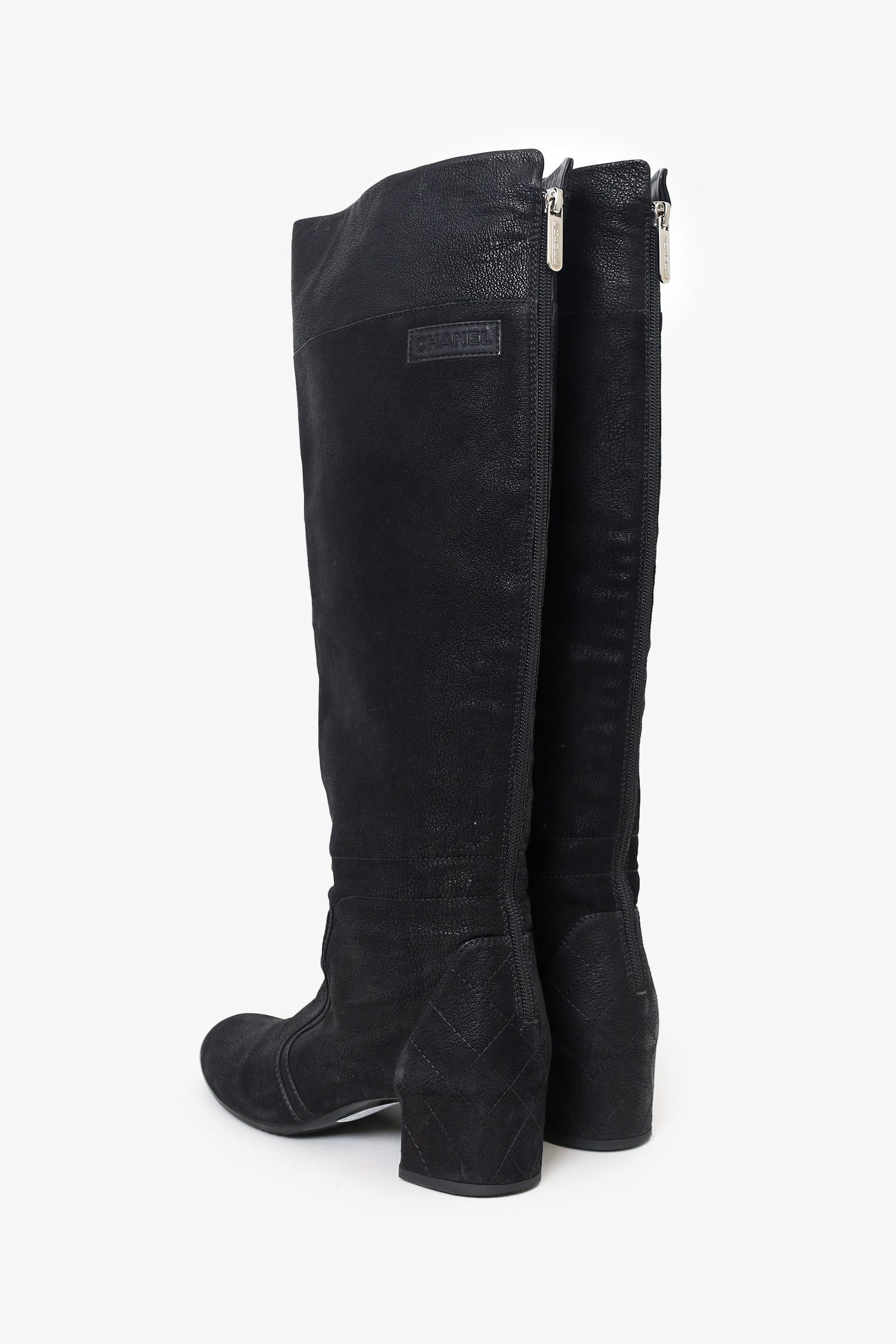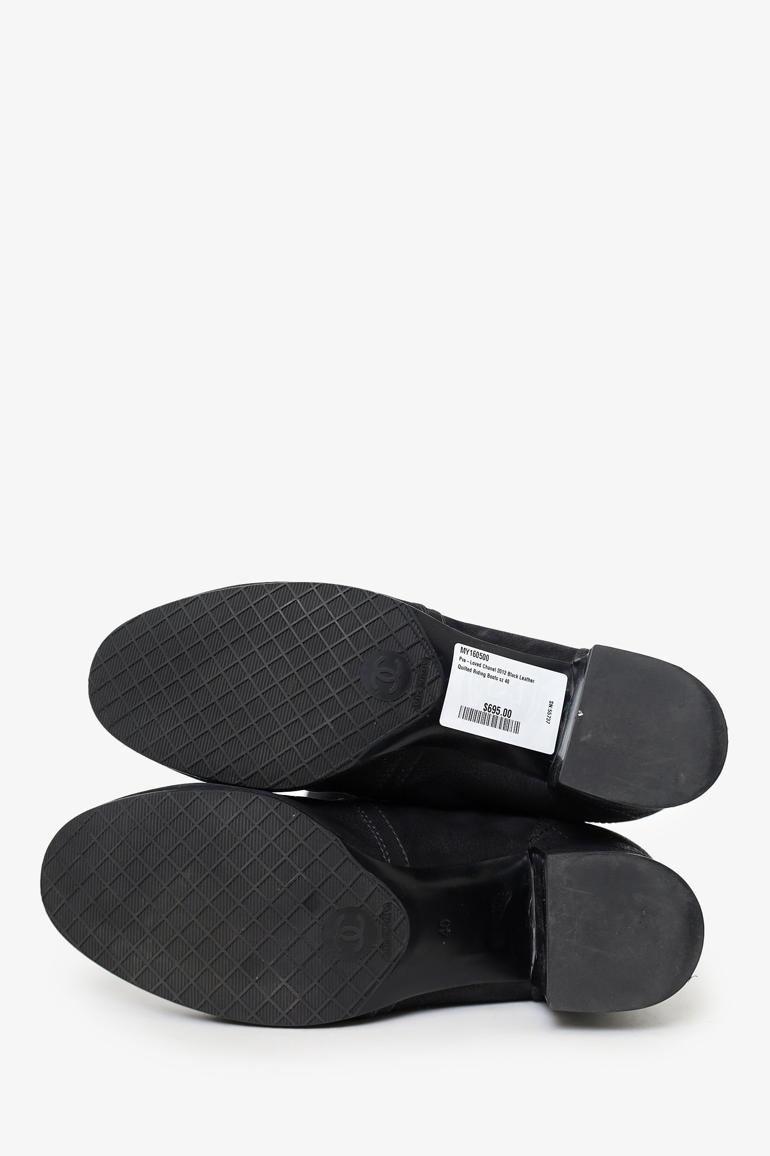 Pre-Loved Chanel™ 2012 Black Leather Quilted Riding Boots Size 40