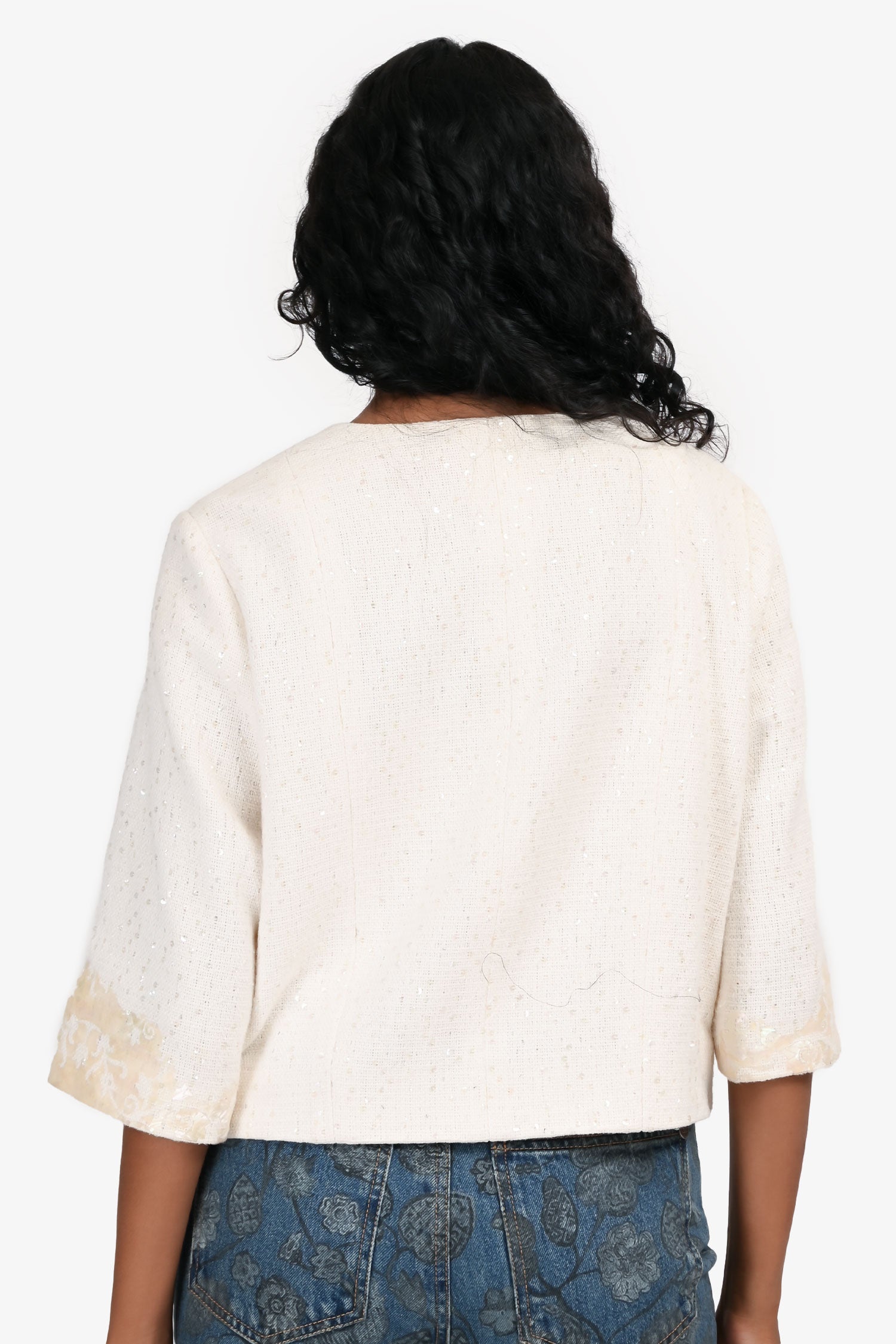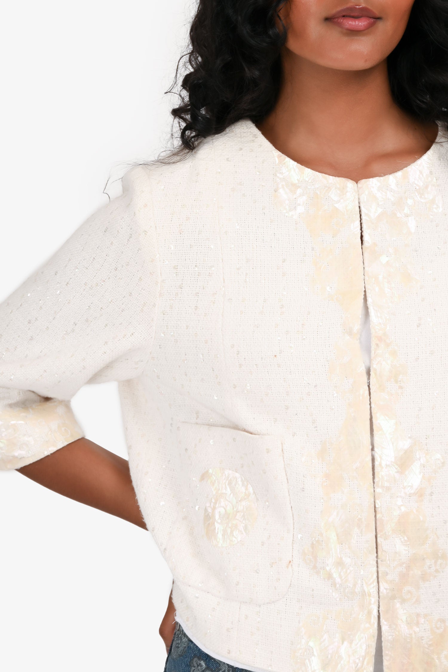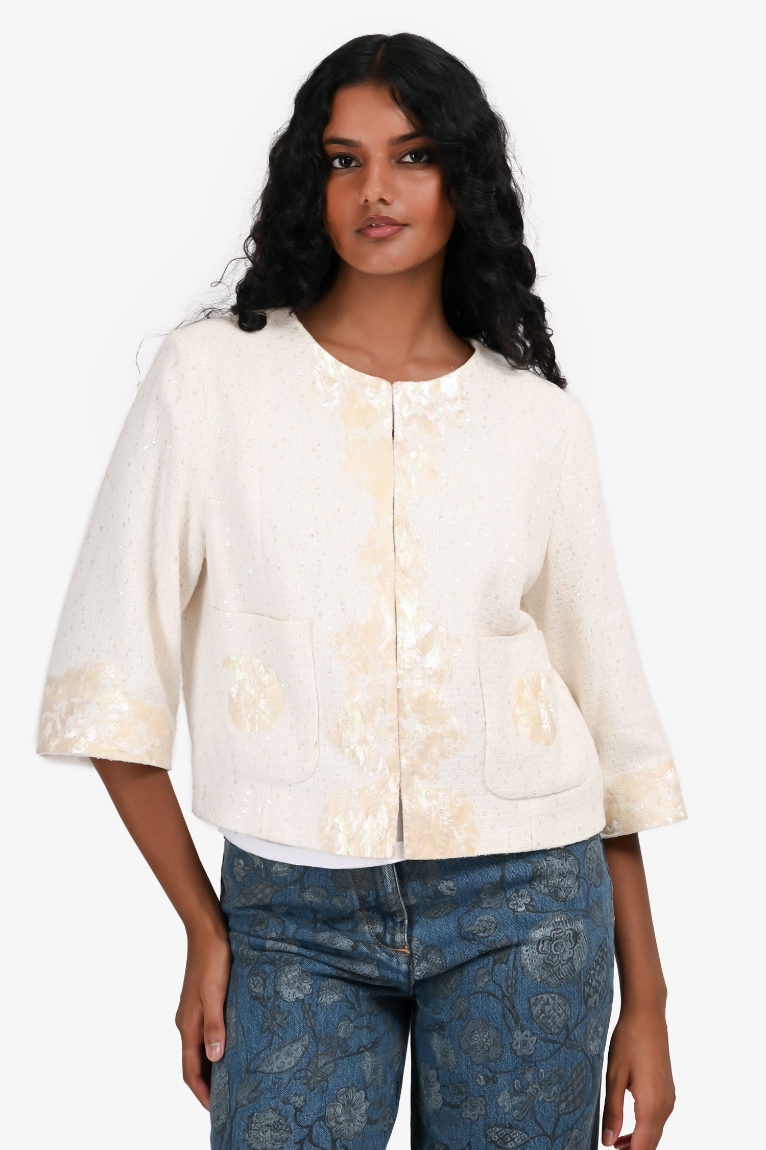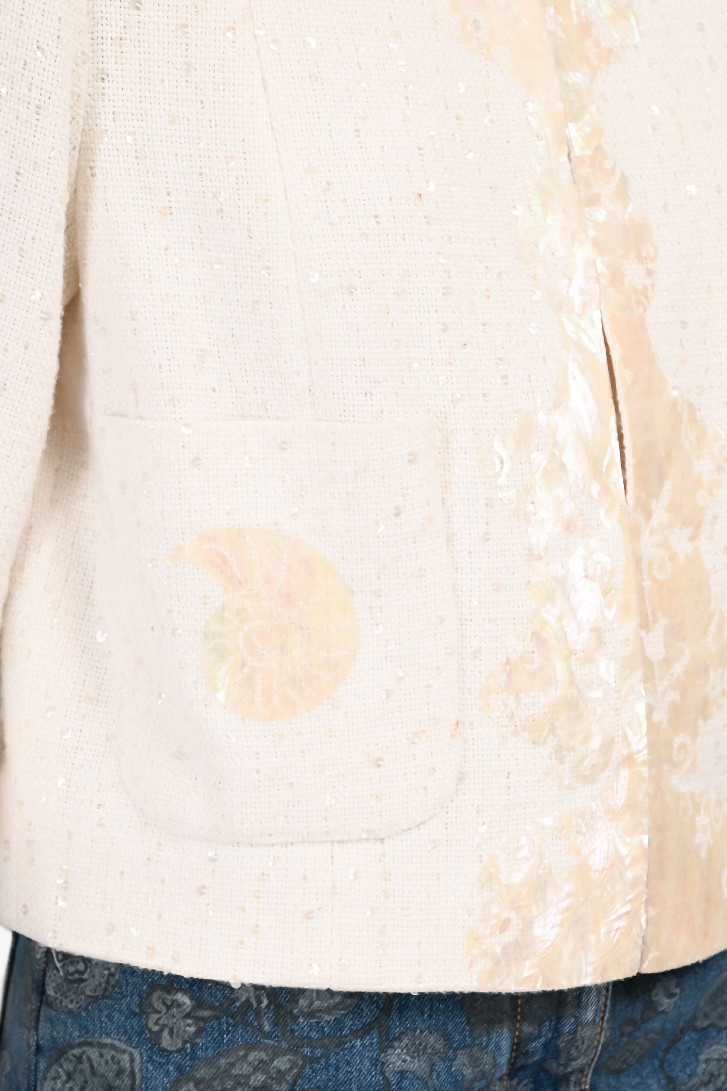Pre-Loved Chanel™ 2012 Cream Sequin Tweed Seashell Mosaic Jacket Size FR 40