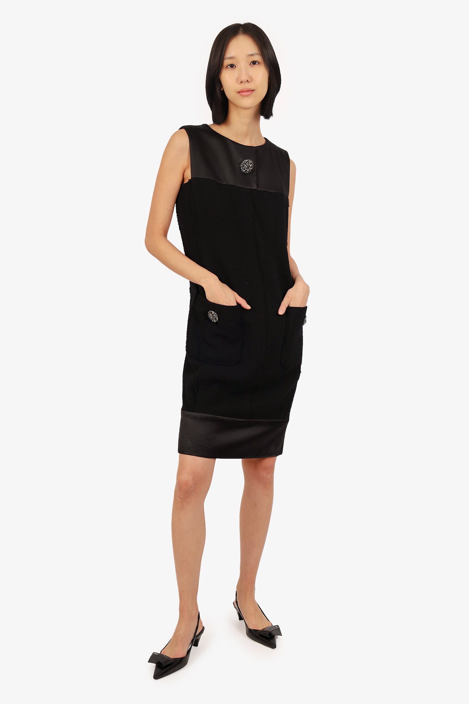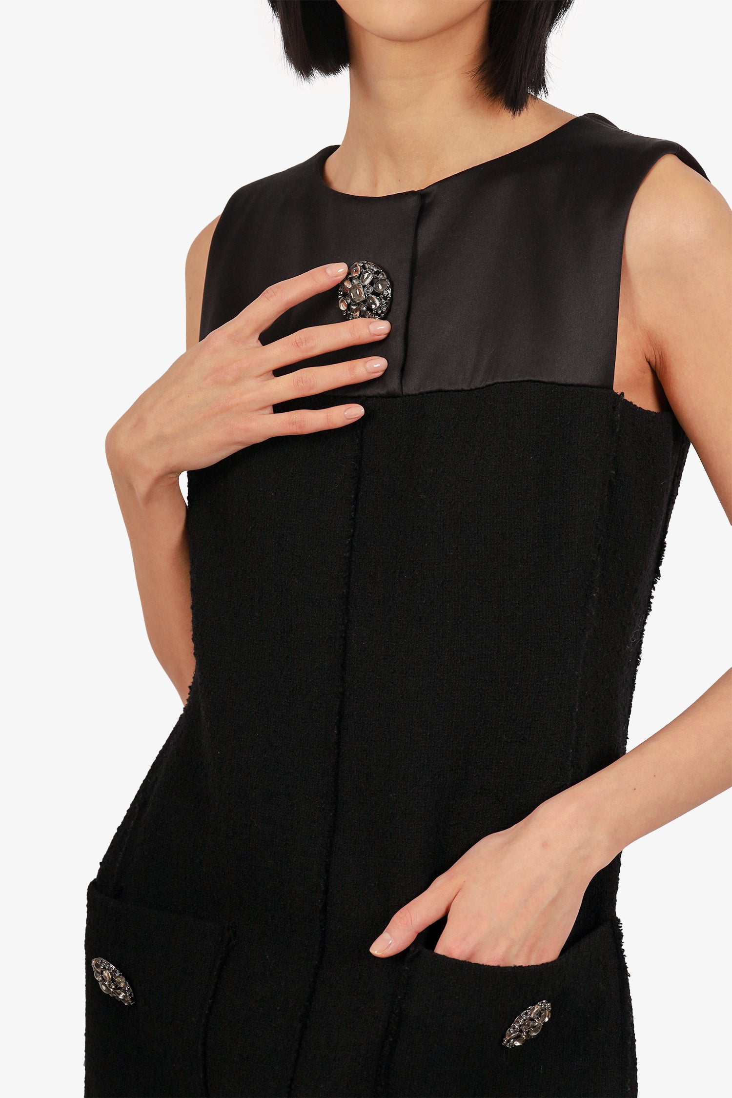 Pre-Loved Chanel™ 2015 Black Tweed Crystal Pin Sleeveless Dress Size 40