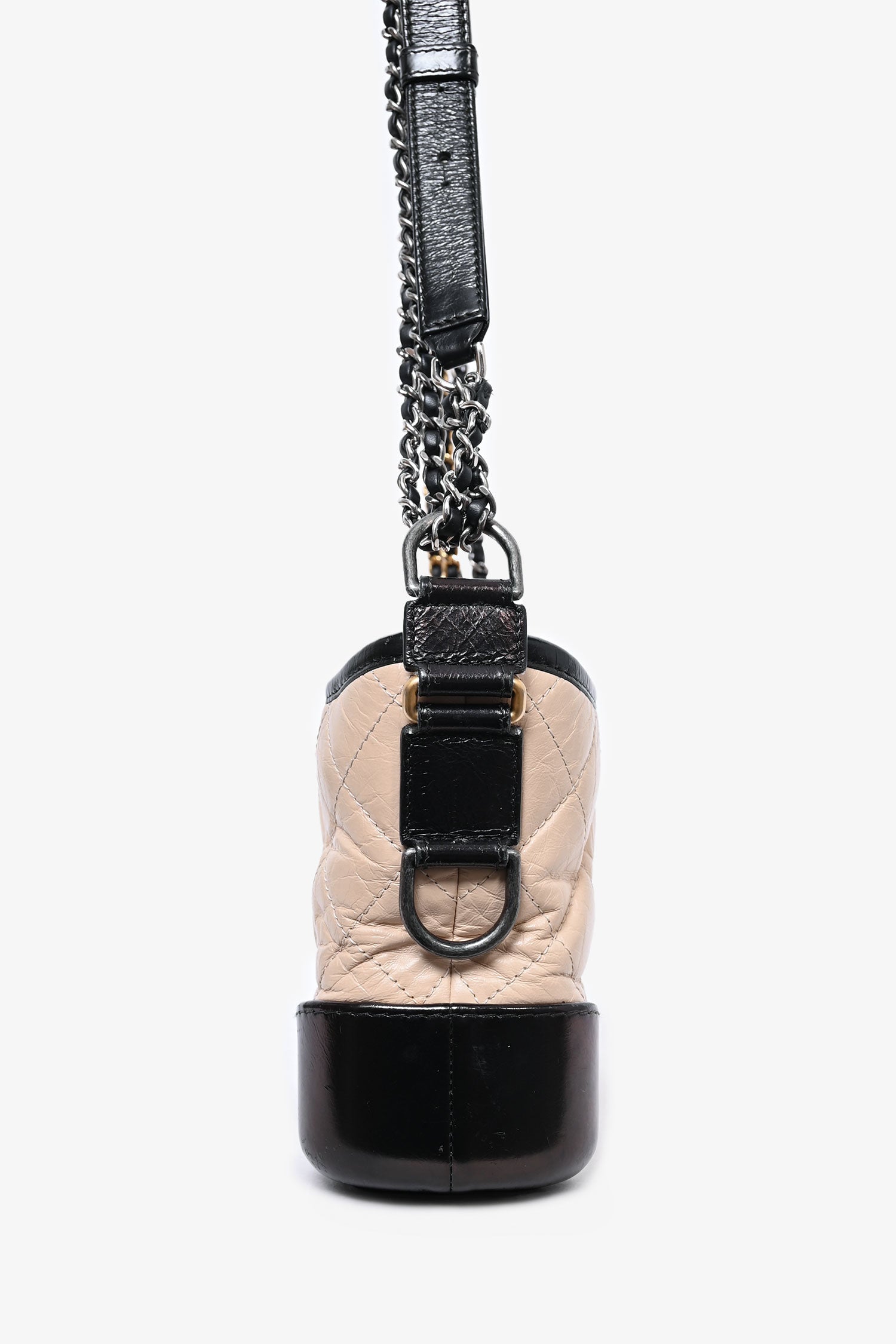 Pre-loved Chanel™ 2018 Beige/Black Quilted Small Gabrielle Shoulder Bag