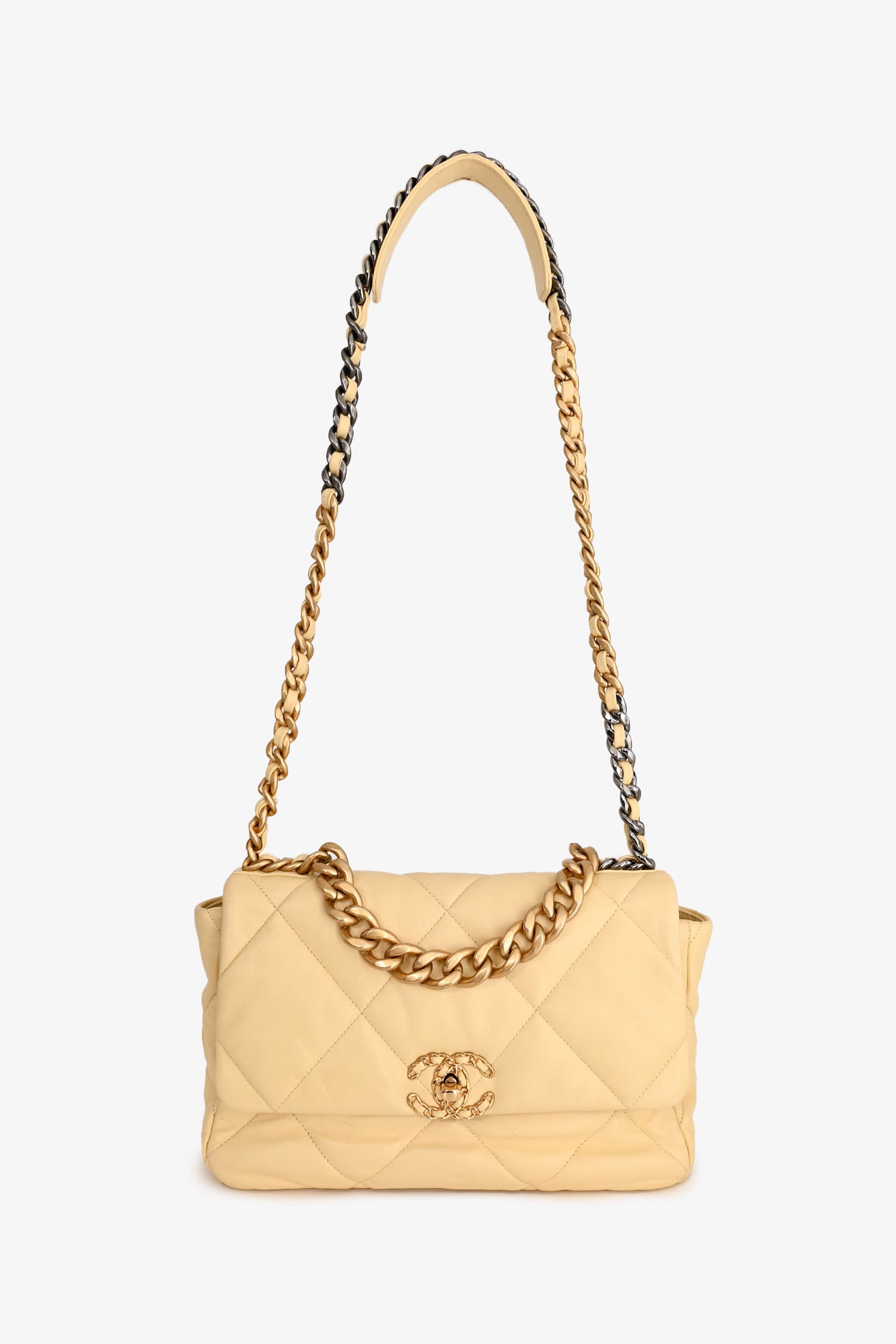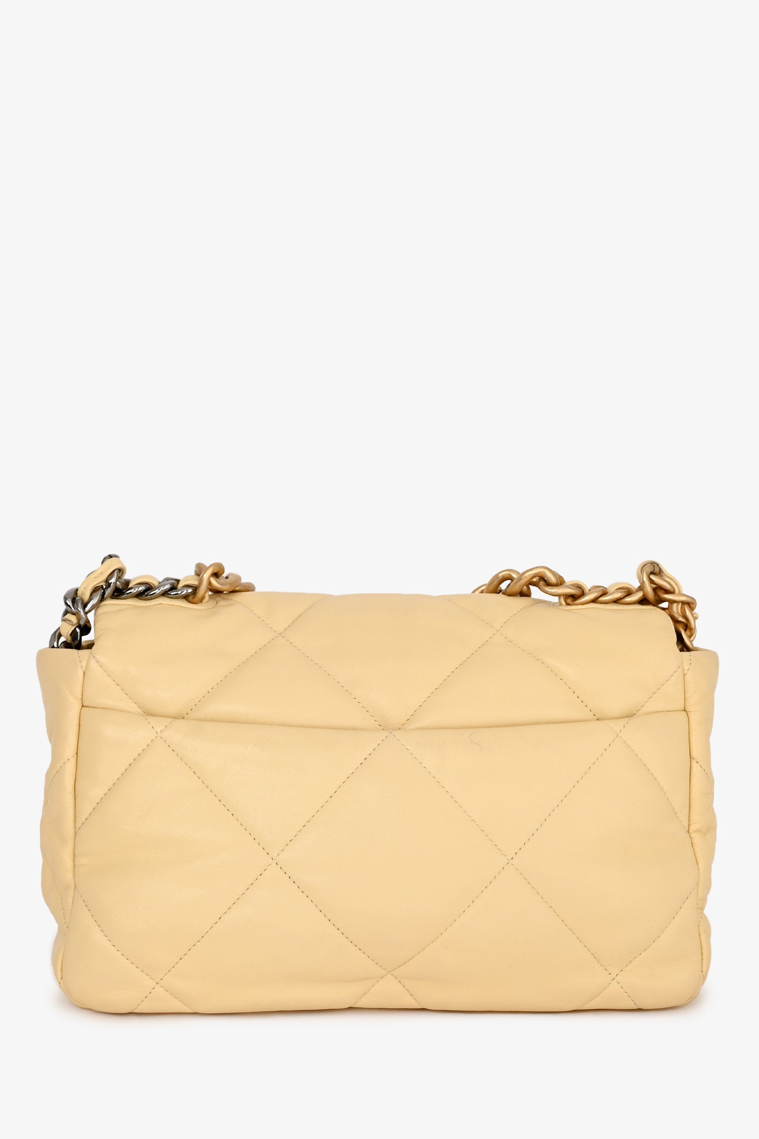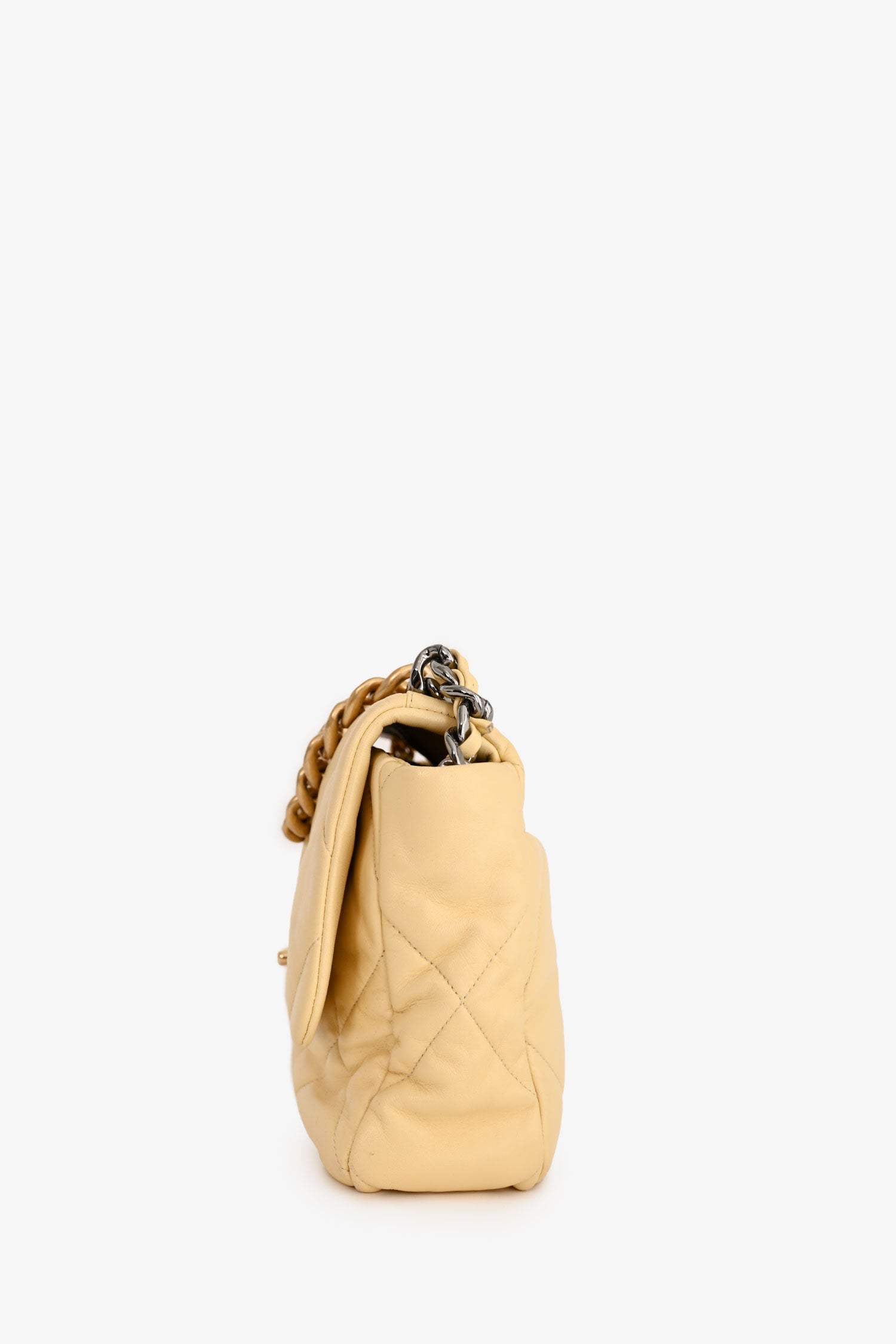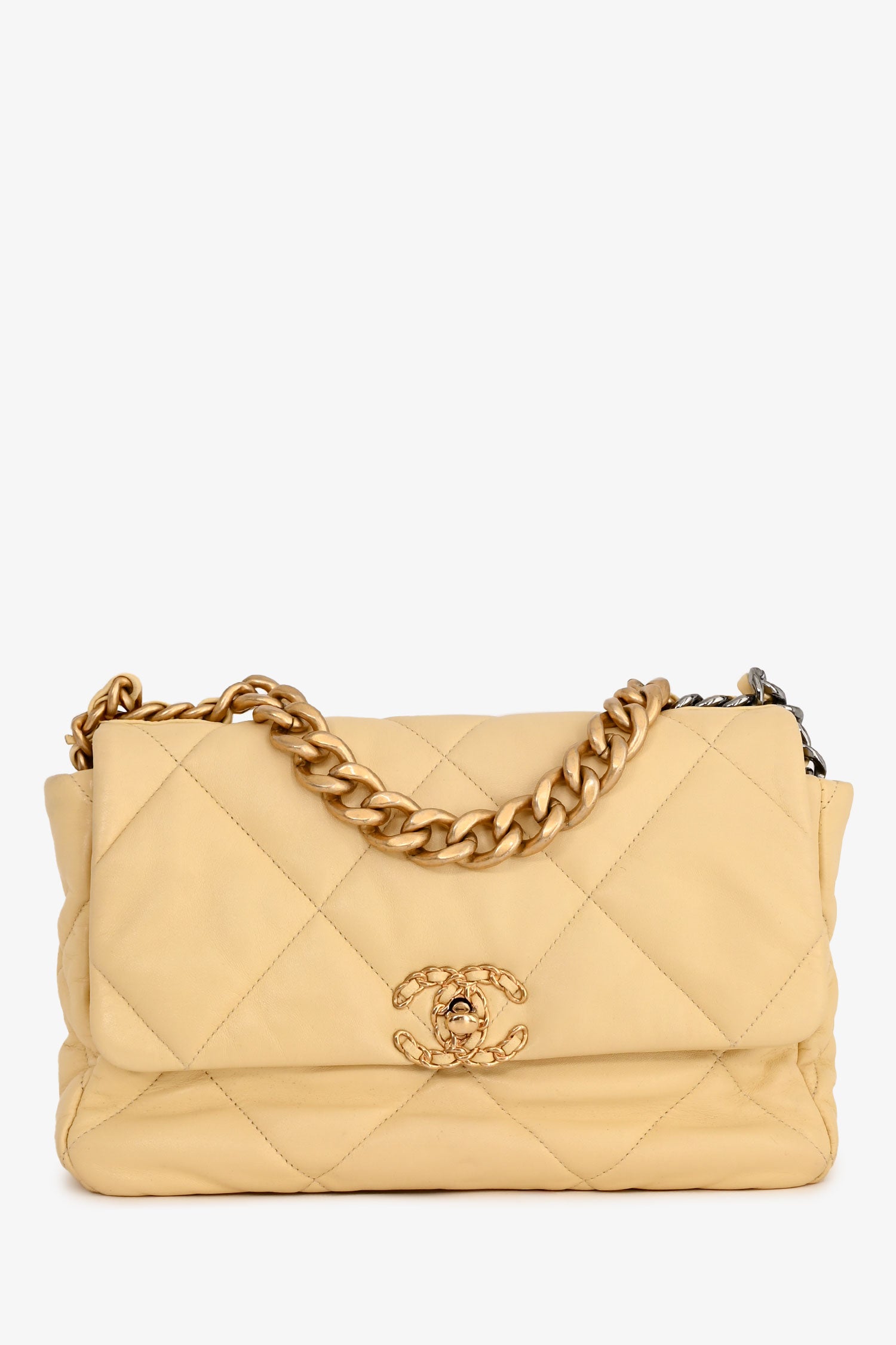 Refresh availabilityPre-Loved Chanel™ 2019/2020 Yellow Lambskin Leather Quilted CC Flap Bag. Front flap with signature CC turn-lock closure. Leather-threaded chain shoulder strap. Leather-lined interior with zipped pocket. Gold-tone hardware. Tonal stitching.