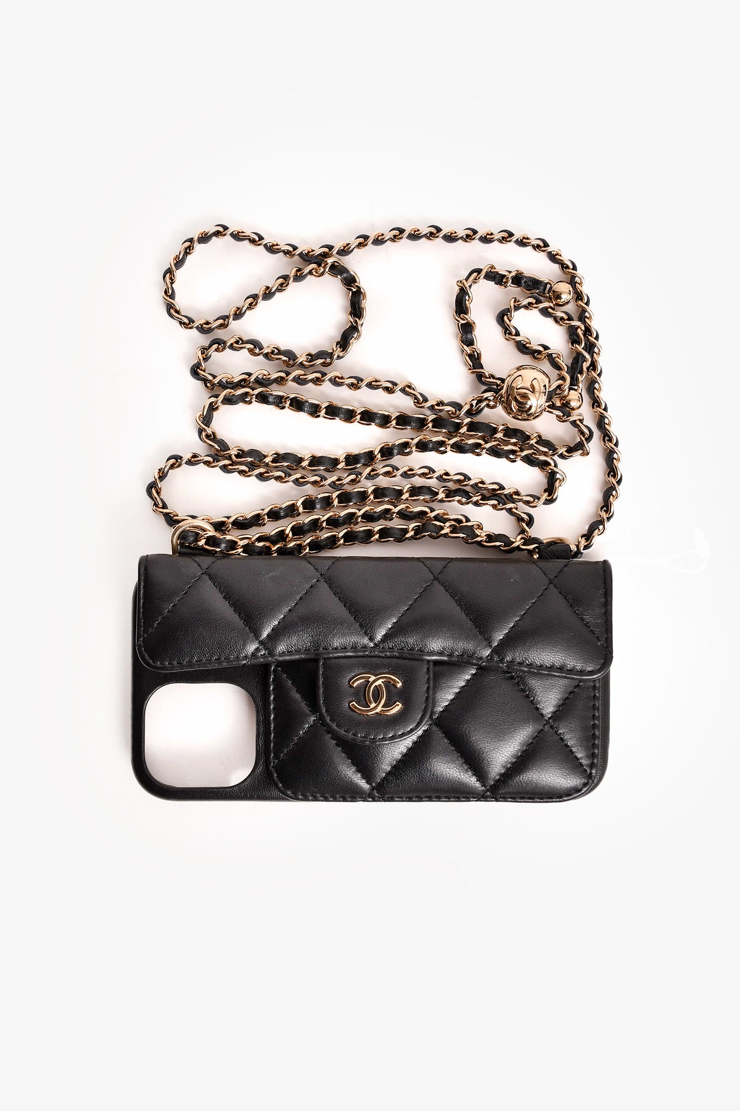 Refresh availabilityPre-Loved Chanel 2020 Black Lambskin iPhone Case on Chain with Card Pocket. Gold-tone hardware.