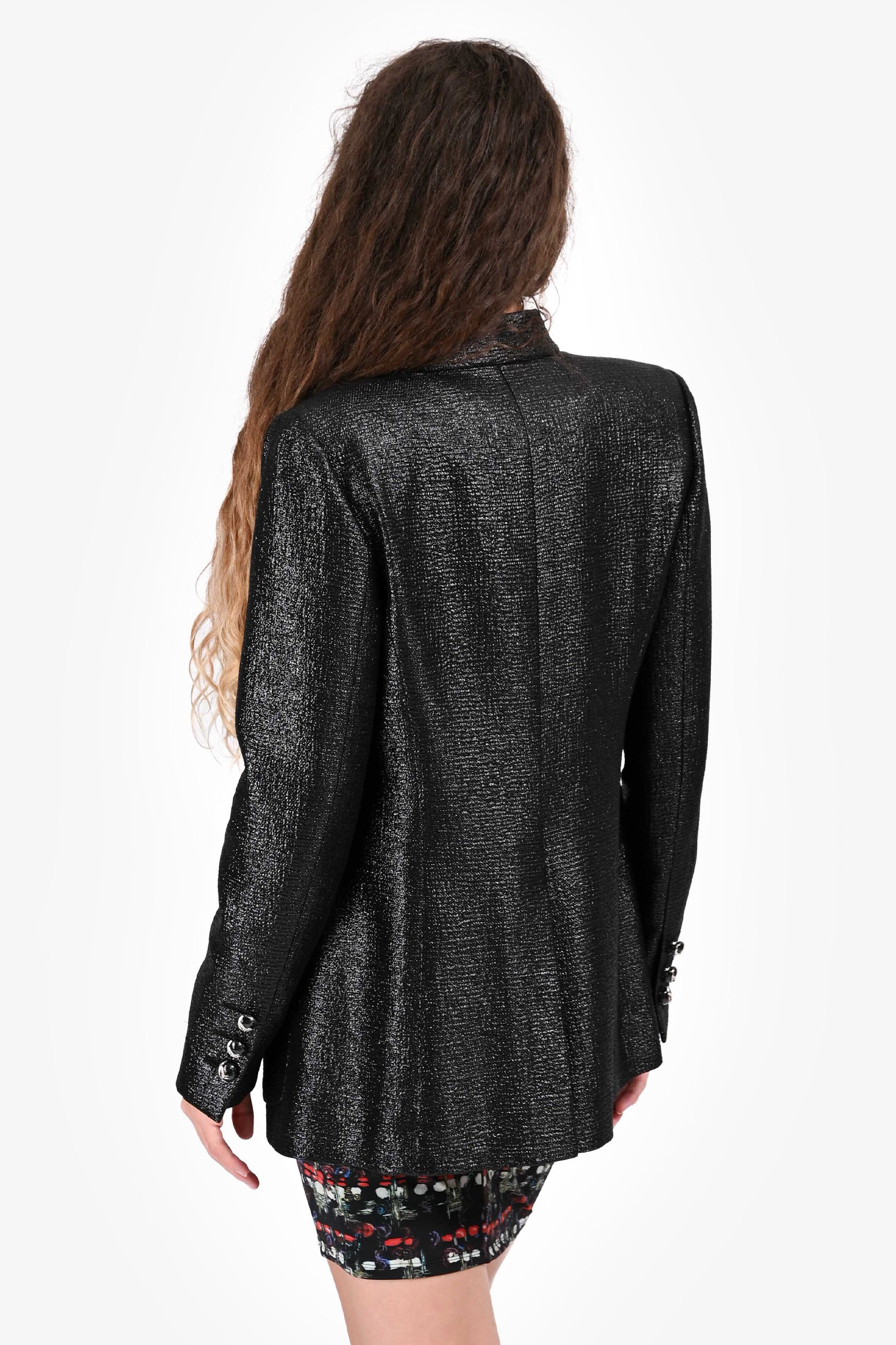Pre-Loved Chanel™ 2020 Black Metallic Wool Mandarin Collar Blazer Size 38