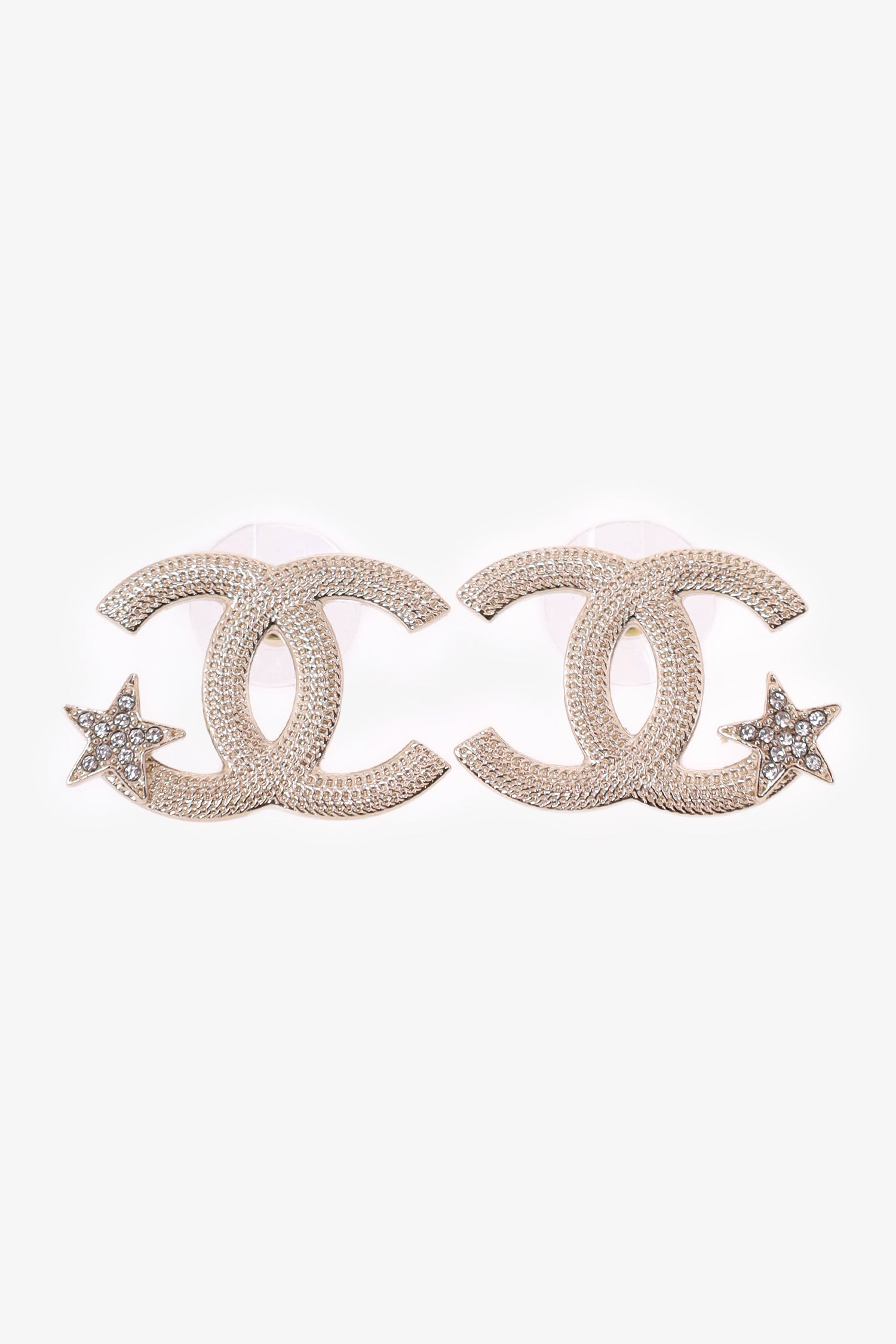 Refresh availabilityPre-Loved Chanel™ 2023 Champagne CC Logo Star Crystal Earrings. Clear push backings.