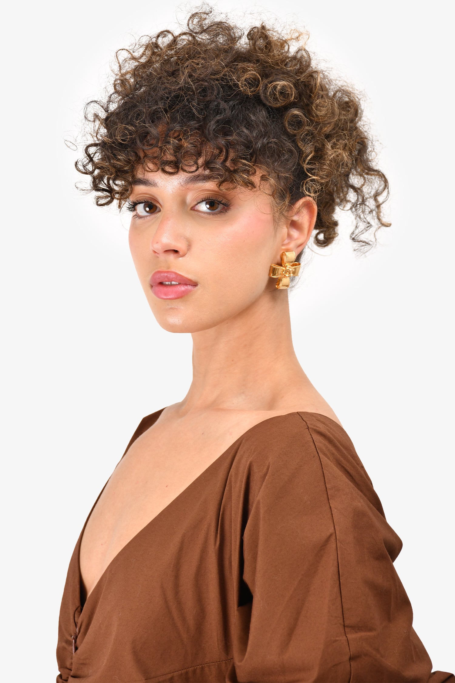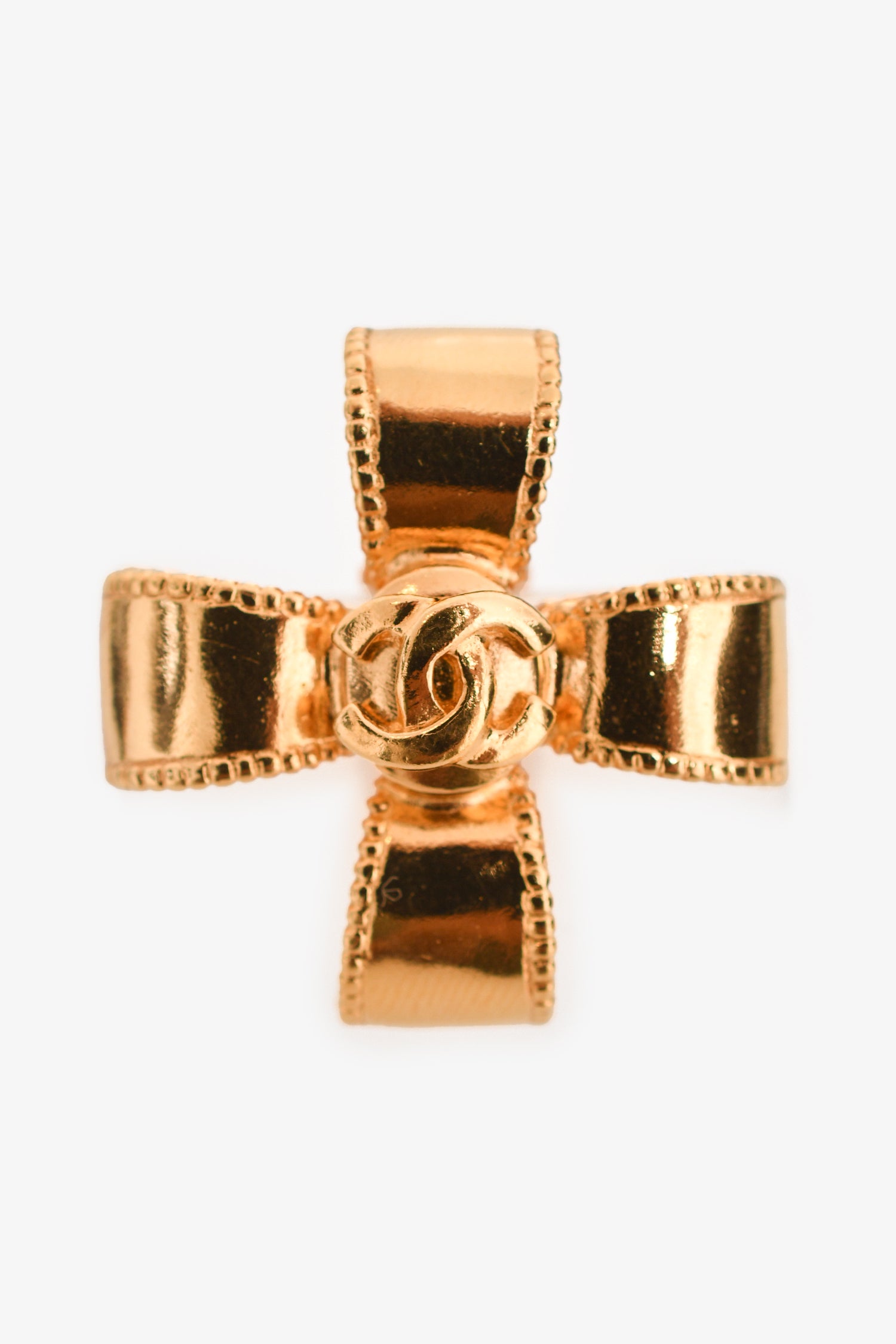 Refresh availabilityPre-Loved Chanel™ 97A Gold Tone Coco Mark Cross Ribbon Clip-on Earrings.