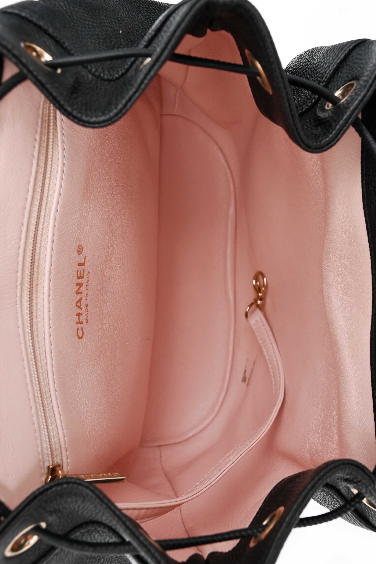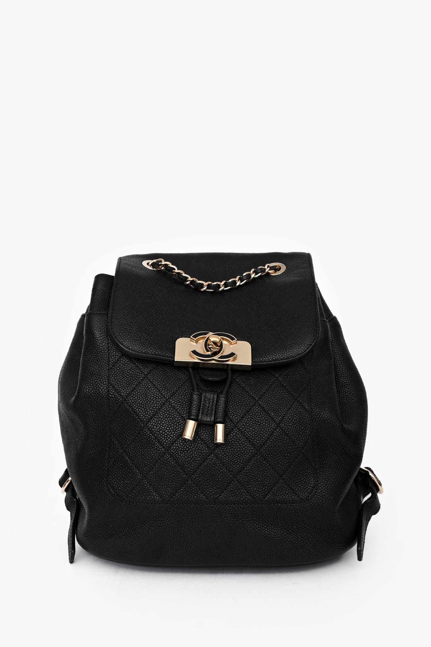 Refresh availabilityPre-Loved Chanel™ Black Caviar Quilted Small Backpack. Fold-over flap with a turn-lock closure. Gold-tone hardware. Leather pull tabs. Exterior slip compartment. Leather lined interior with an interior zipped compartment. Exterior slip pocket. 2 shoulder straps. Tonal stitching.