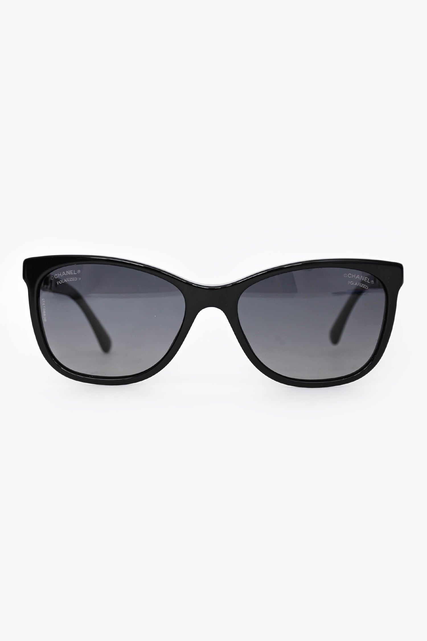 Pre-Loved Chanel™ Black Frame Wayfarer Leather Chain CC Polarized Sunglasses