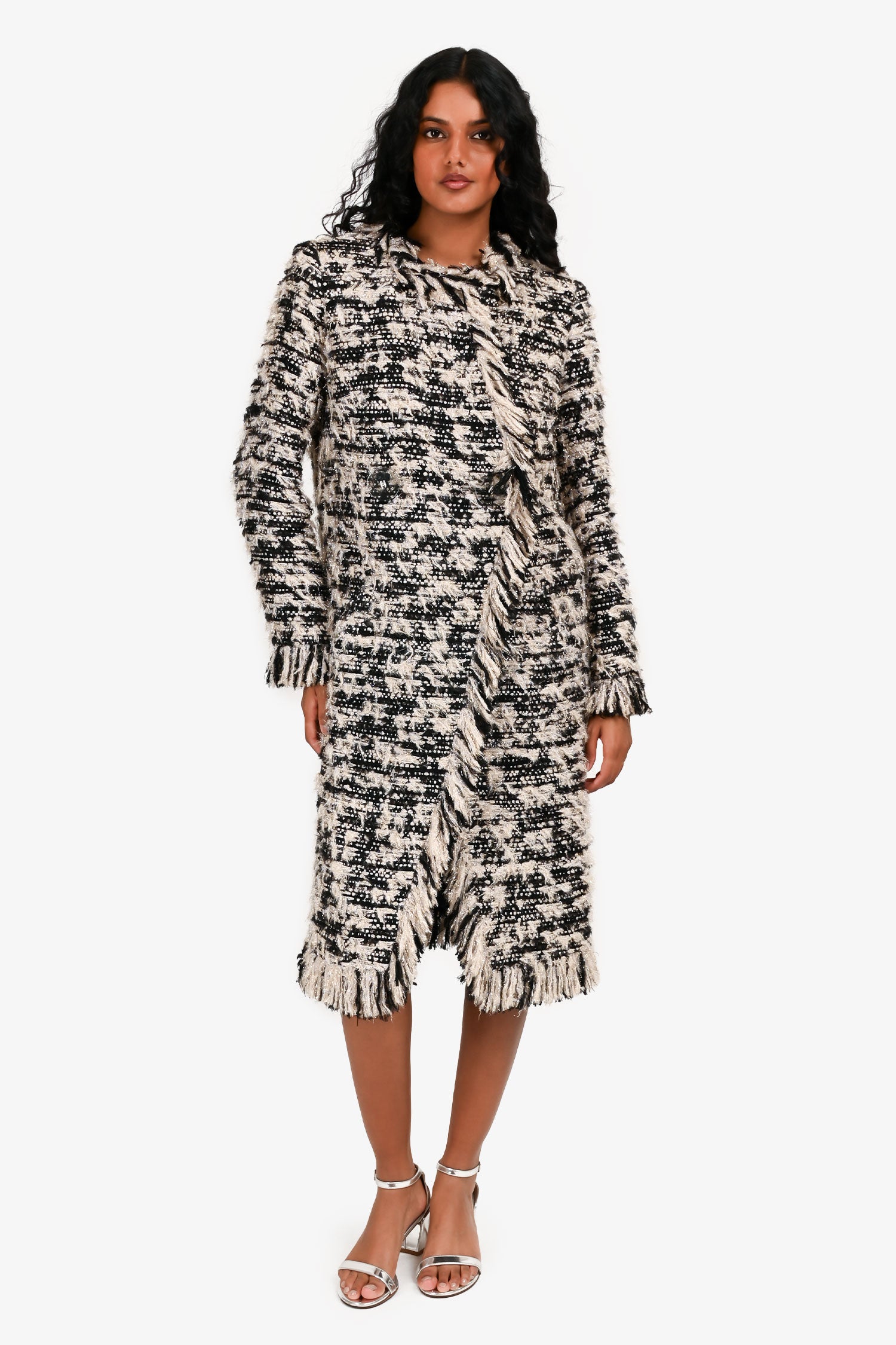 Pre-Loved Chanel™ Black/Gold Metallic Tweed Fringed Midi Coat Size 40