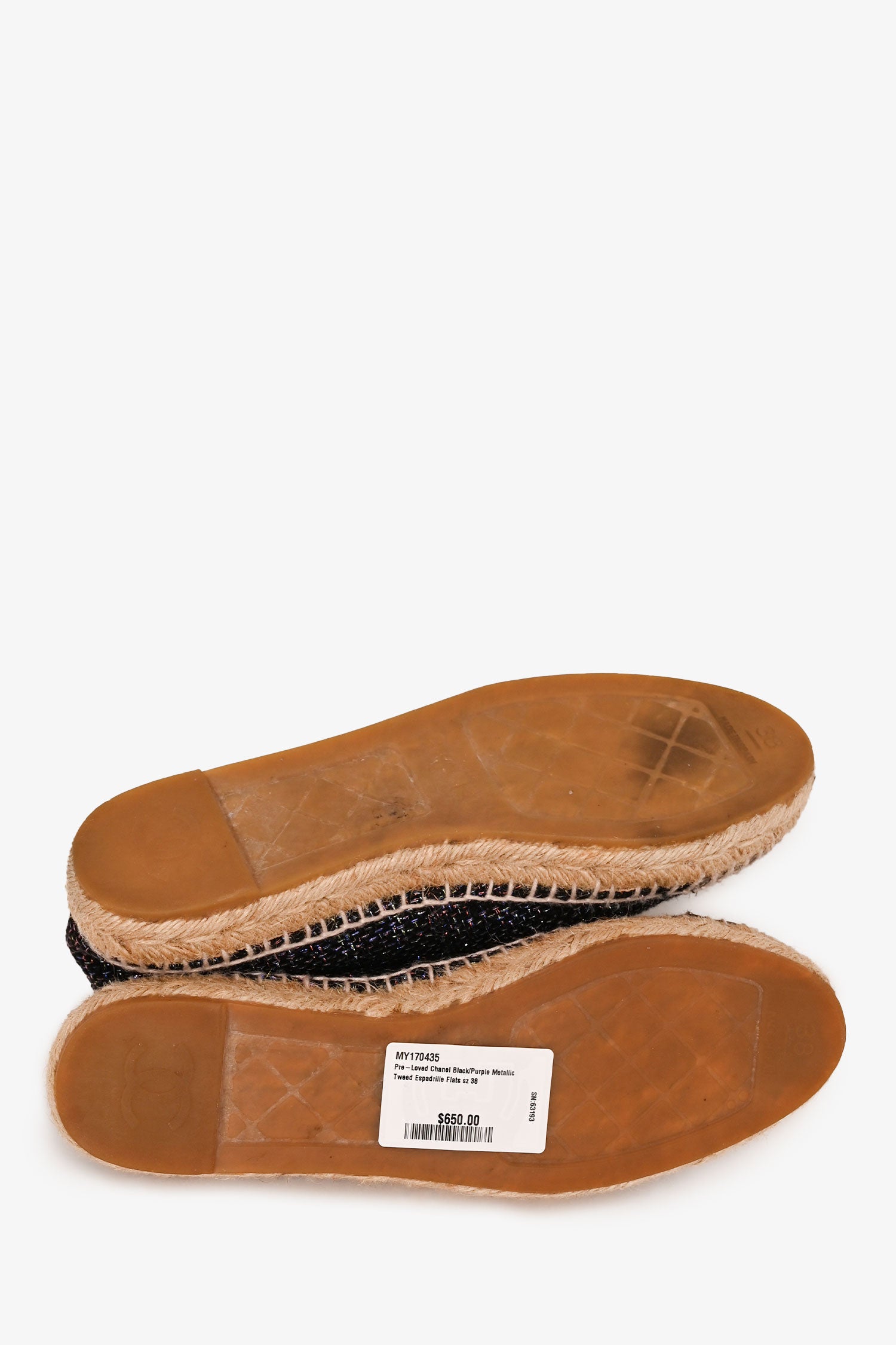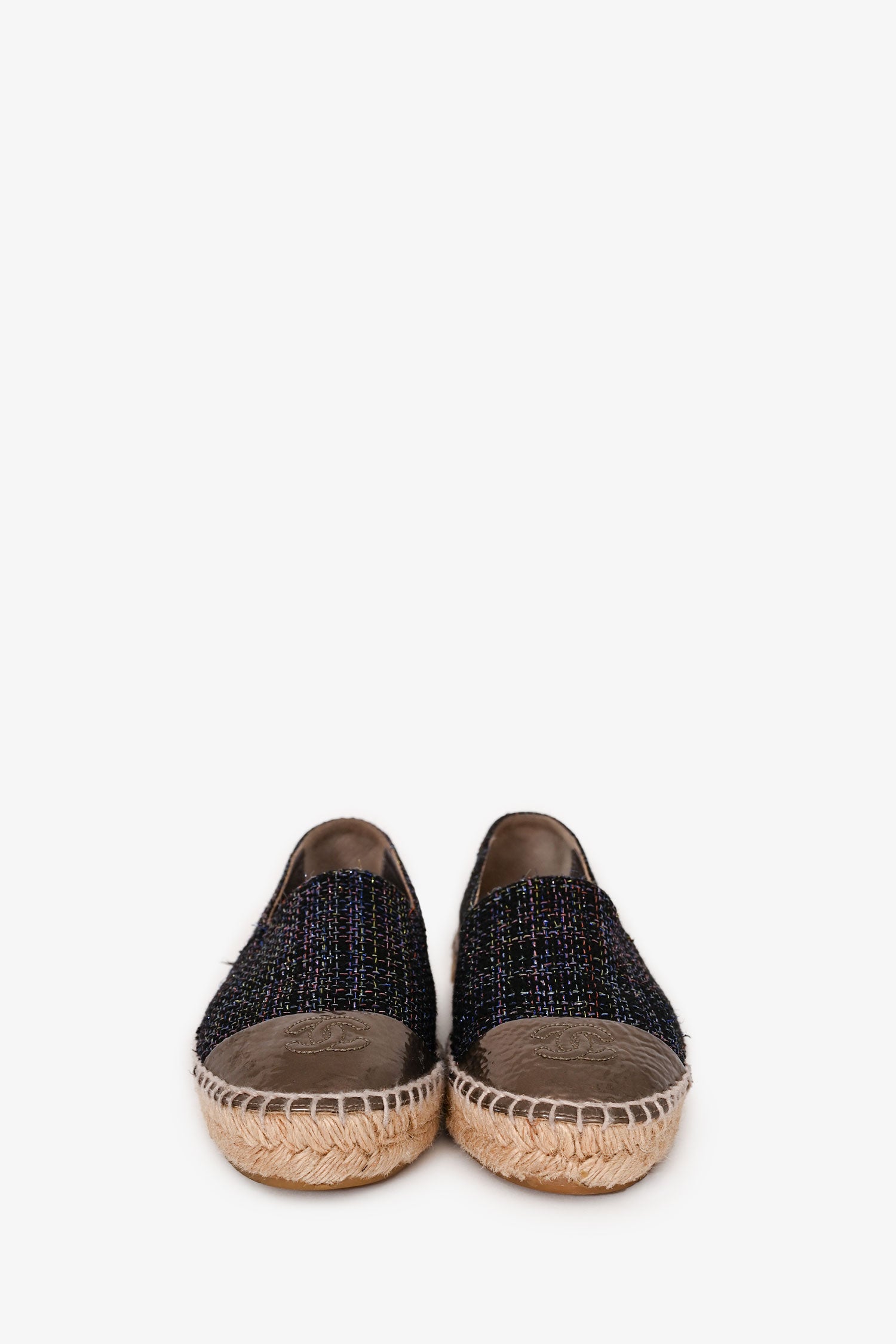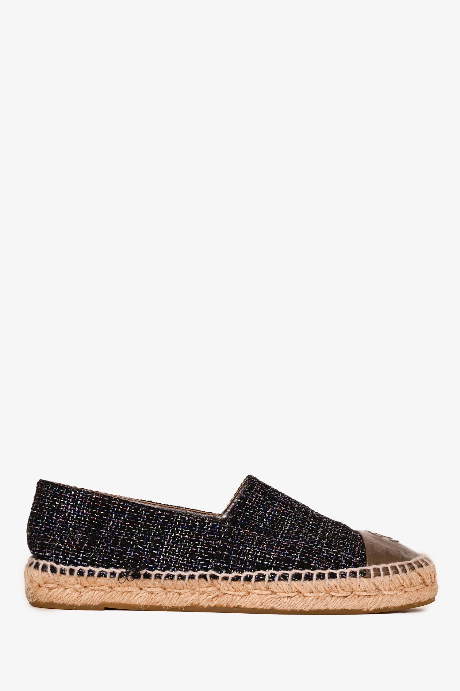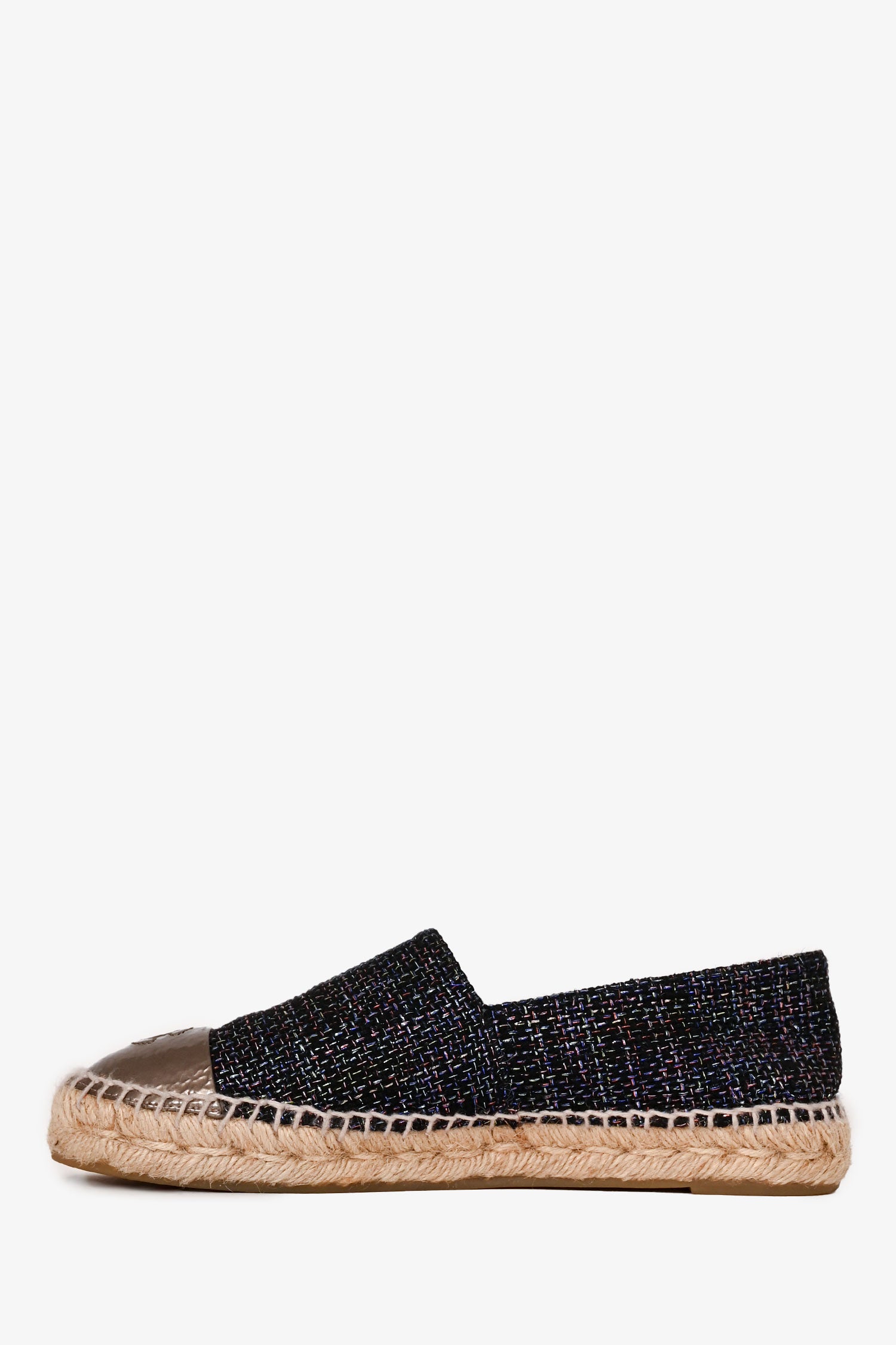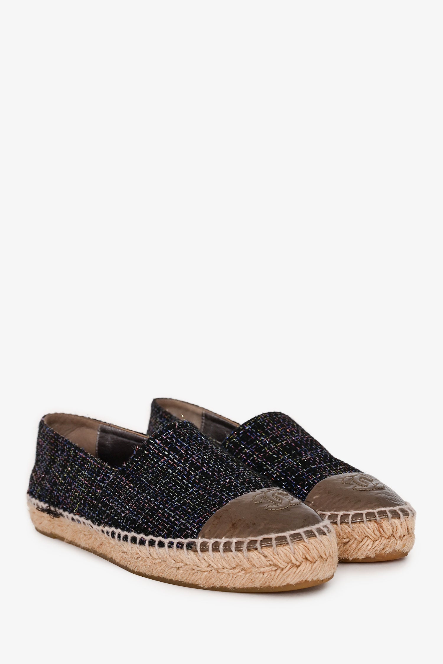 Refresh availabilityPre-Loved Chanel™ Black/Purple Metallic Tweed Espadrille Flats. Round toe. Slip-on.