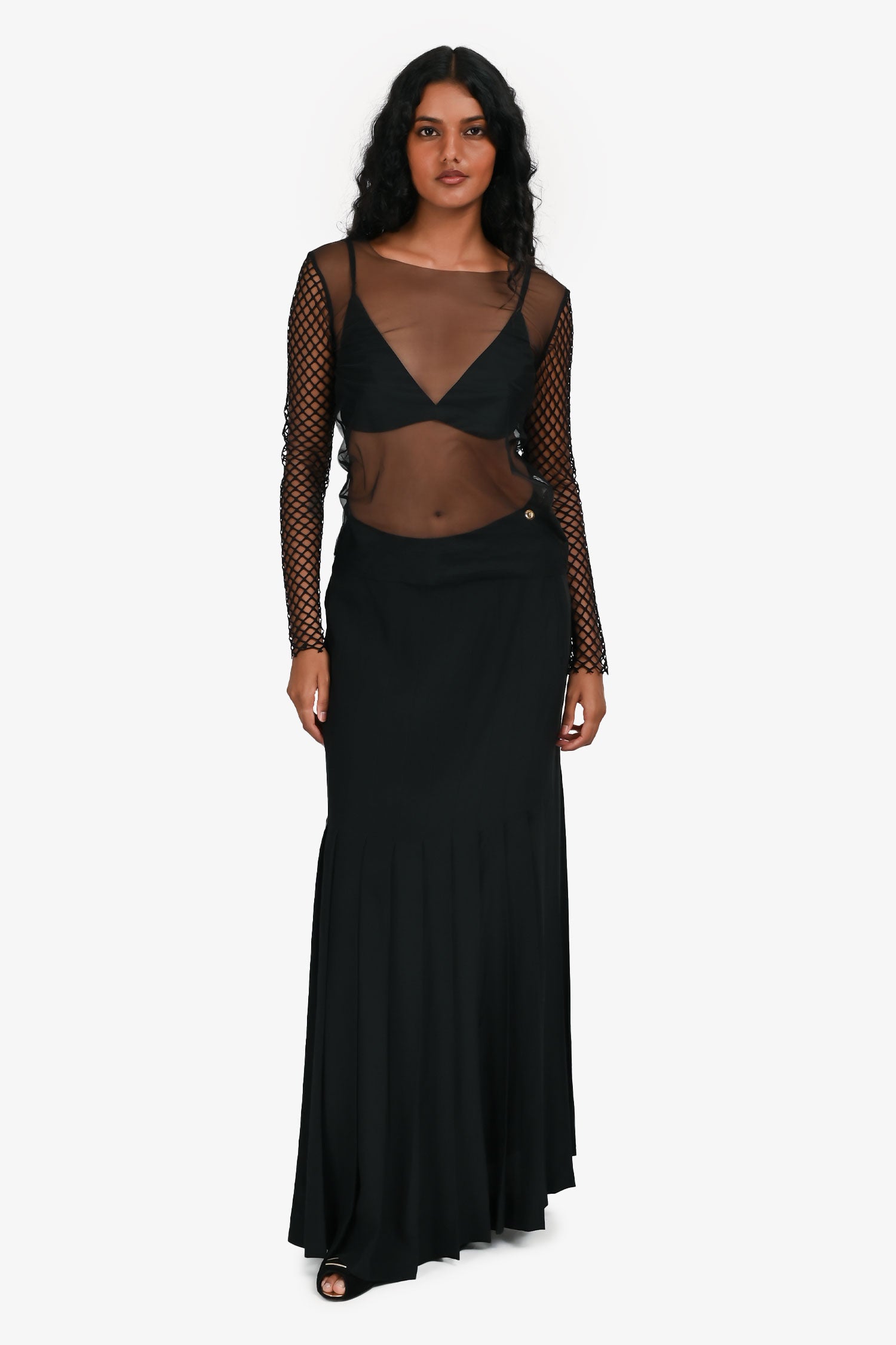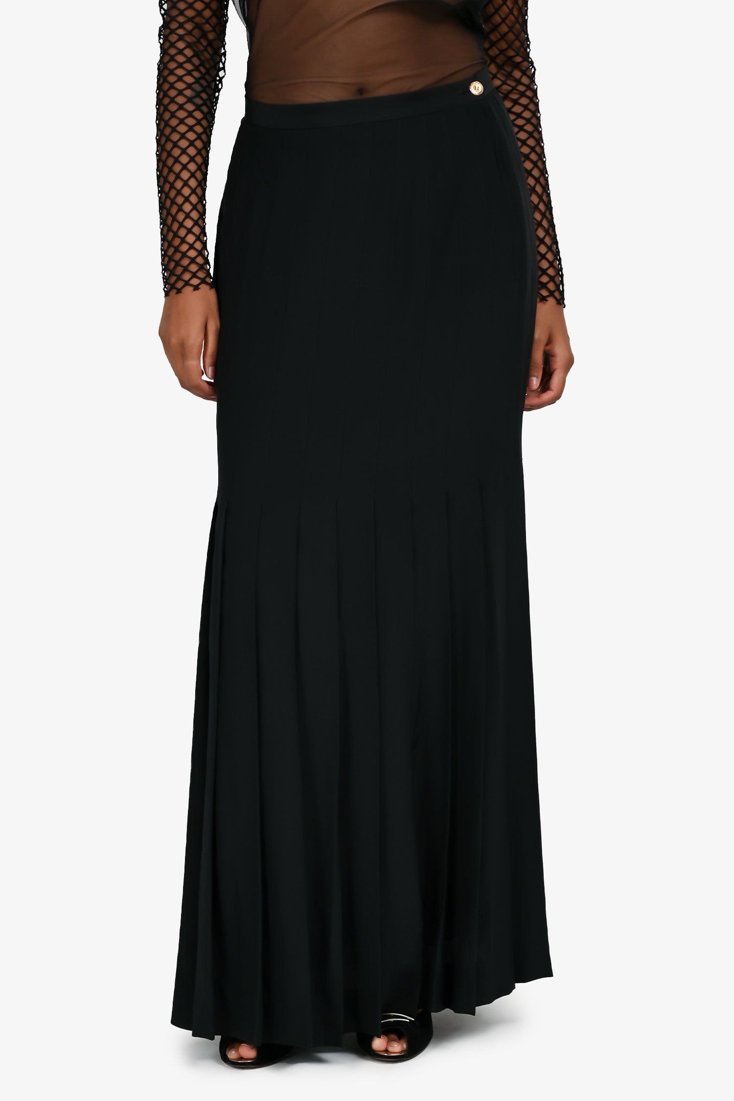 Pre-Loved Chanel™ Black Silk Pleated Maxi Skirt Size 42