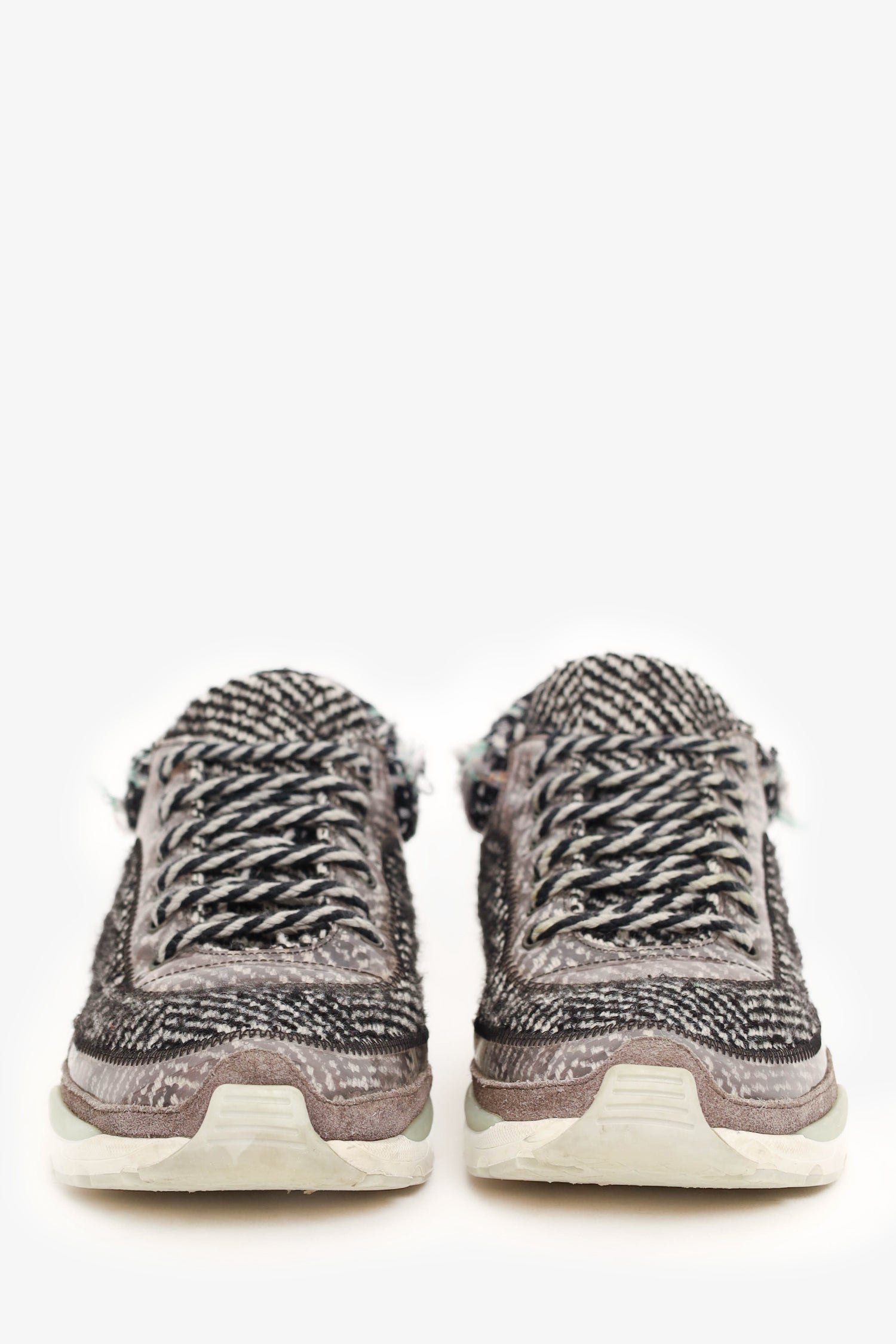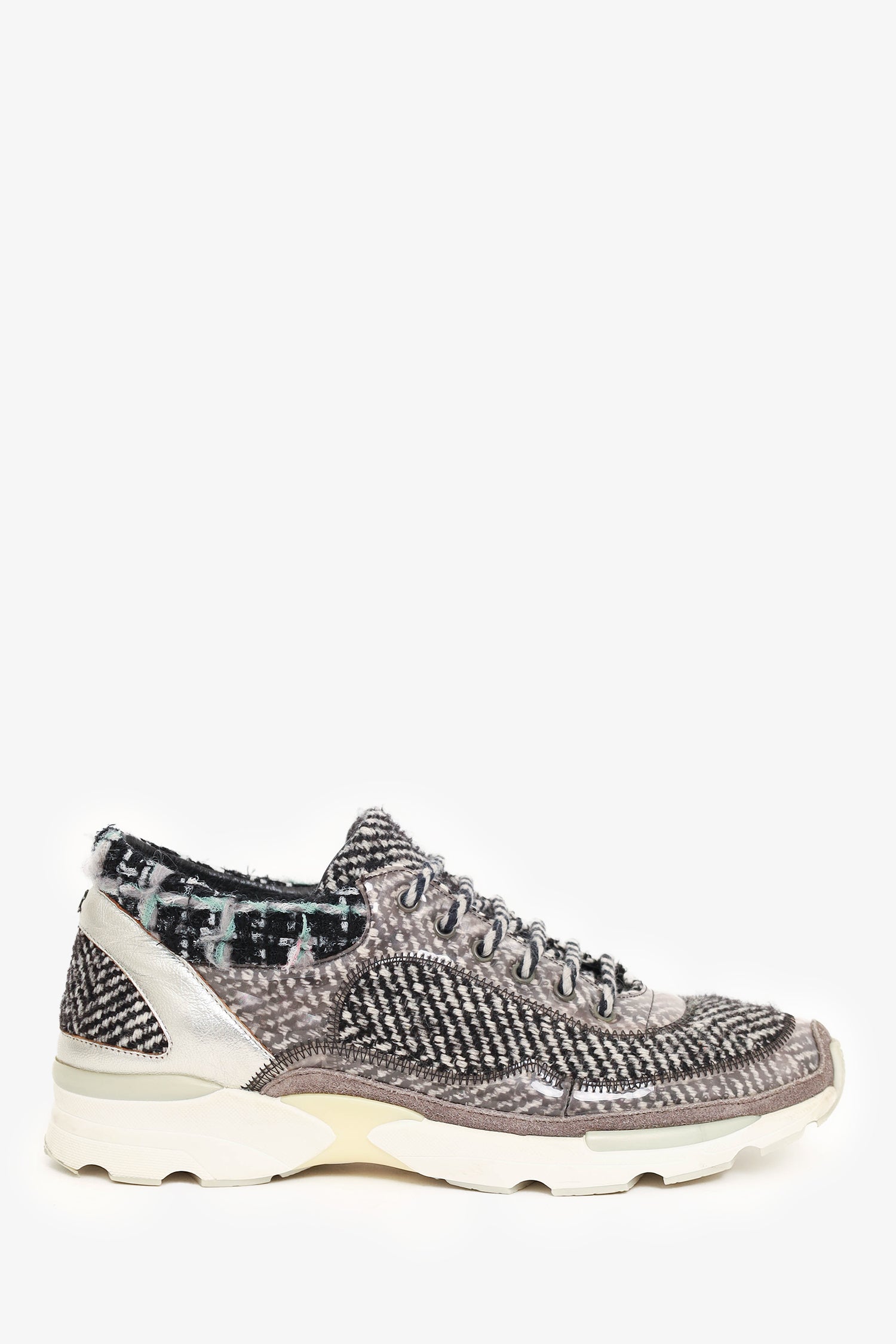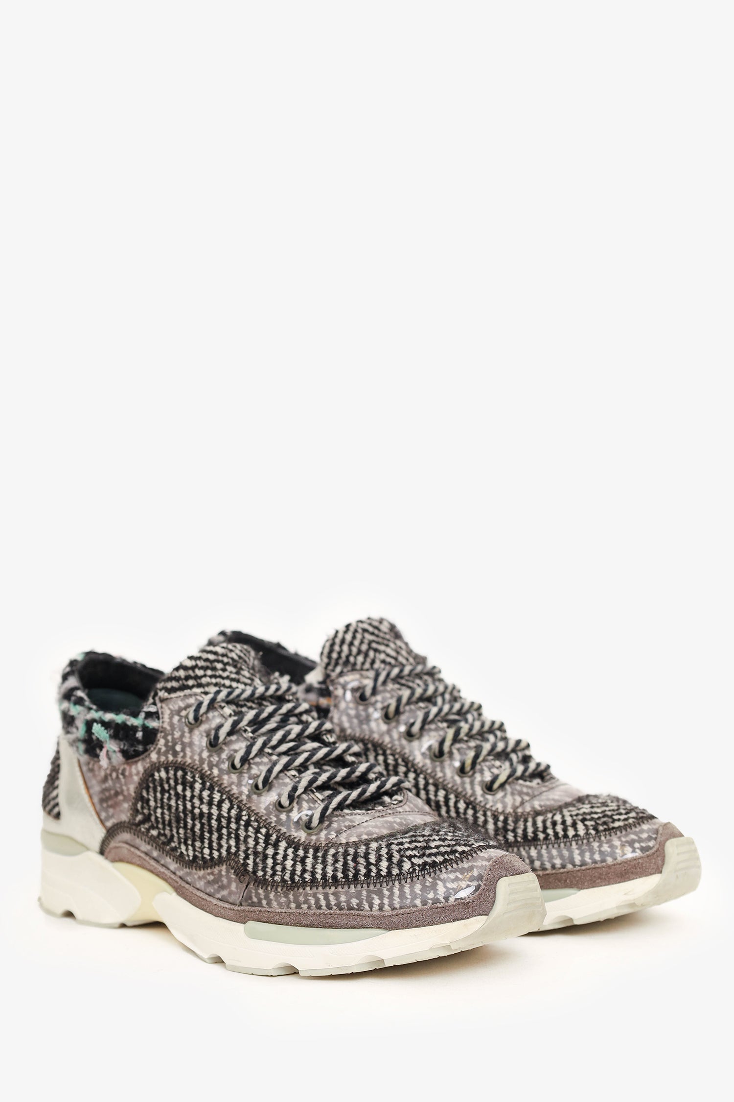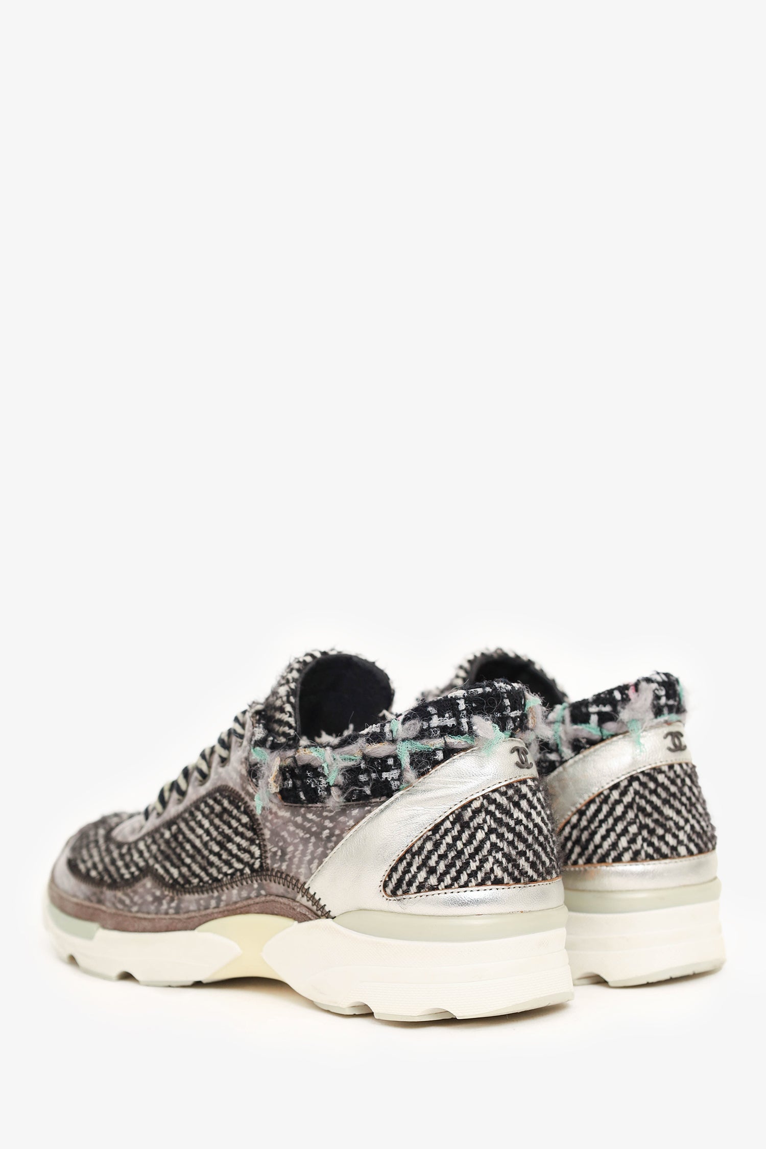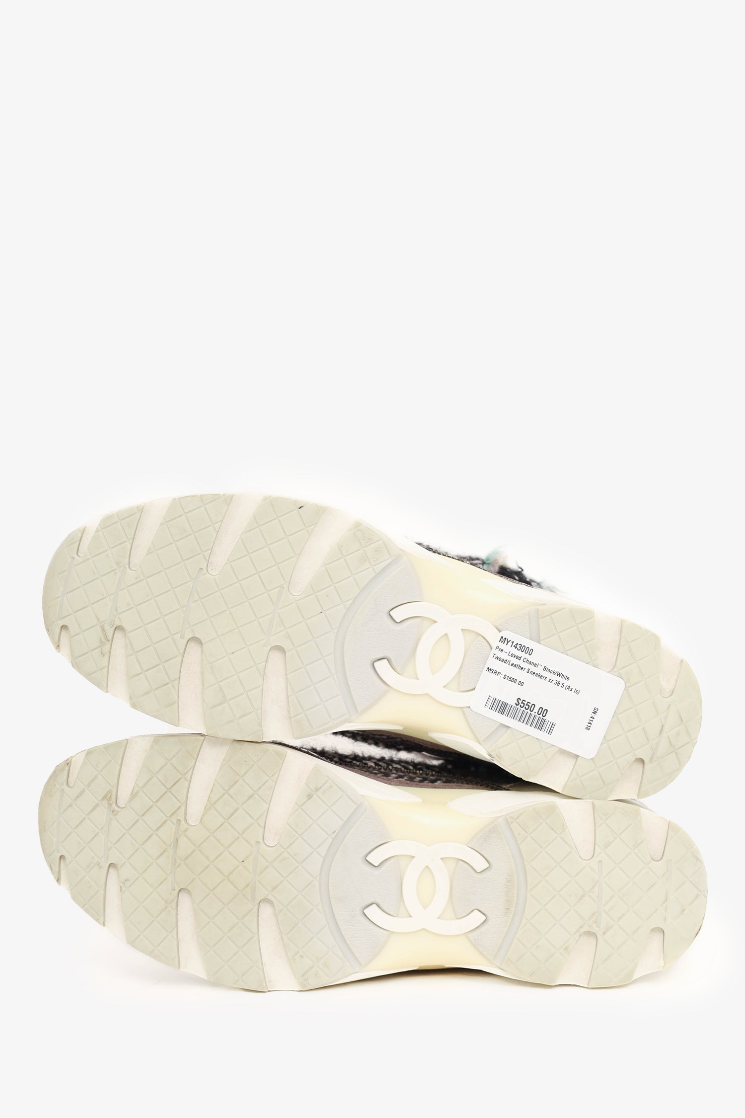 Pre-Loved Chanel™ Black/White Tweed/Leather Sneakers Size 38.5