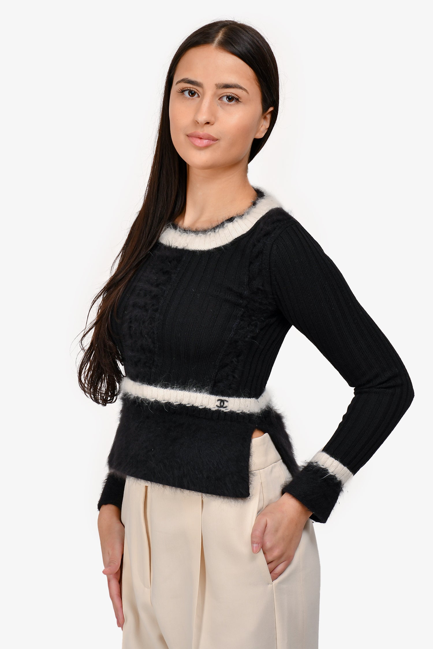 Pre-Loved Chanel™ Black/White Wool Sweater Size 34