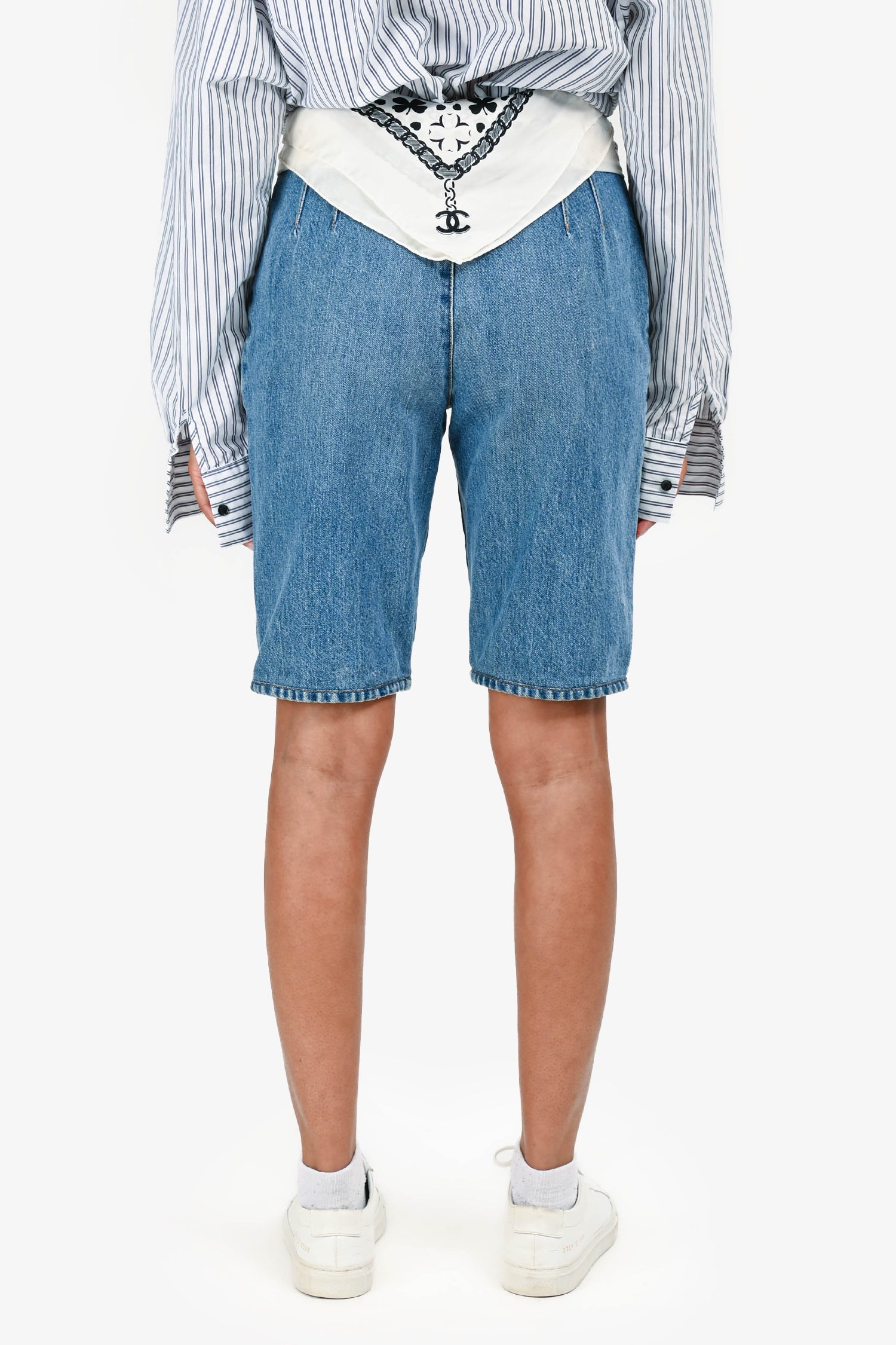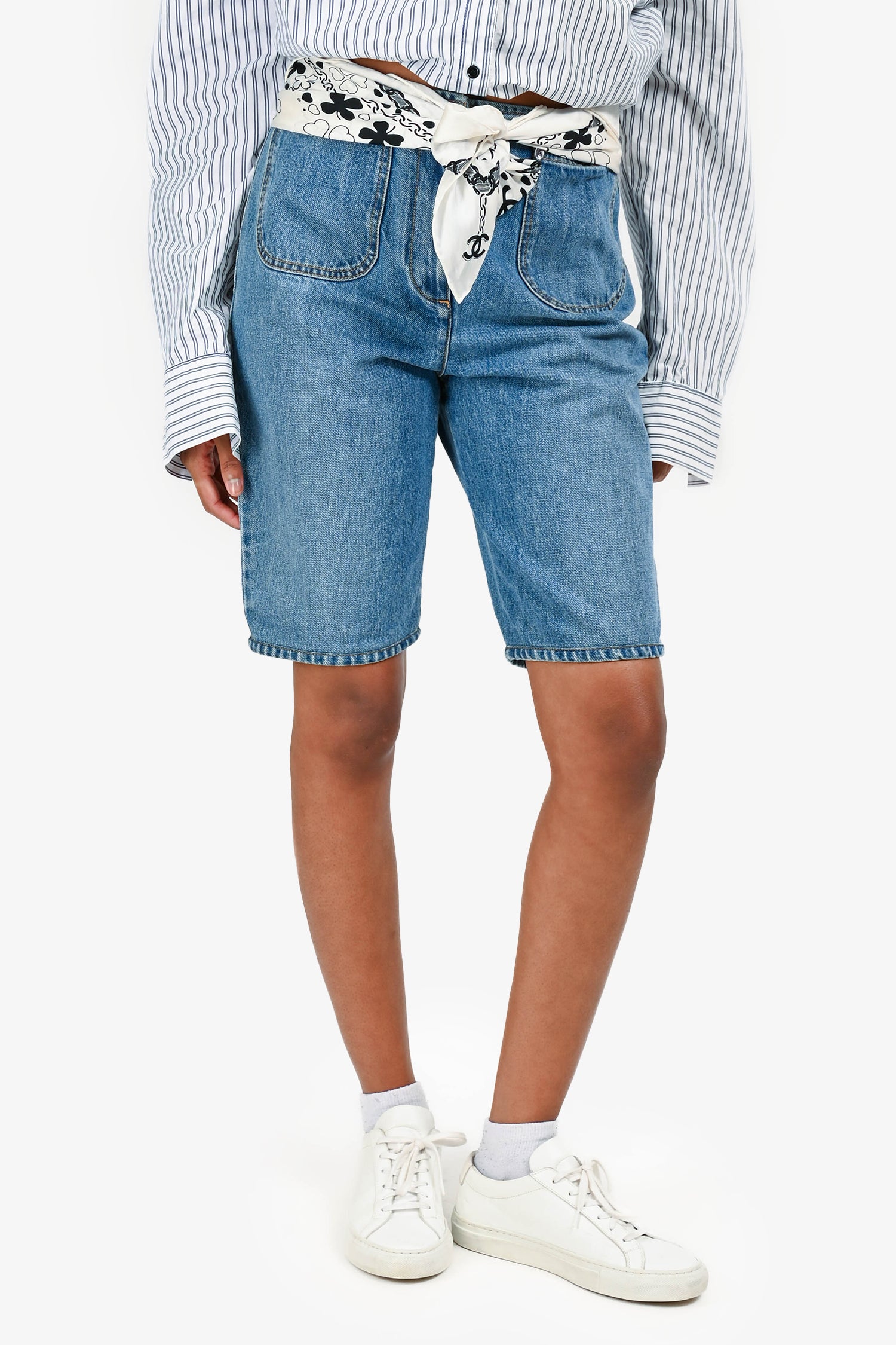 Pre-Loved Chanel™ Blue Denim Shorts with Scarf Size 40
