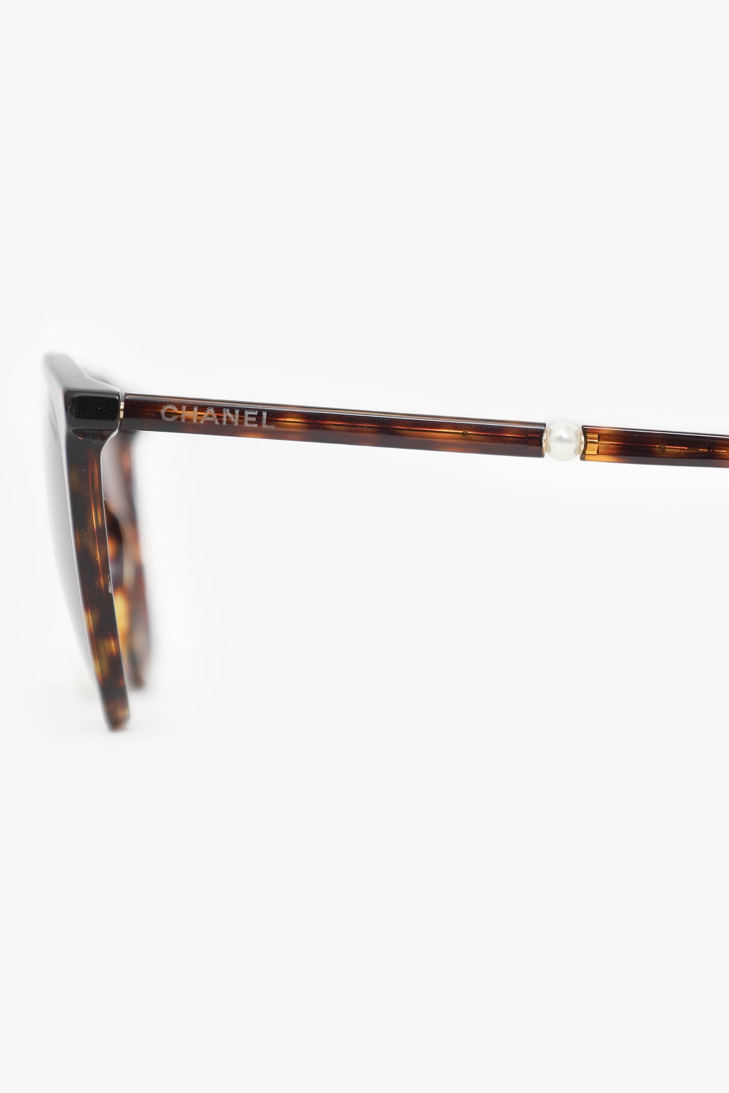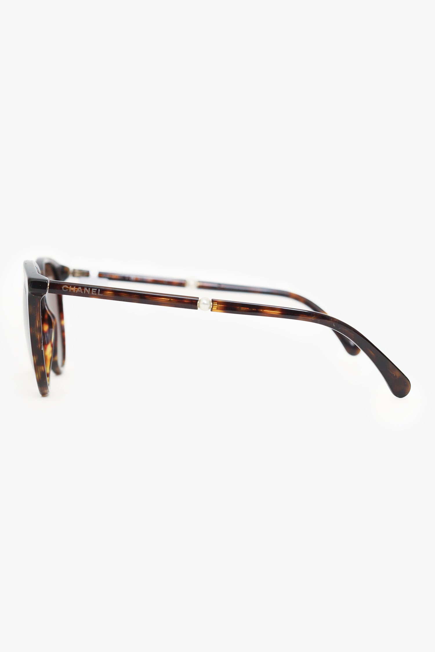 Pre-Loved Chanel™ Brown Pearl Cat Eye Tinted Sunglasses