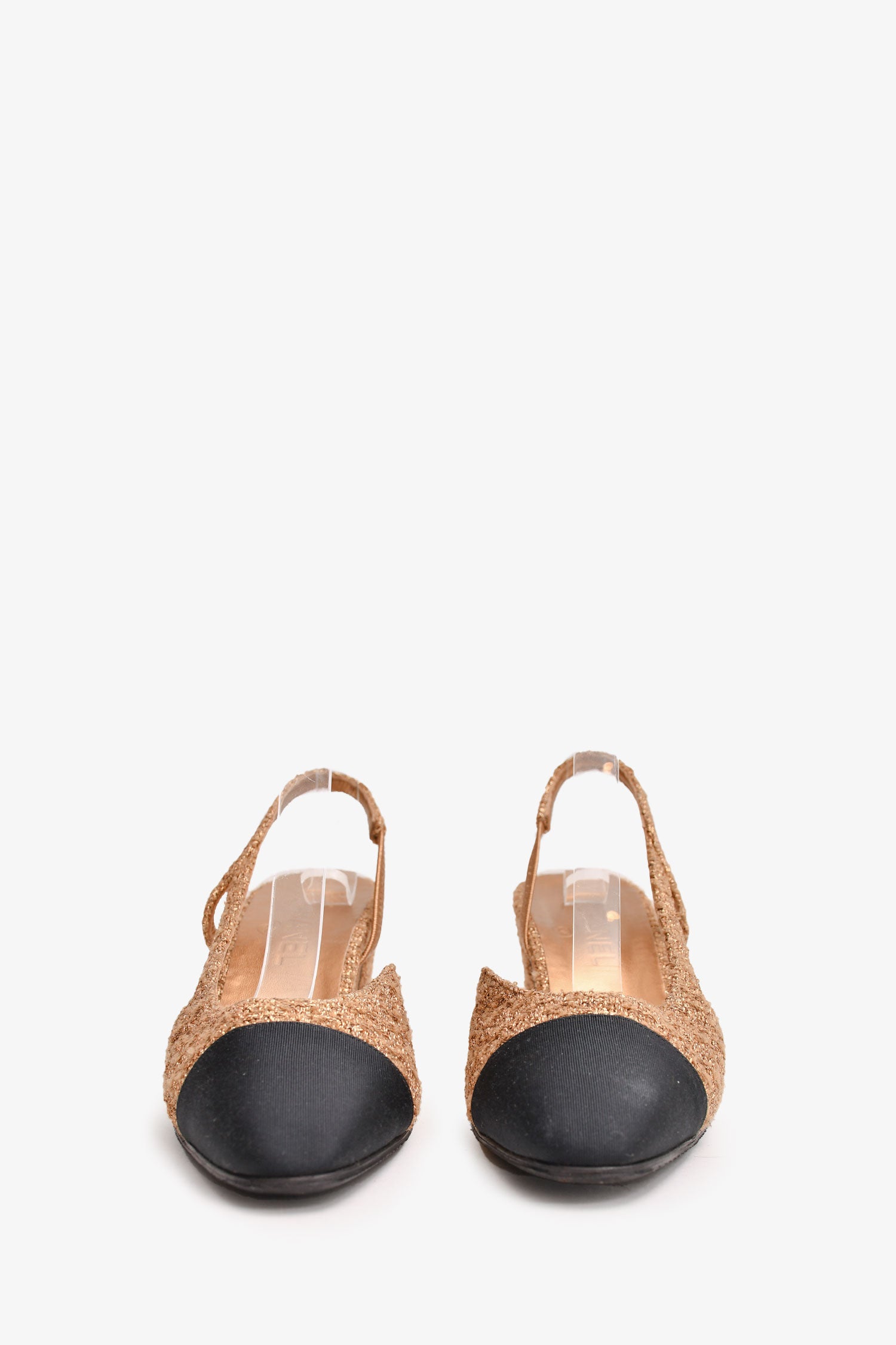 Pre-Loved Chanel™ Gold/Black Tweed Slingback Heels Size 39