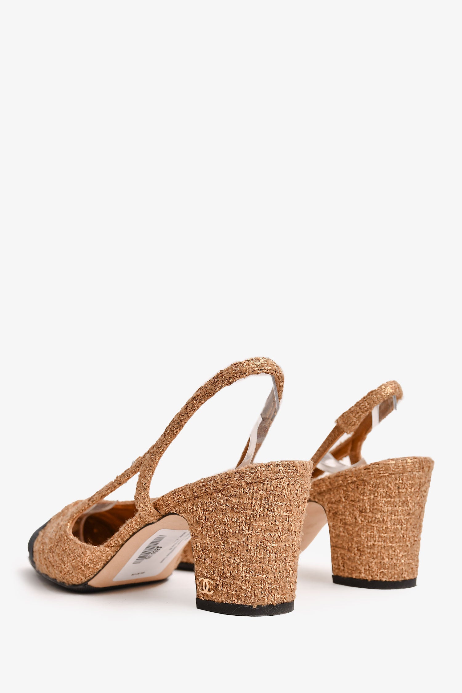 Refresh availabilityPre-Loved Chanel™ Gold/Black Tweed Slingback Heels. Elasticized ankle strap.