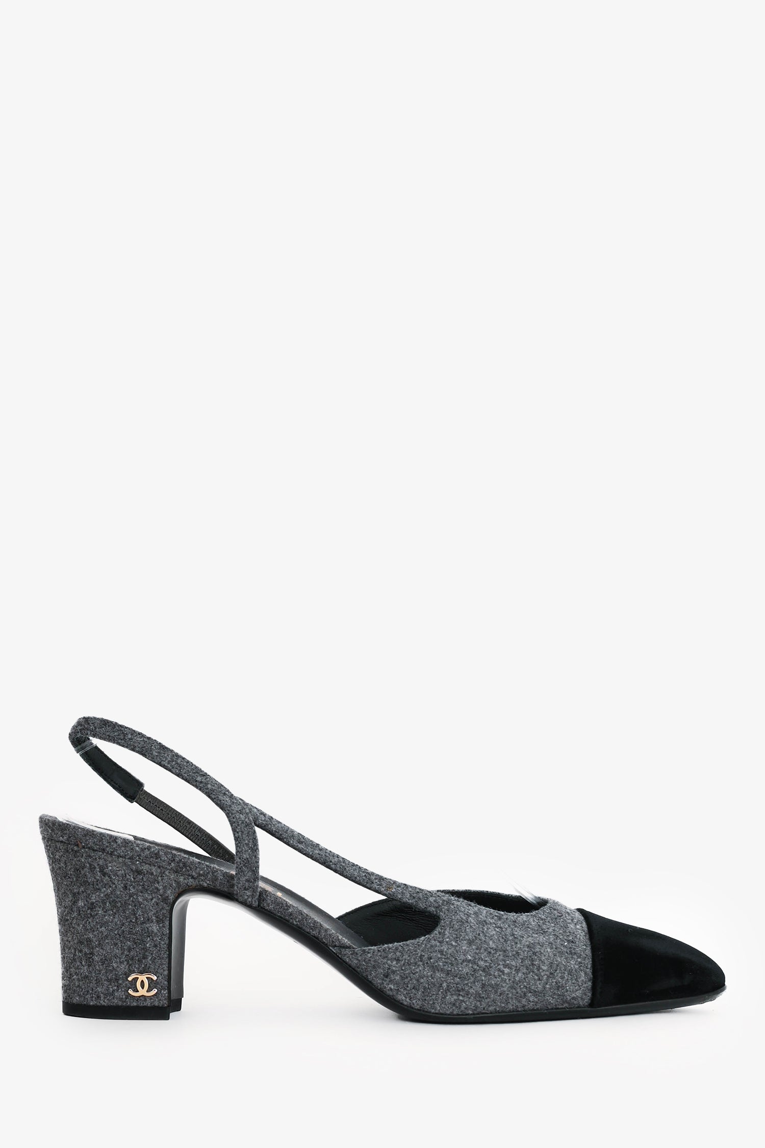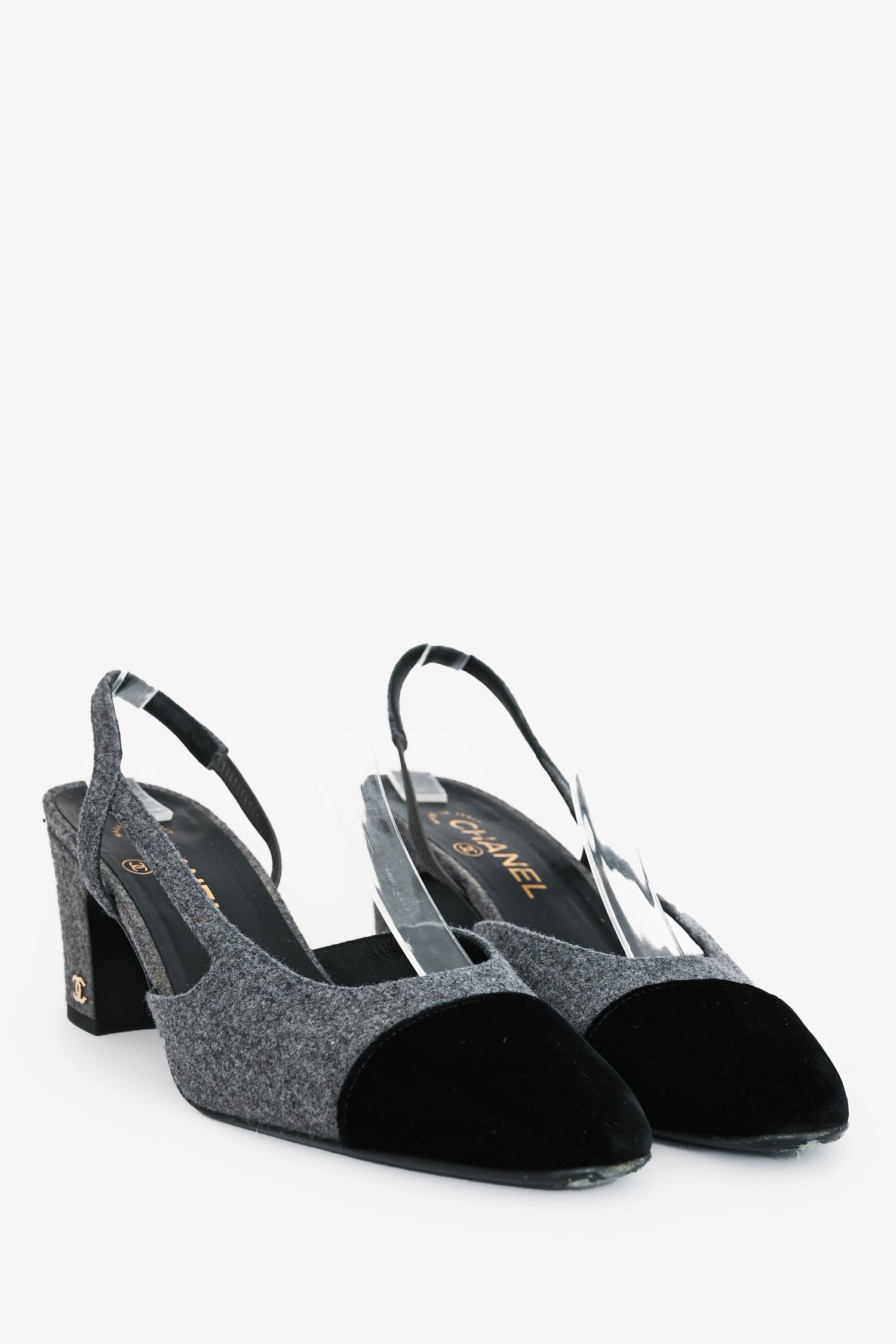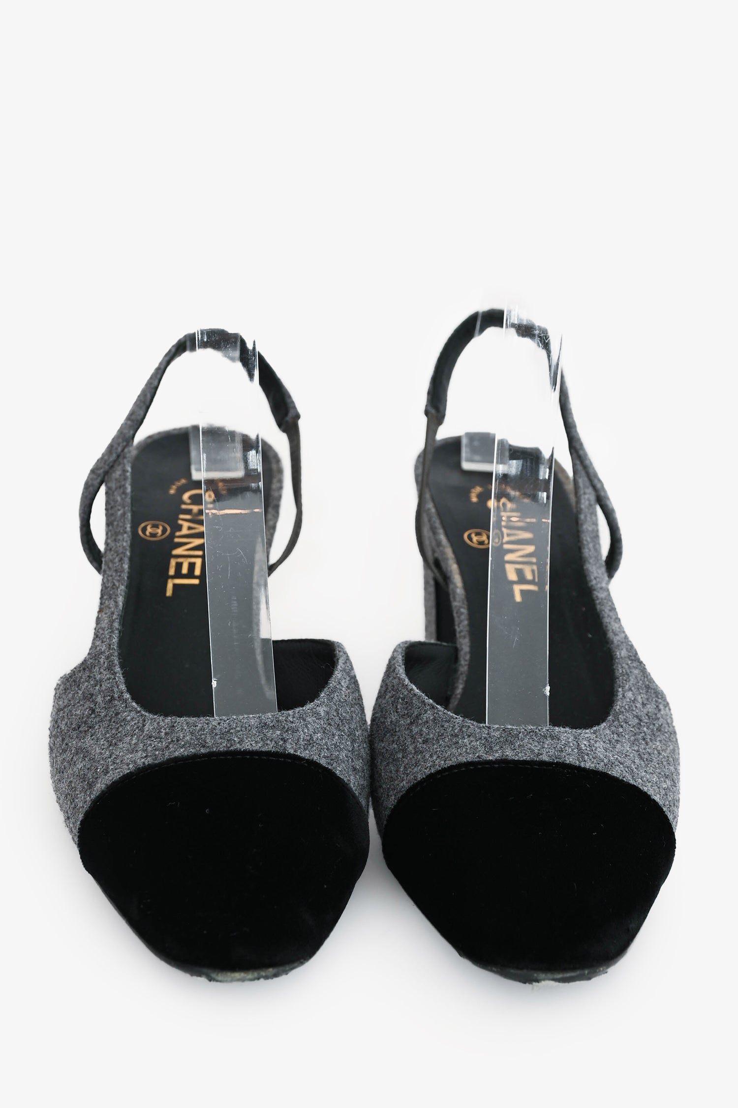 Pre-Loved Chanel™ Grey/Black Wool/Velvet Slingbacks Size 40