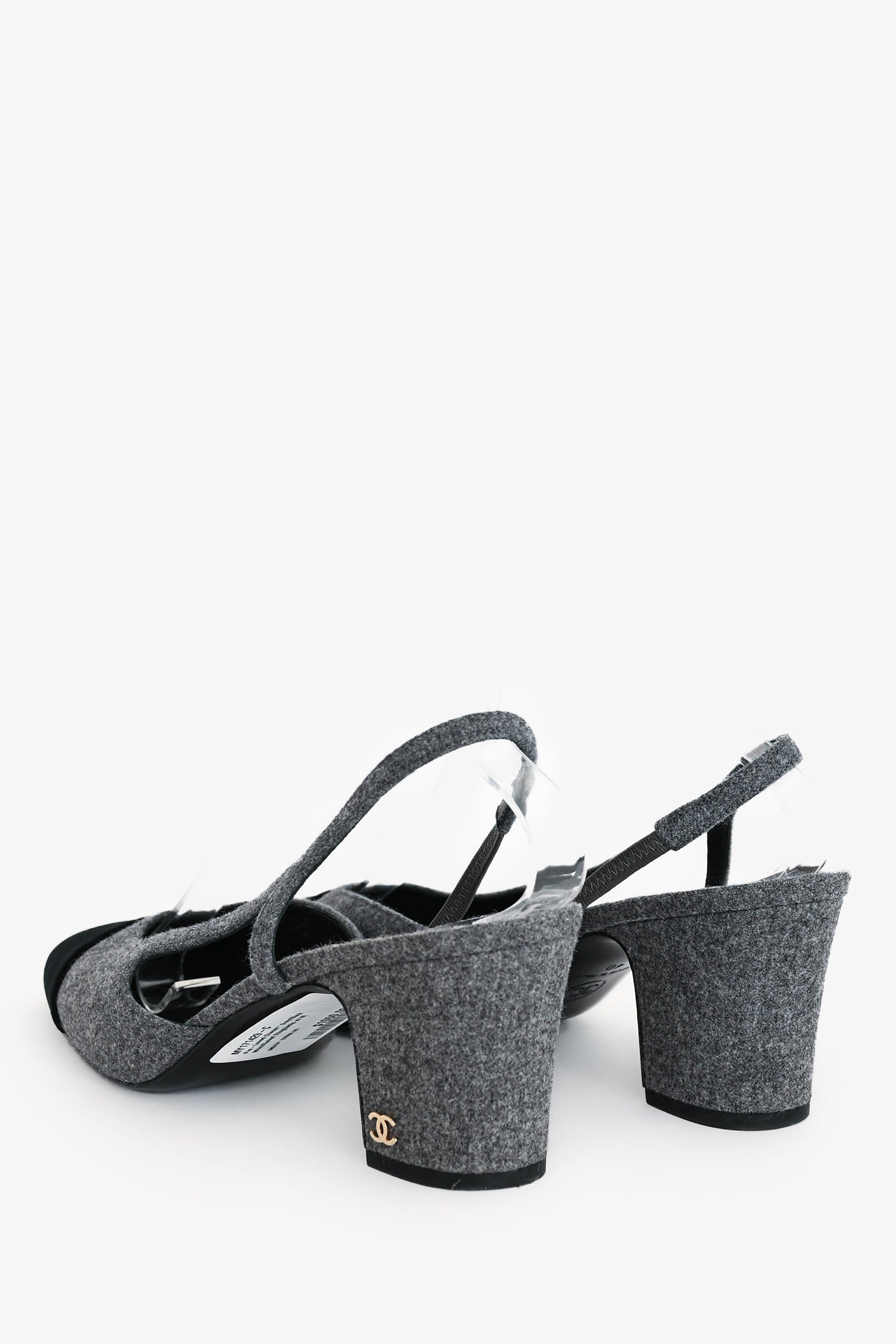 Refresh availabilityPre-Loved Chanel™ Grey/Black Wool/Velvet Slingbacks. Slip-on. Round toe. CC detail on the heel.
