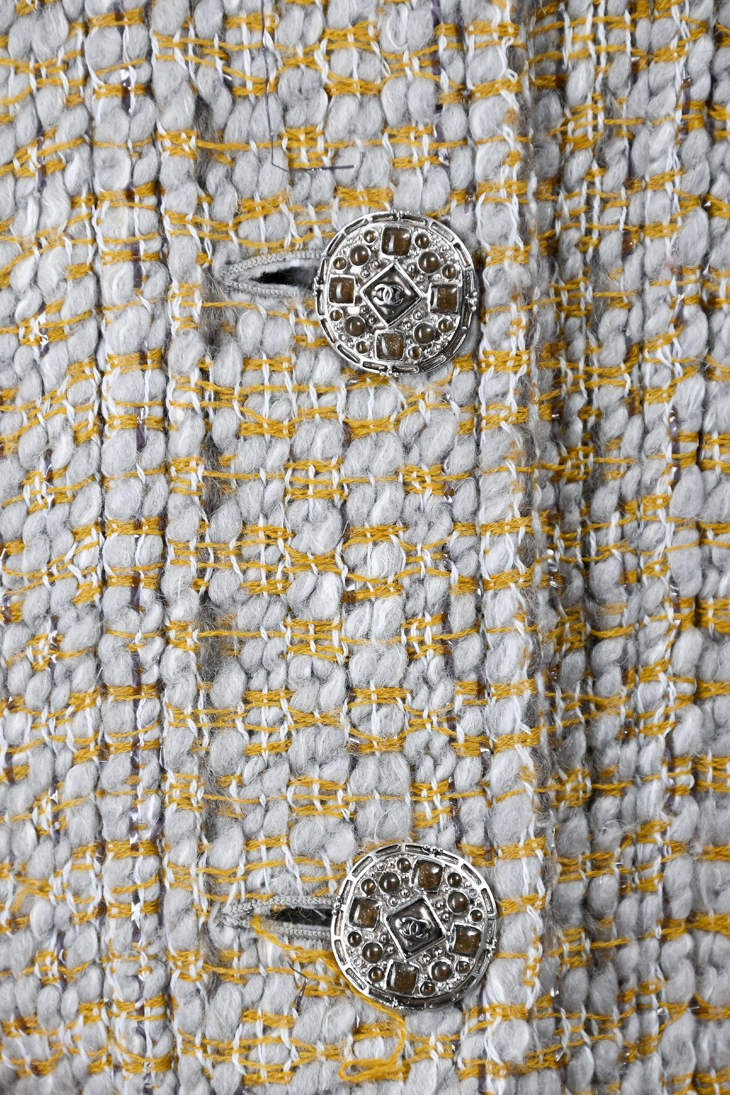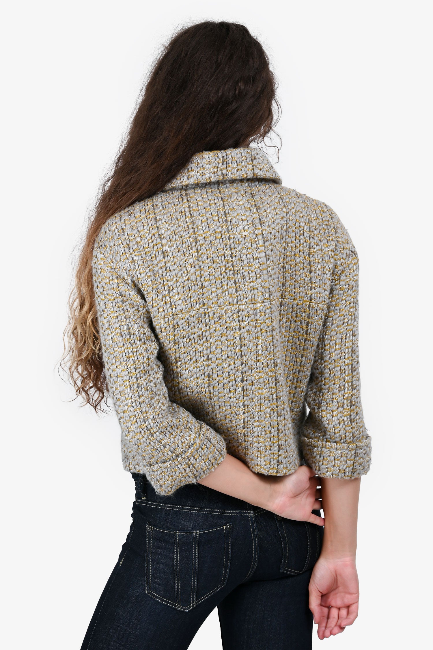 Pre-Loved Chanel™ Grey/Green Tweed 3/4 Sleeve Cropped Blazer Size 38