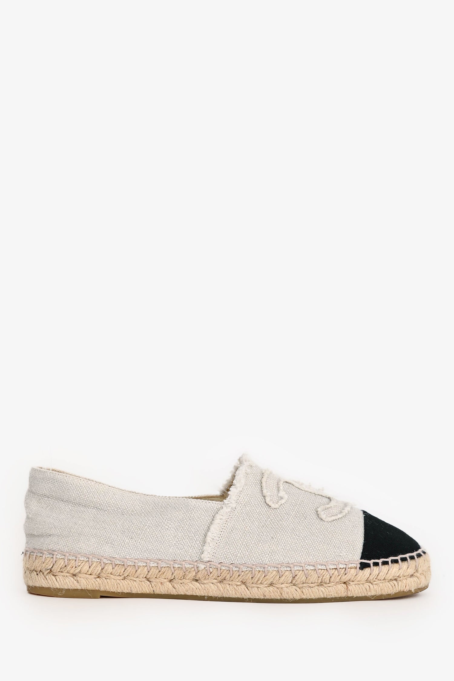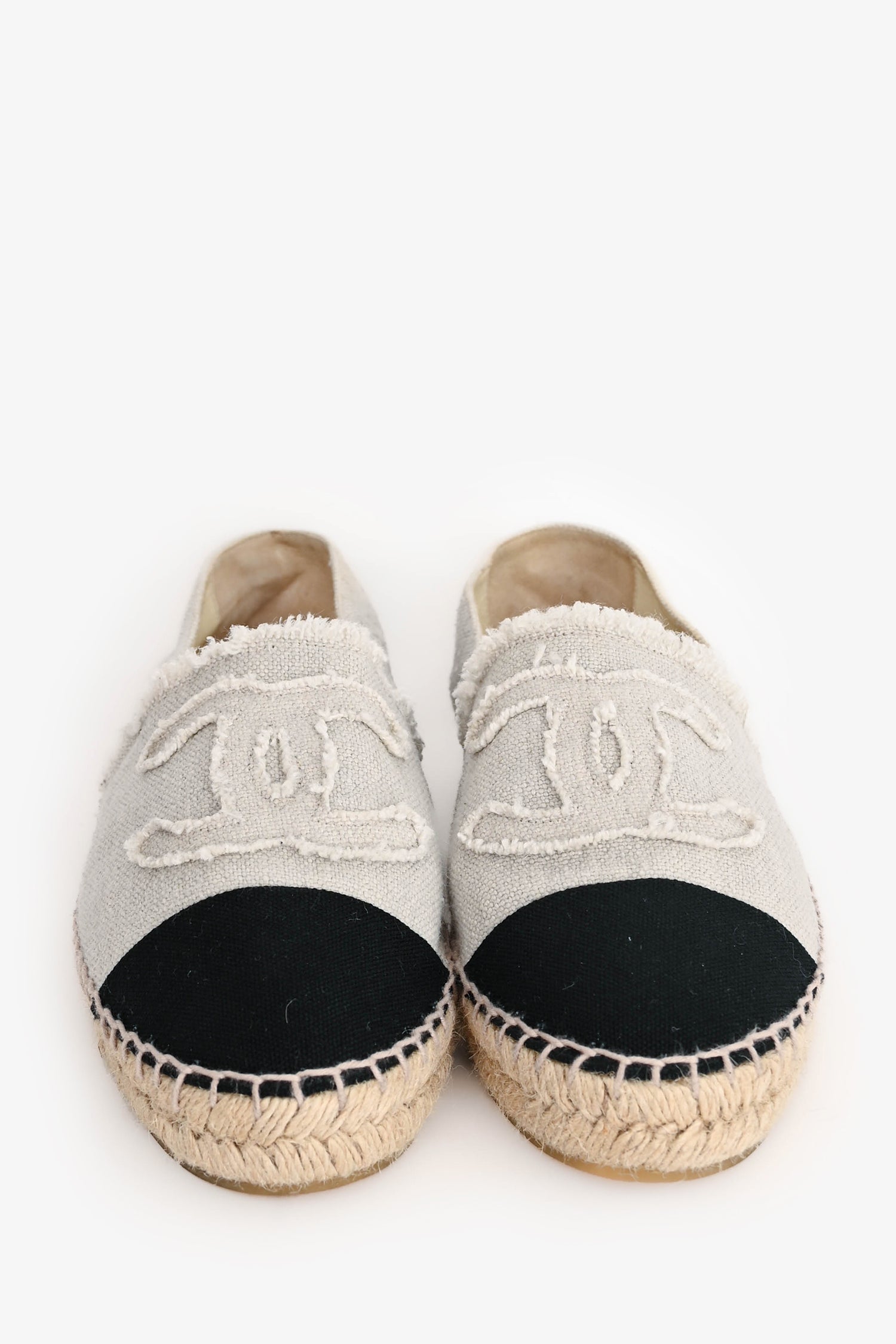 Pre-Loved Chanel™ Light Grey/Black CC Espadrilles Size 41