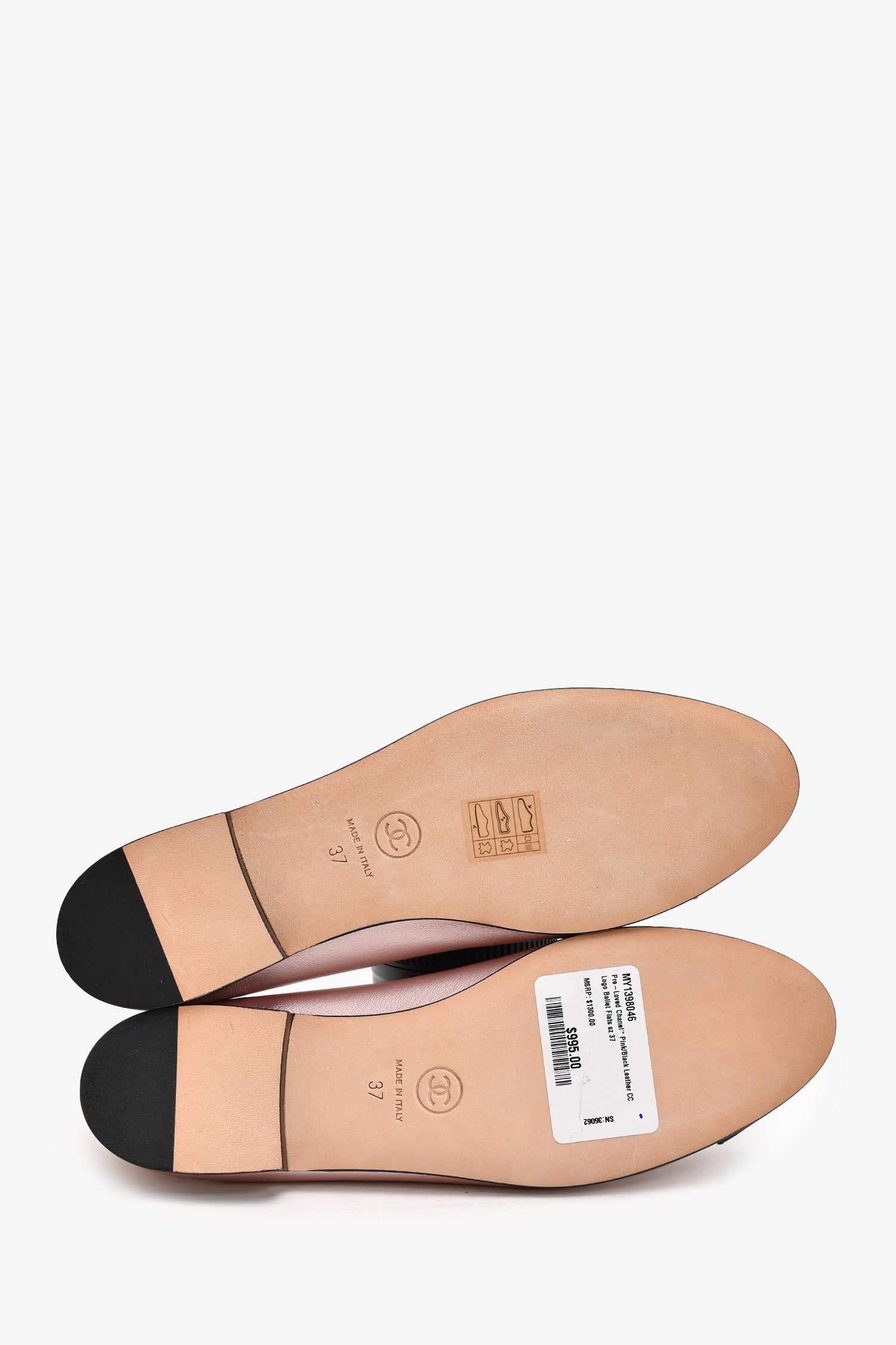 Pre-Loved Chanel™ Pink/Black Leather CC Logo Ballet Flats Size 37