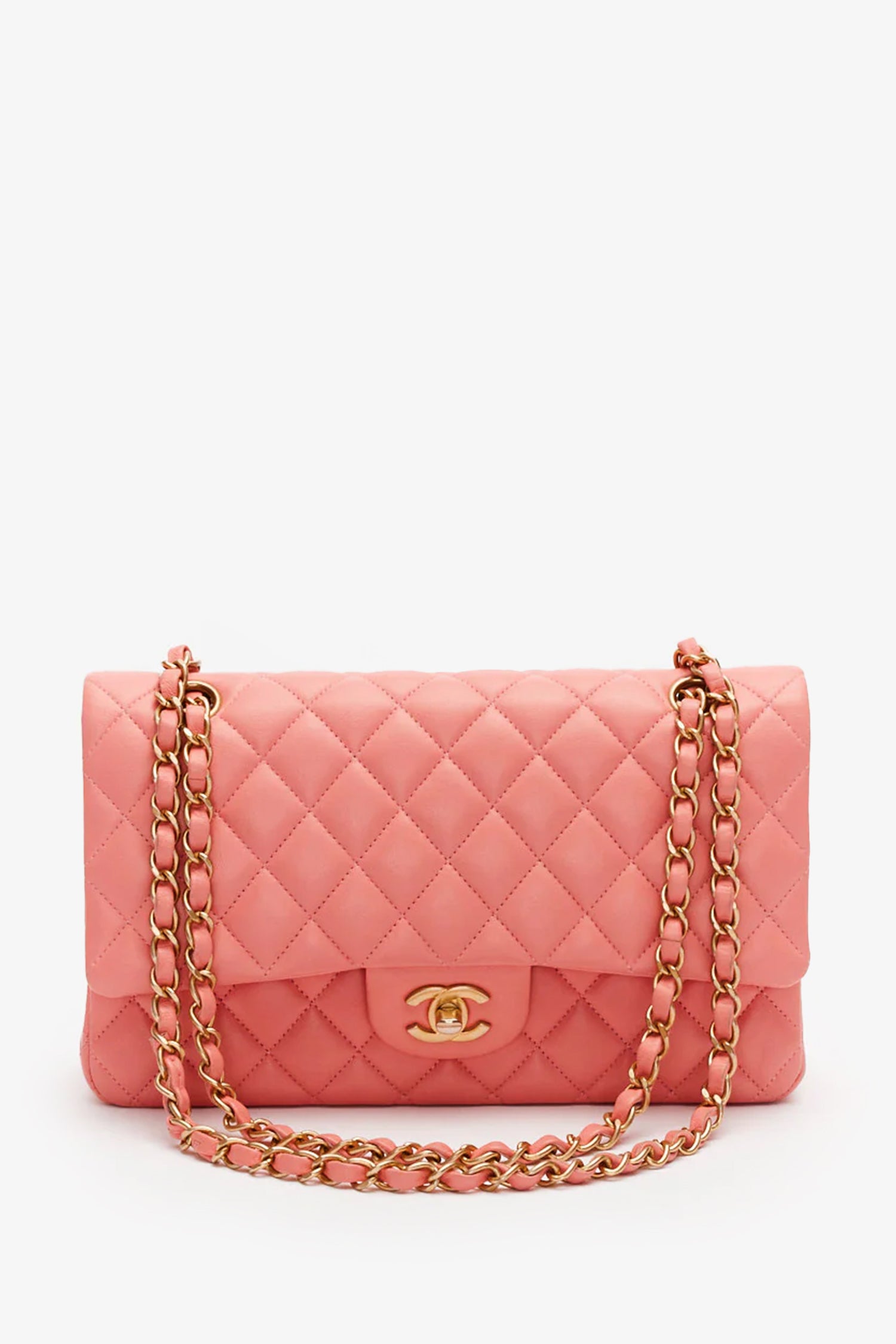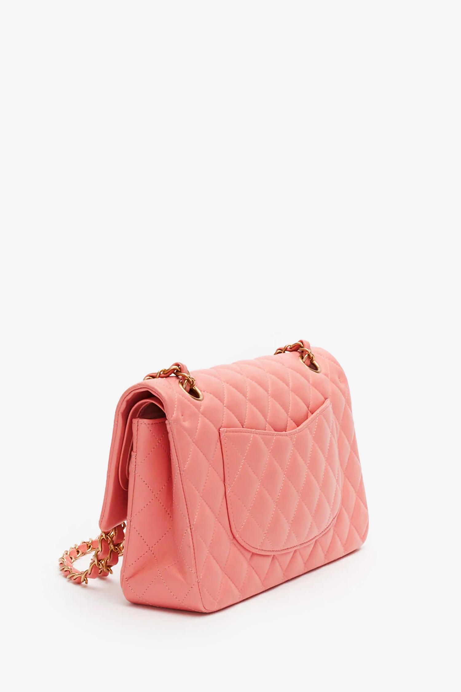 Pre-Loved Chanel™ Pink Lambskin Medium Classic Double Flap Bag 'Refurbished'