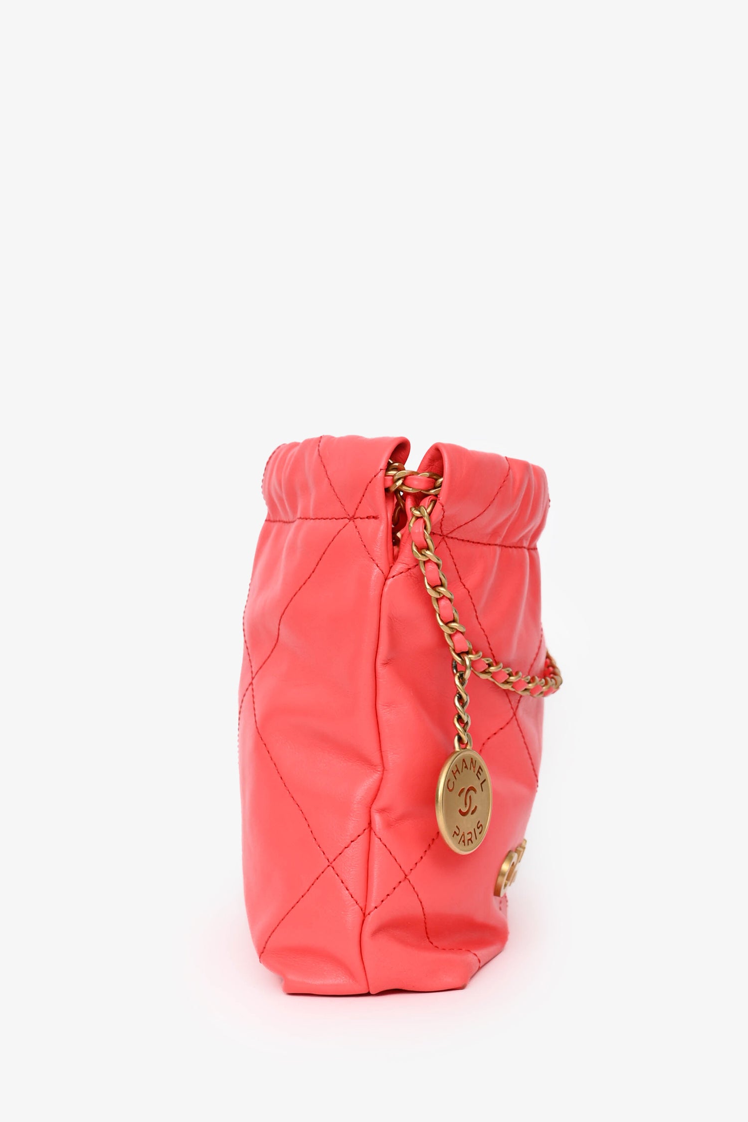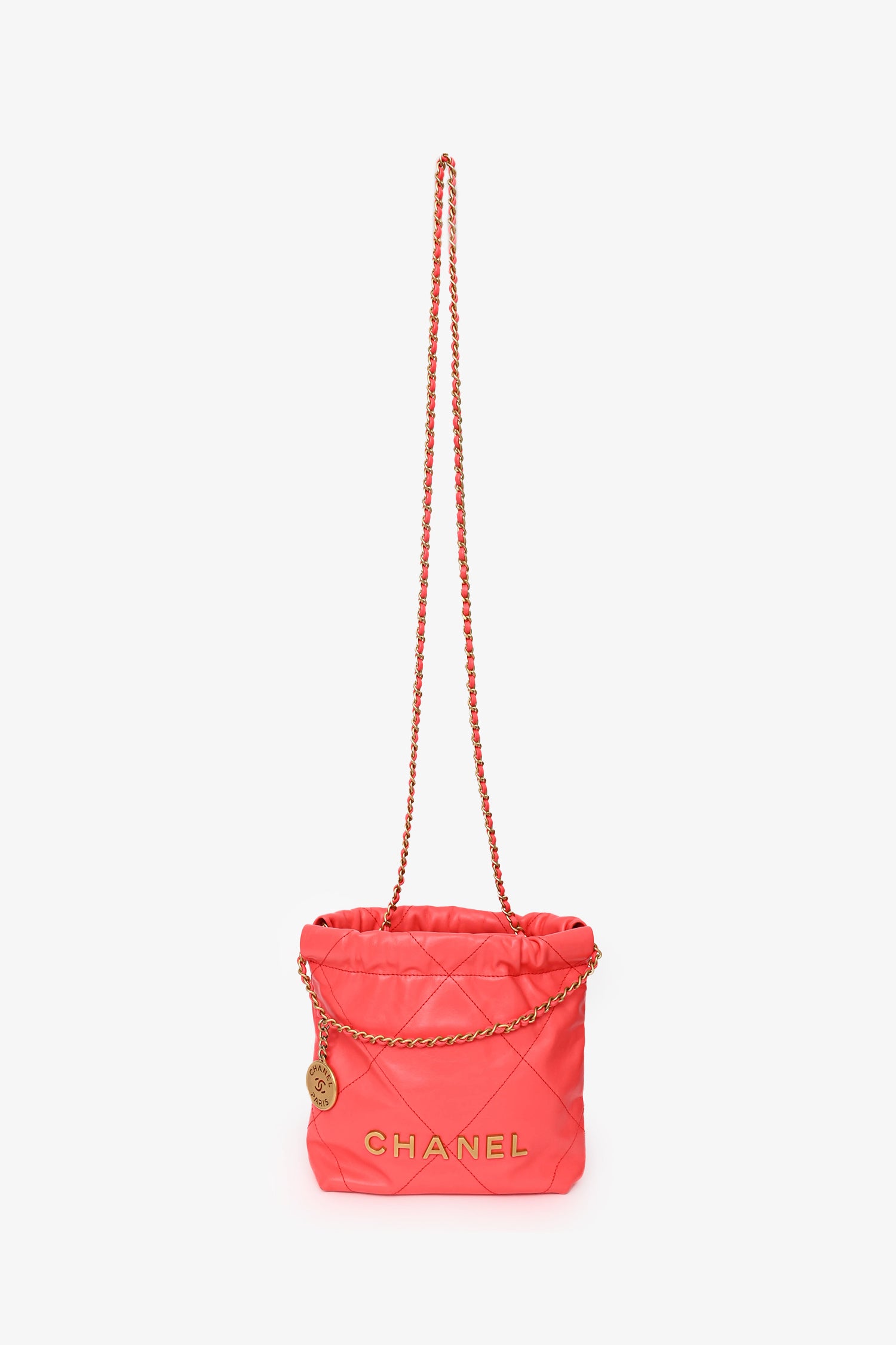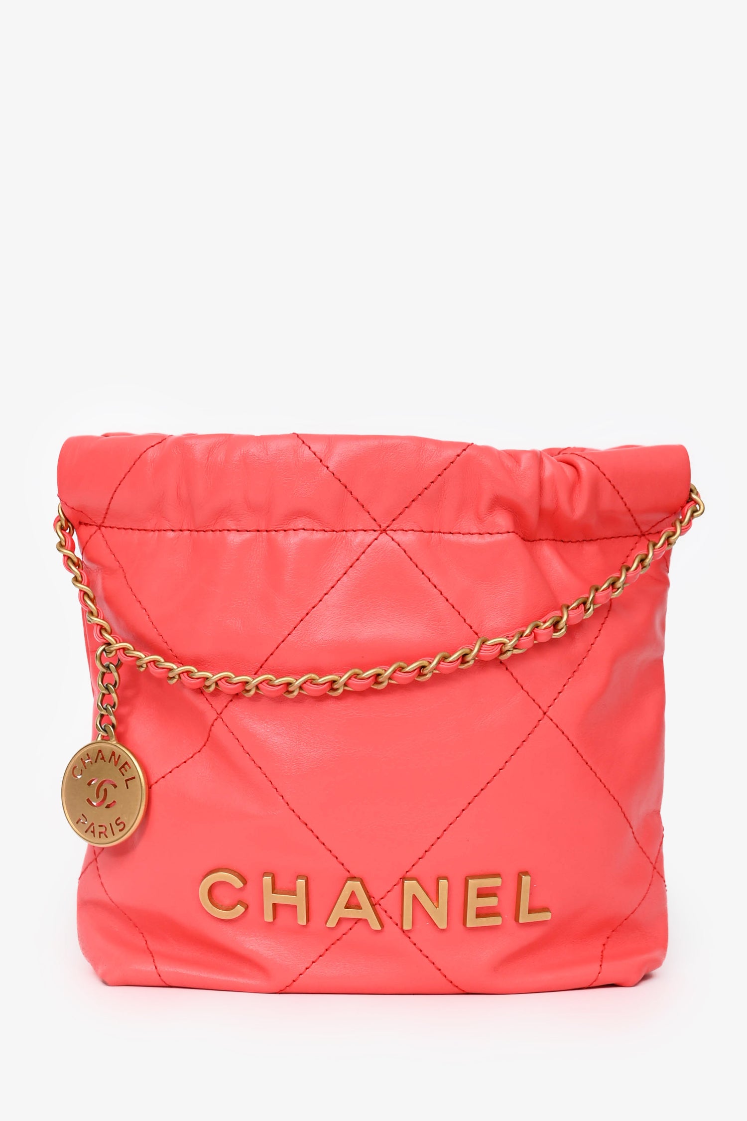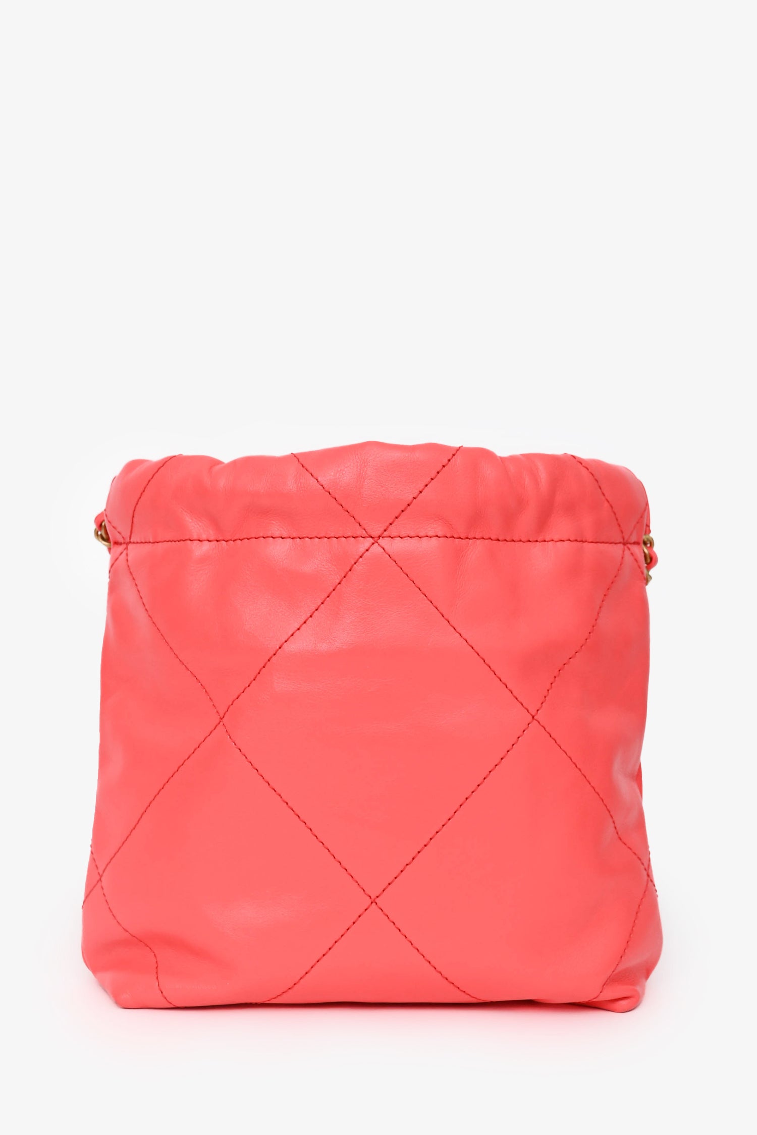 Refresh availabilityPre-Loved Chanel™ Pink Mini 22 Hobo. Gold-tone hardware. Leather-threaded chain shoulder strap and top handle. Drawstring closure. Lined interior with single slip pocket. Tonal stitching.