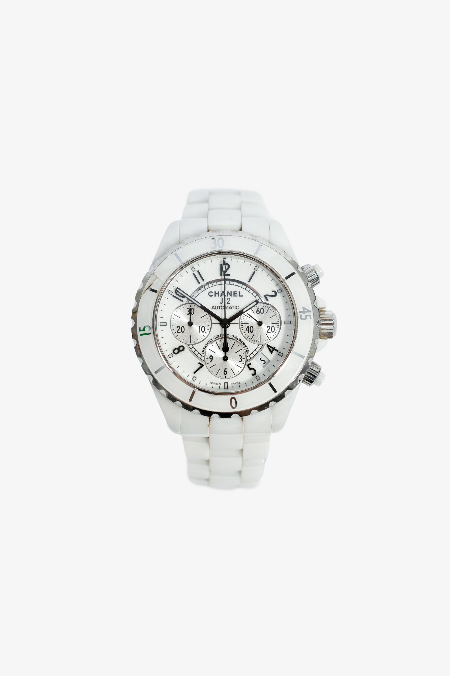 Refresh availabilityPre-Loved Chanel™ White Automatic J12 Watch. Ceramic. 3 side screw-dials. Magnetic tri-fold clasp. Silver-tone hardware.