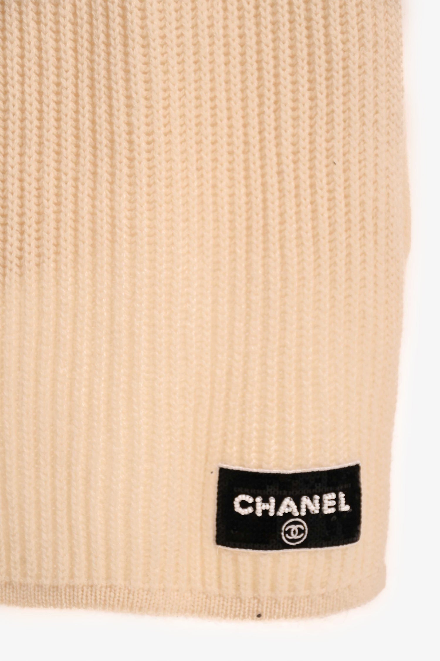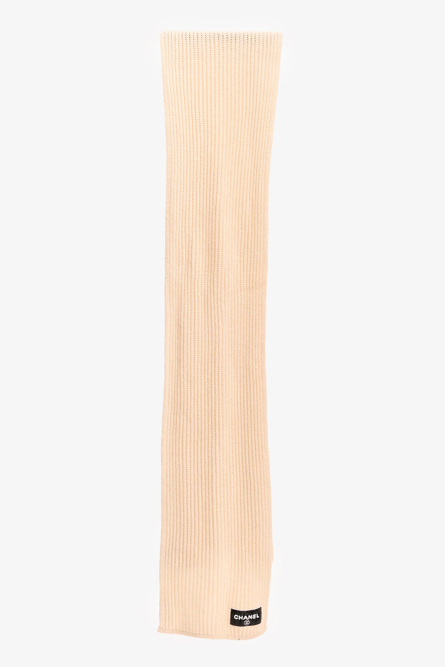 Refresh availabilityPre-Loved Chanel™ White Cashmere Sequin Logo Scarf. Tonal stitching.