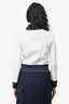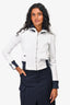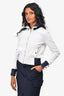 Pre-Loved Chanel White/Navy Trim Collared Zip Up Sweater Size 34 (As Is)