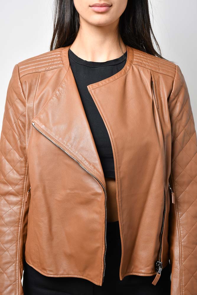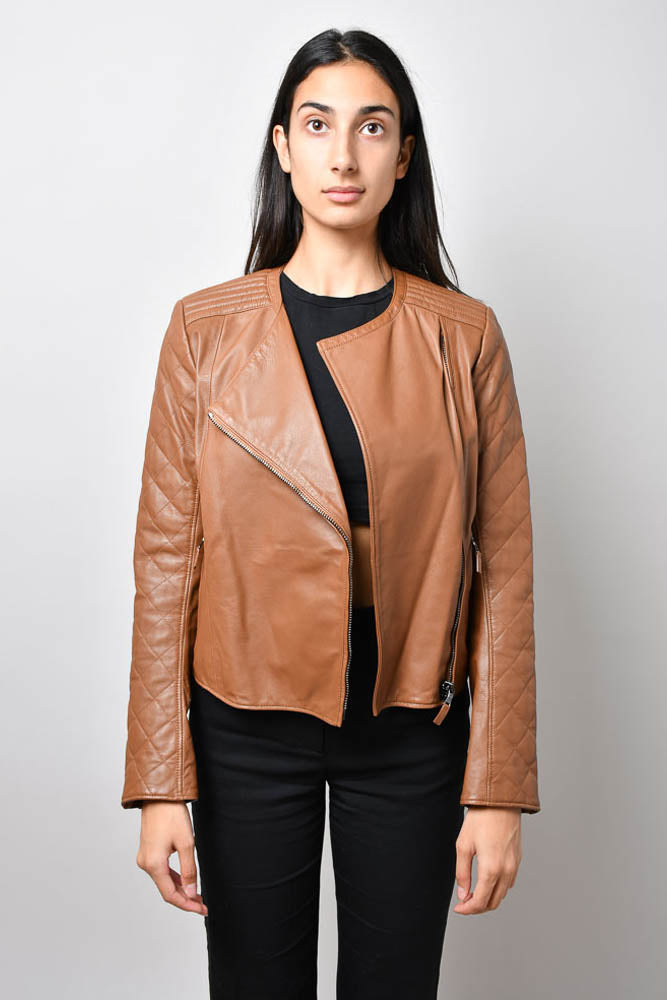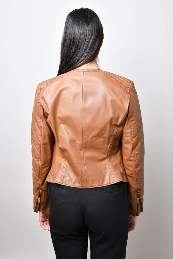 Refresh availabilityEtro Brown Leather Quilted Sleeve Moto Jacket. Front zip closure. Zip detail on cuffs. 2 exterior pockets with zip closures. Floral interior lining. Silver-tone hardware. Tonal stitching.