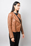 Etro Brown Leather Quilted Sleeve Moto Jacket Size 42