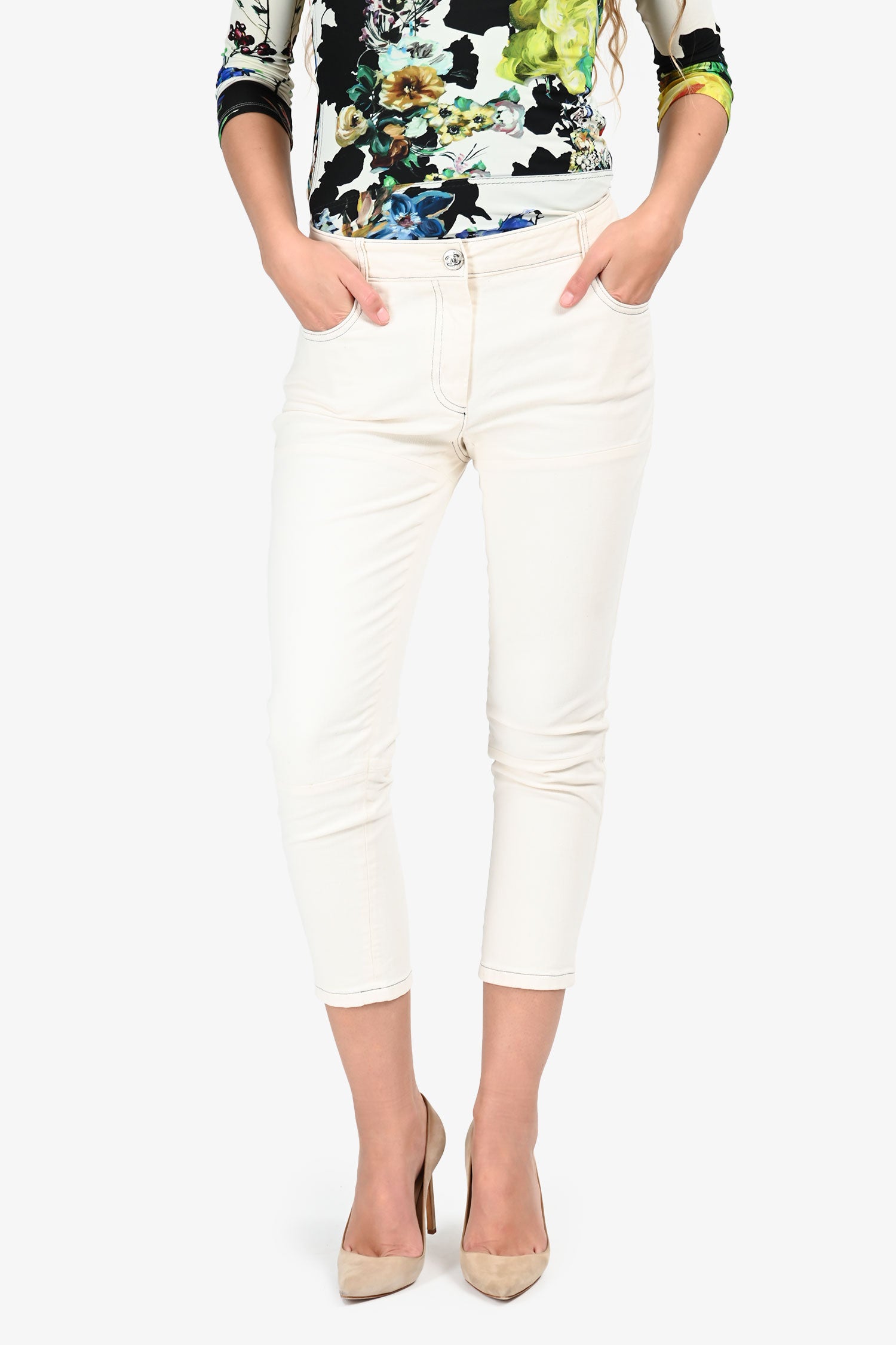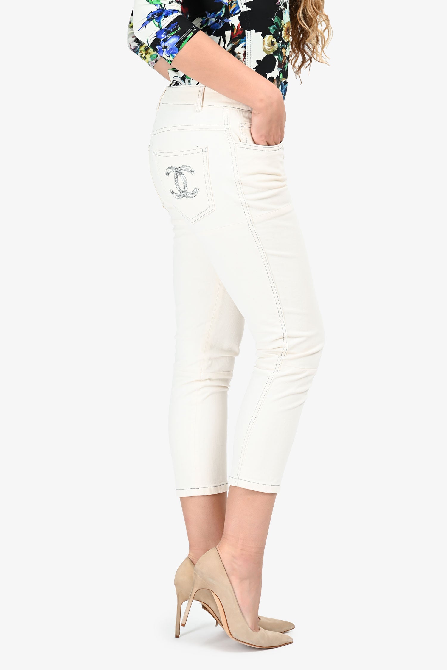 Pre-Loved Chanel™ White Denim Straight Legged Jeans Size 40