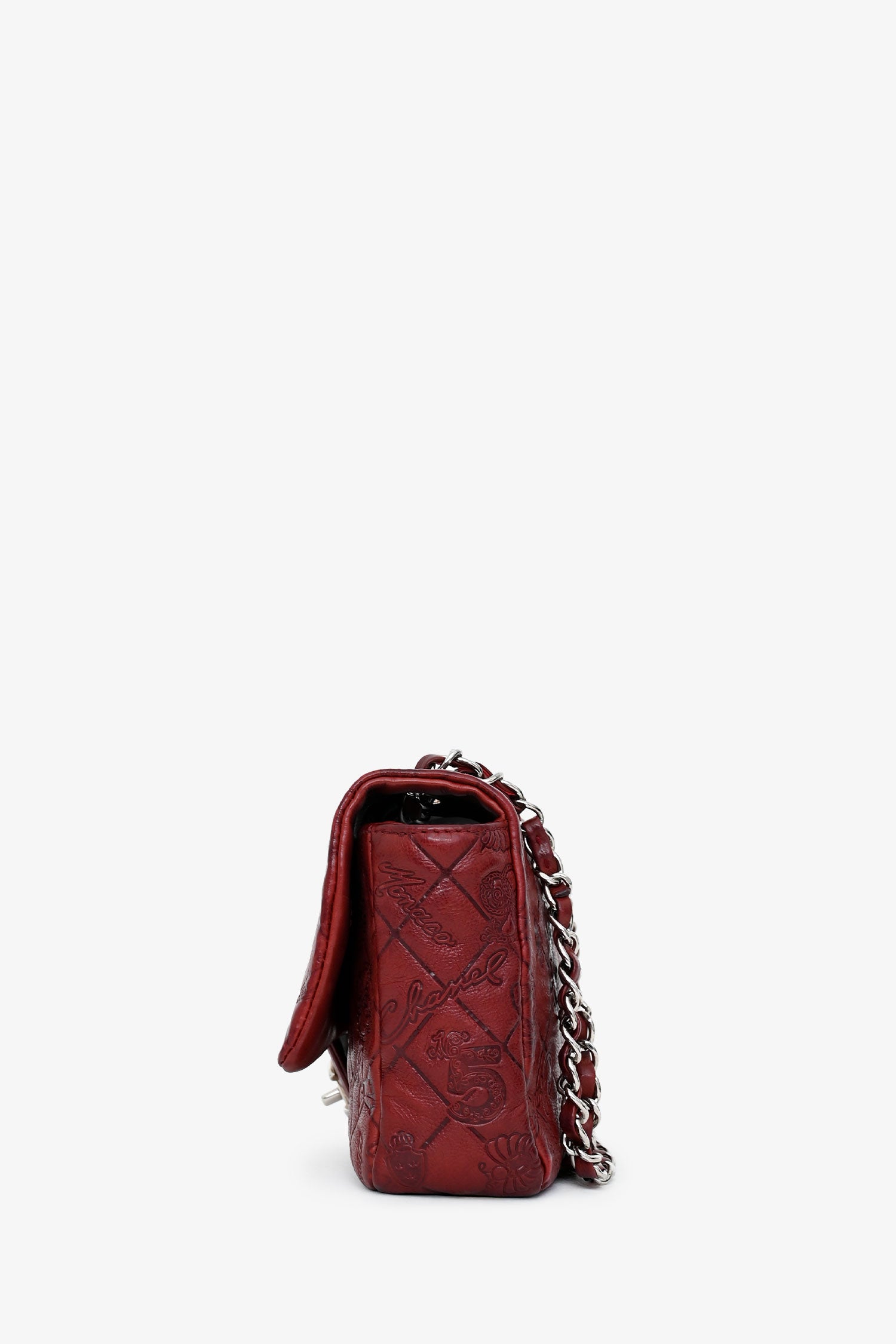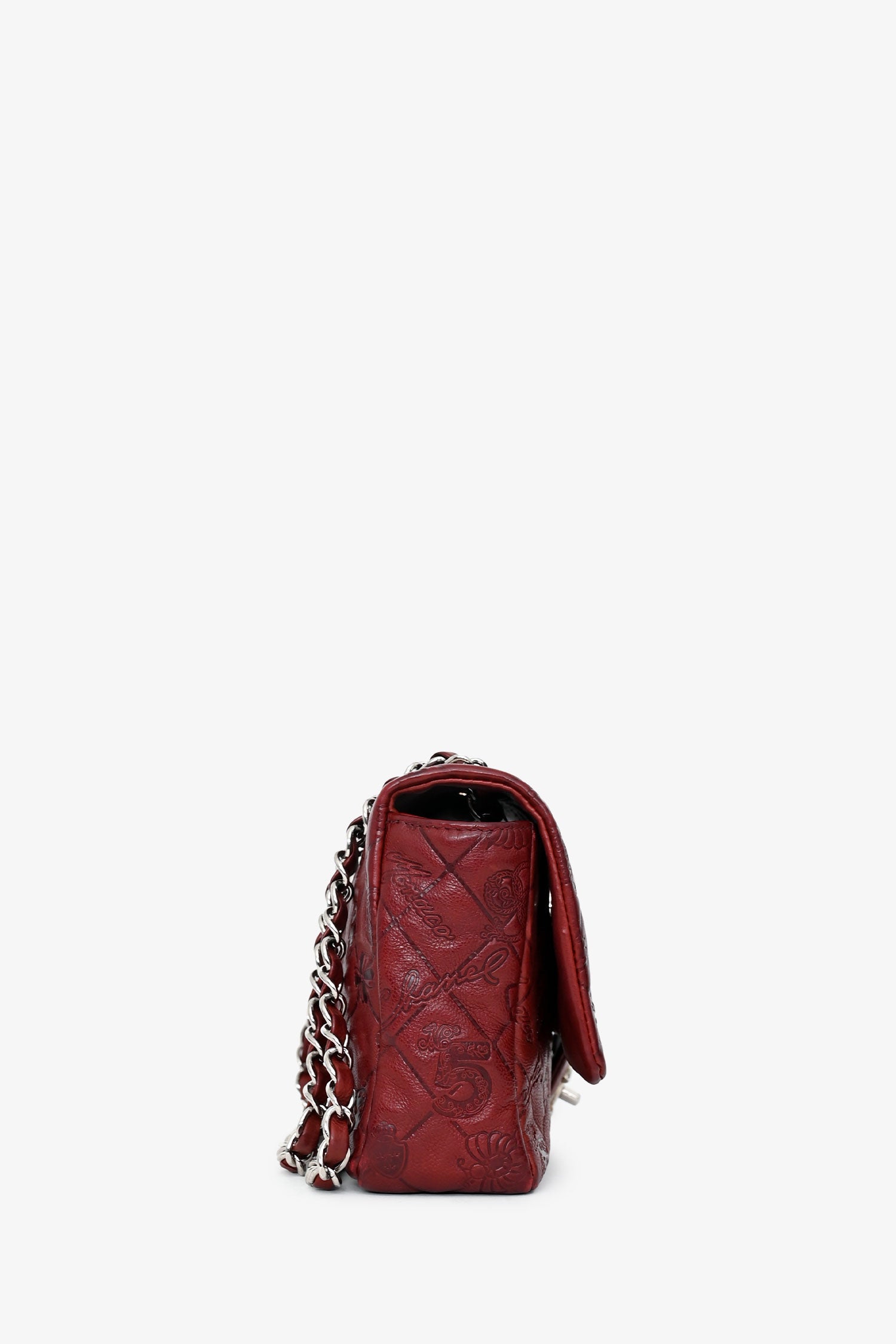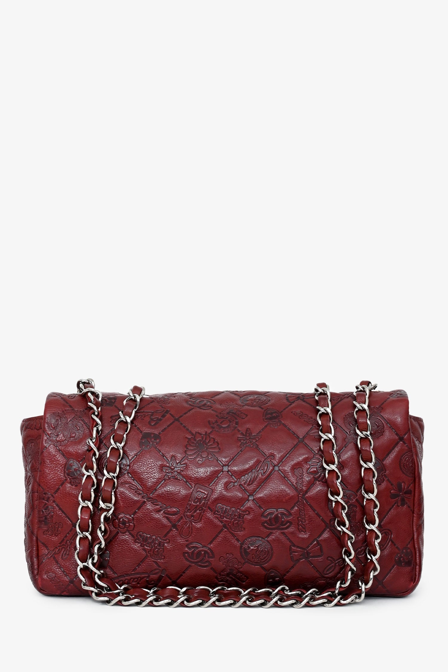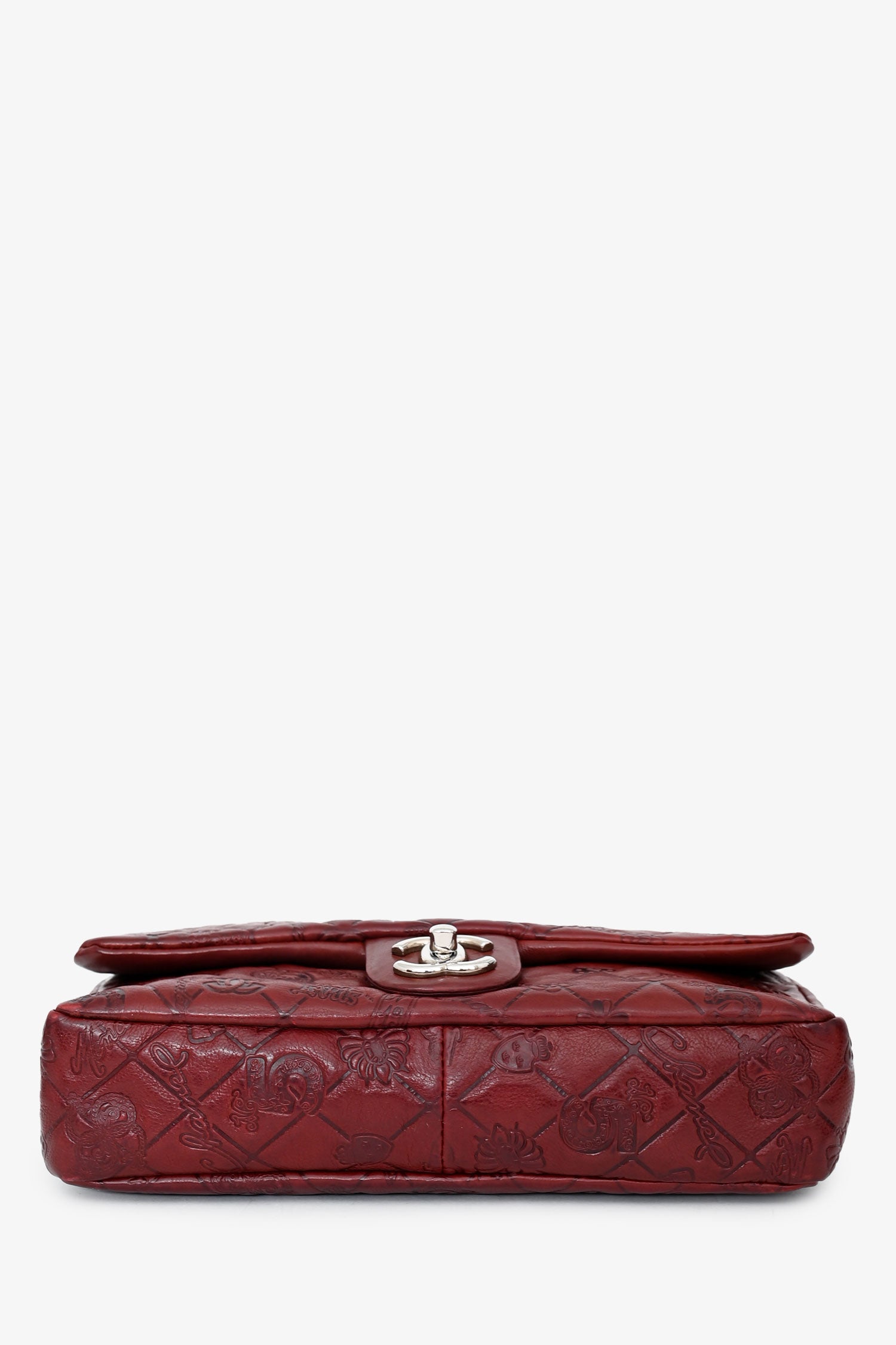 Pre-Loved Chanel™ 2011 Burgundy Lucky Charms Embossed Medium Single Flap Silver Hardware