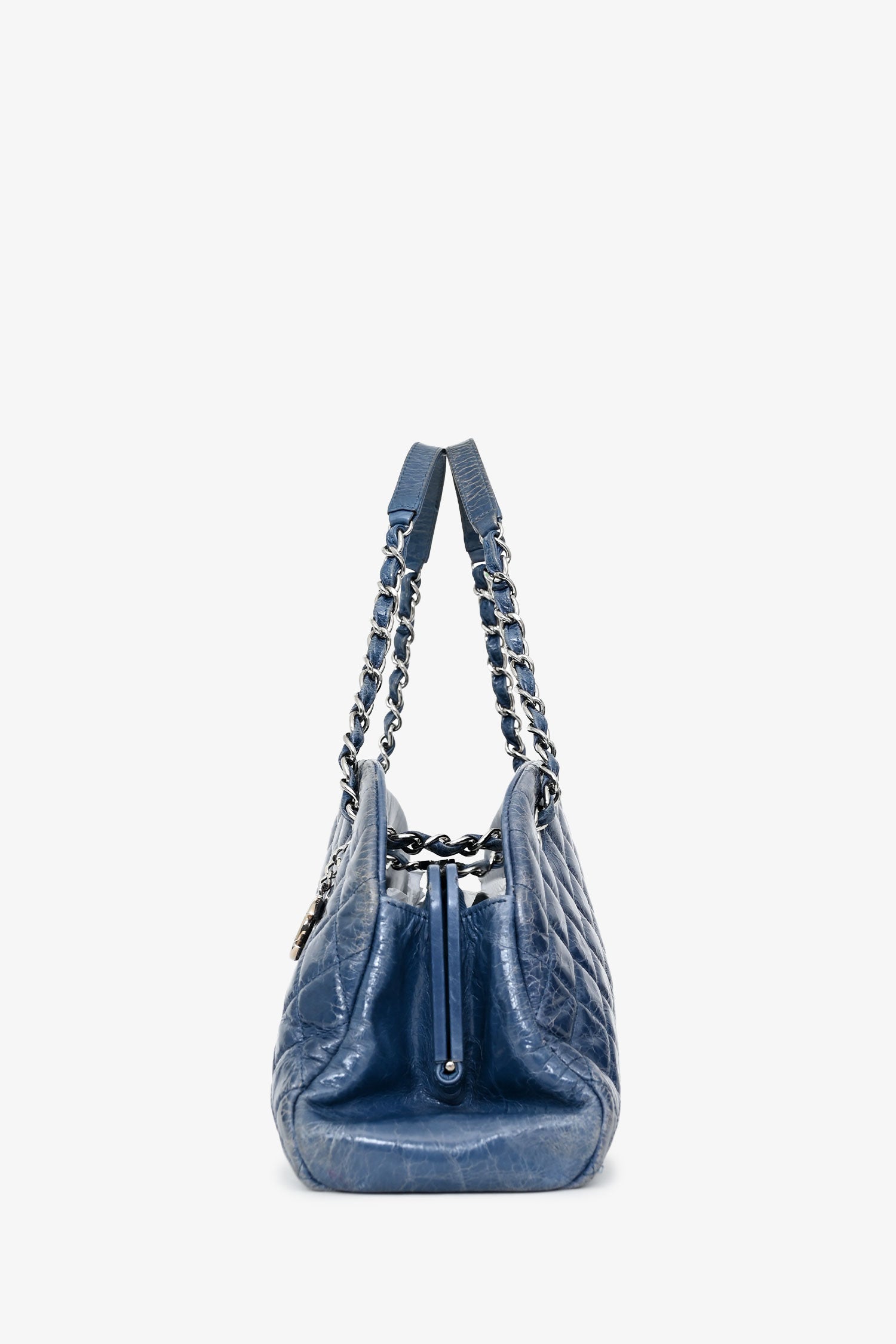 Pre-Loved Chanel™ 2011/2012 Navy Blue Medium "Just Mademoiselle" Bowling Bag