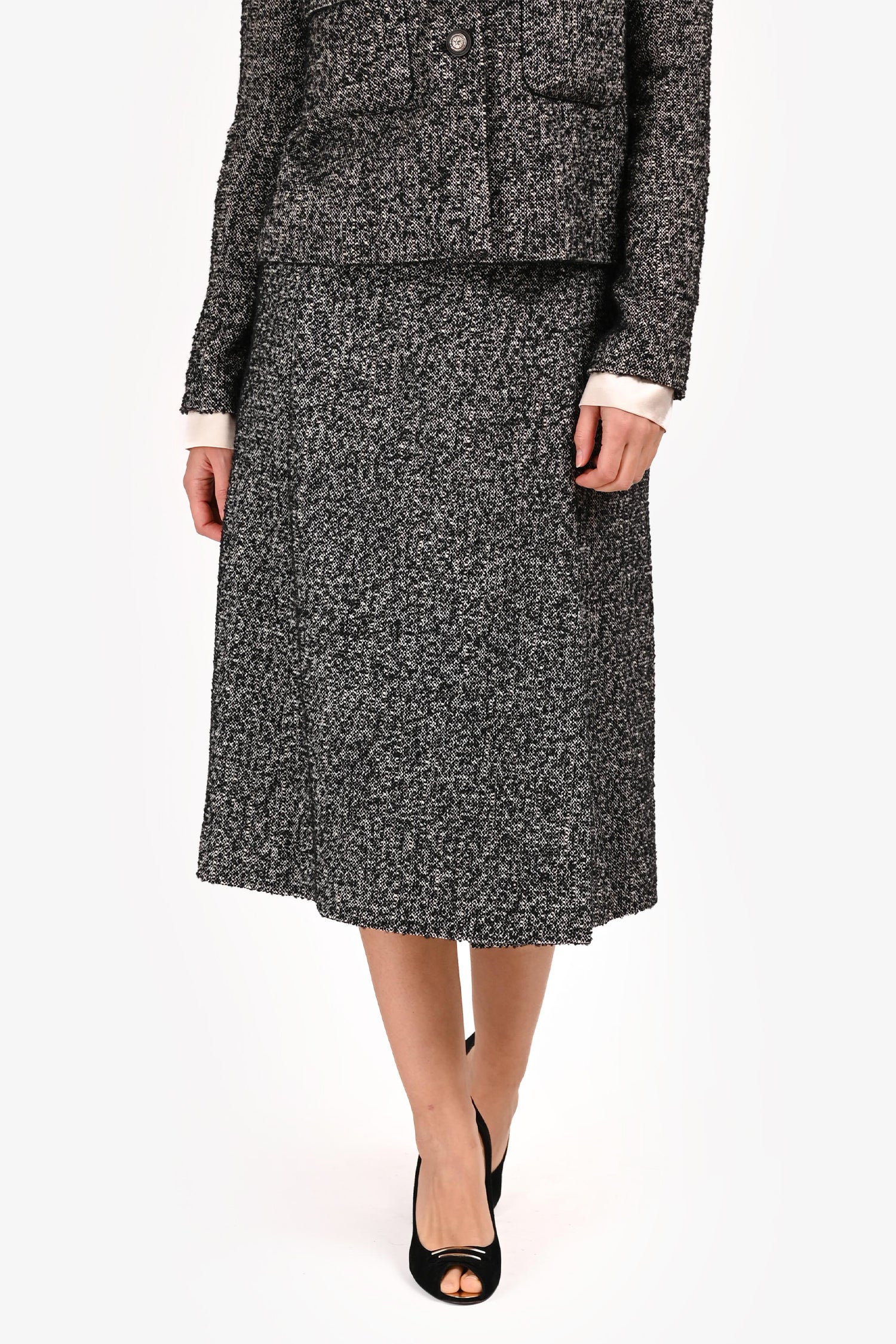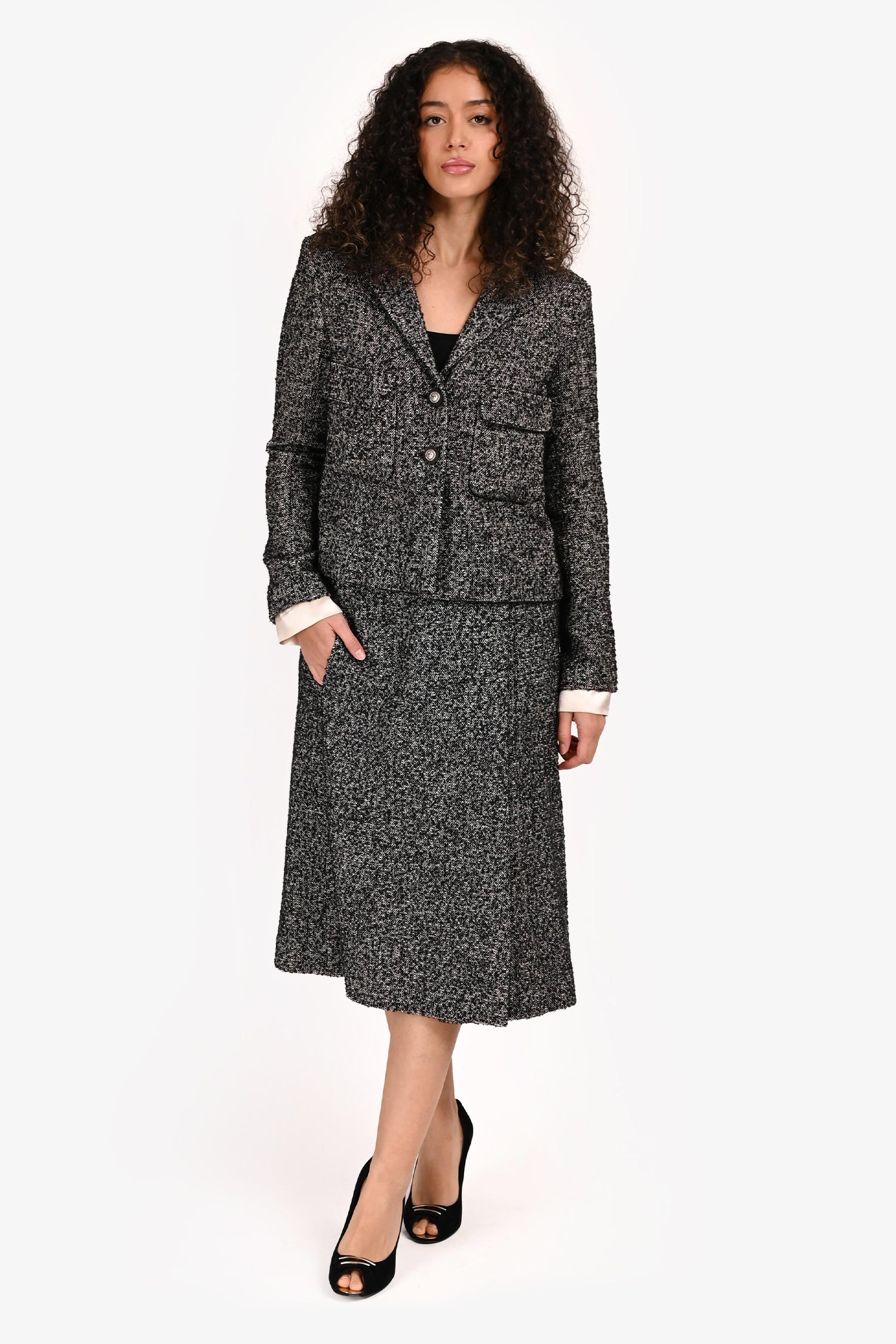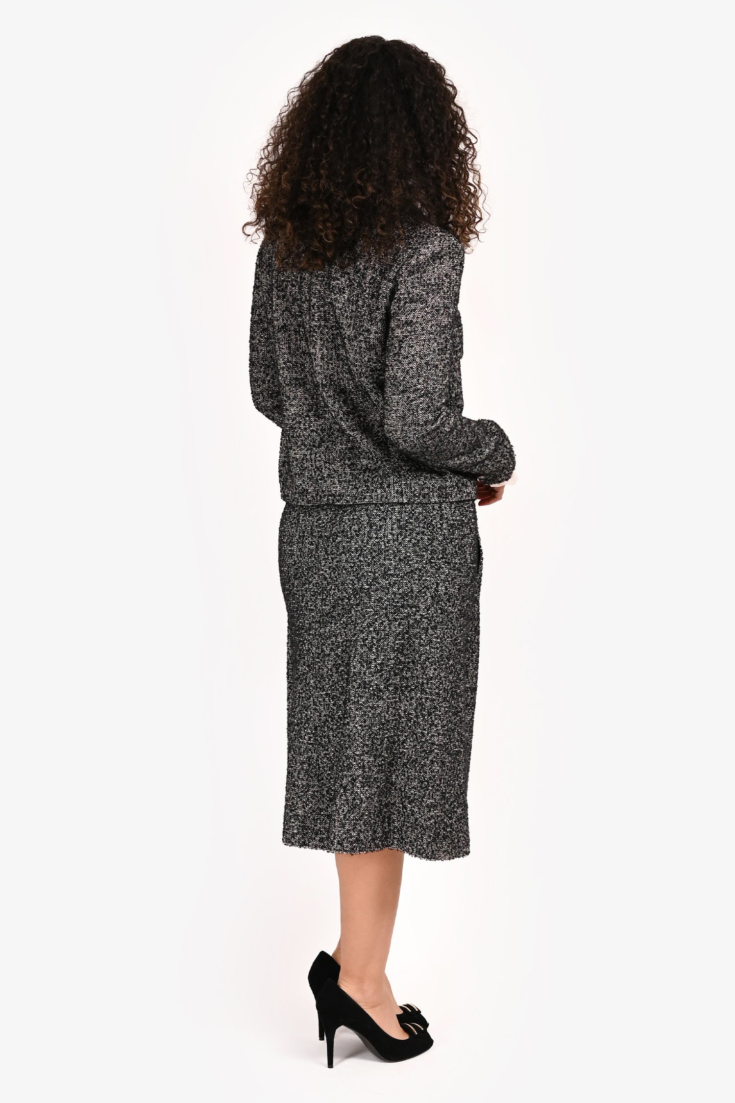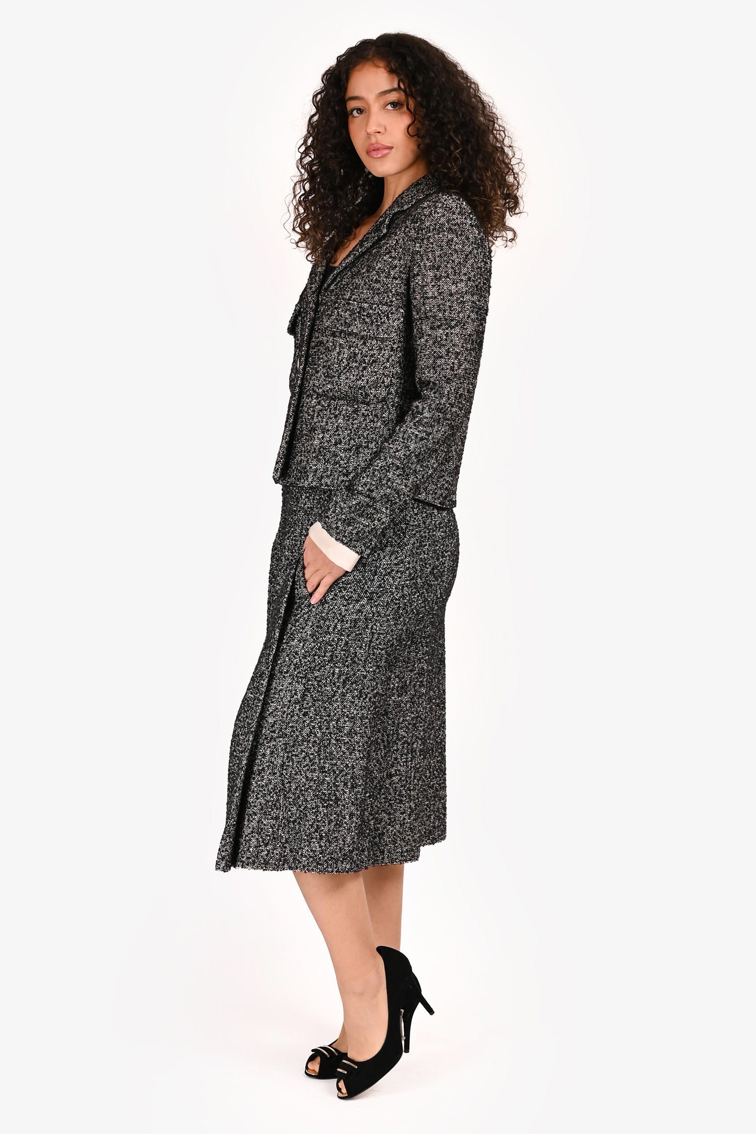 Pre-Loved Chanel™ 2014 Grey Wool Croped Blazer + Midi Skirt Set sz 36