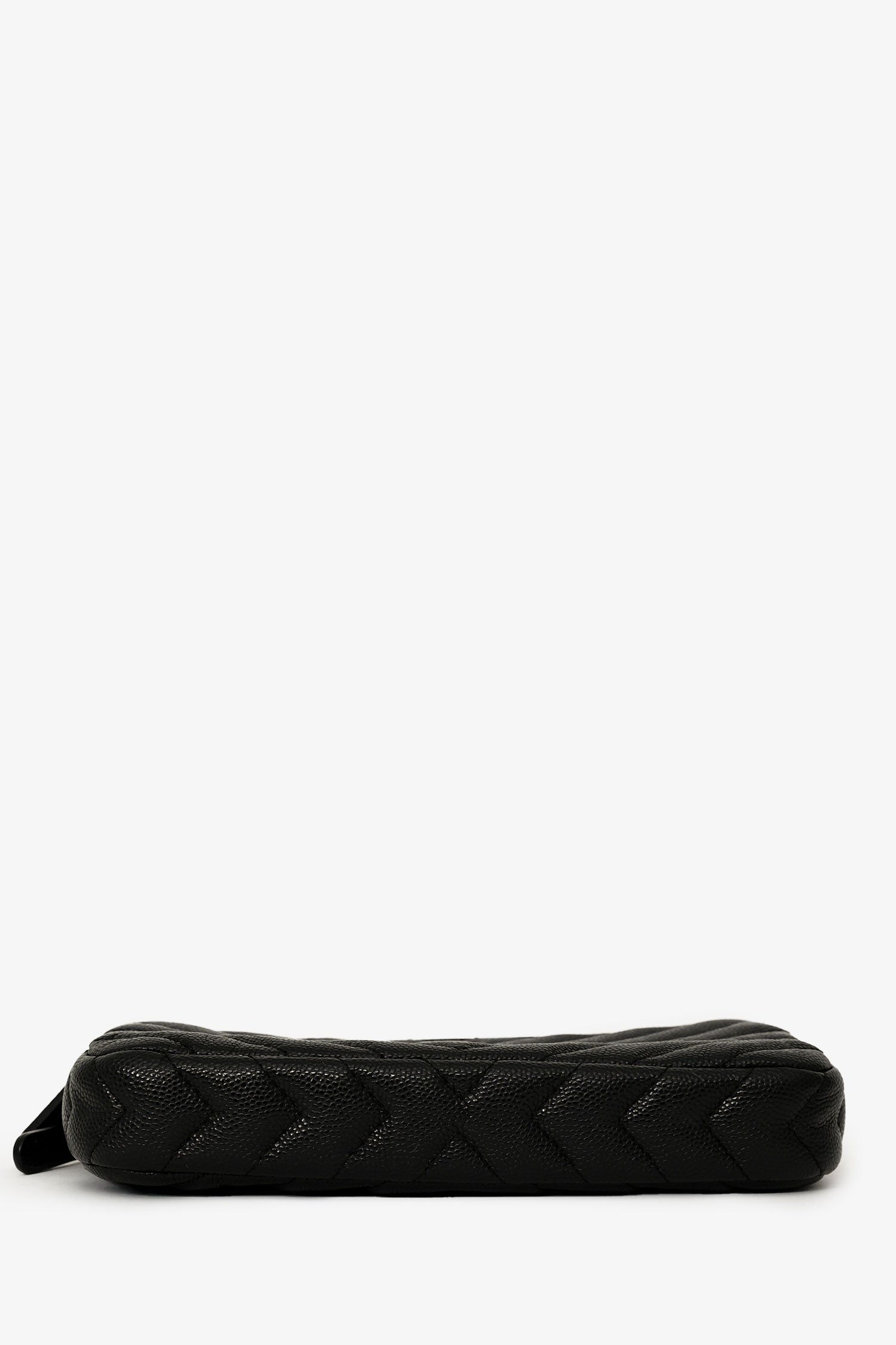Pre-Loved Chanel™ 2017/18 Black Caviar Chevron Double Zip Wallet On Chain
