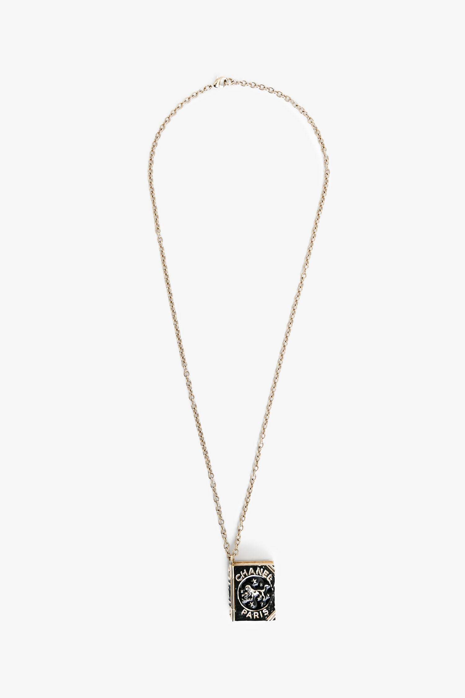 Refresh availabilityPre-Loved Chanel™ 2022 Enamel Lion Book Locket Pendant Necklace. Lobster clasp closure. Gold-tone hardware.
