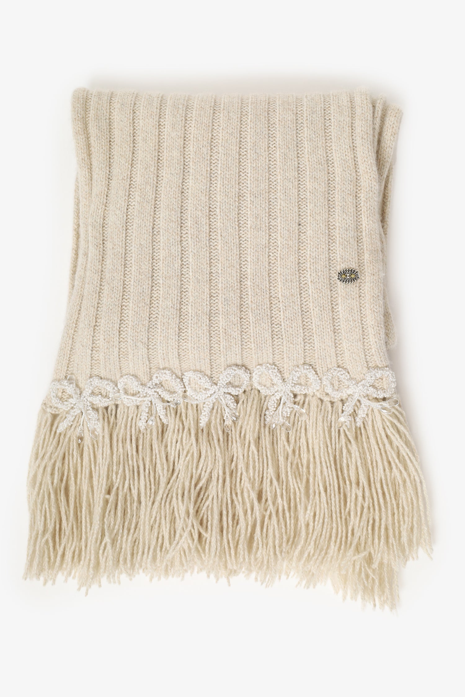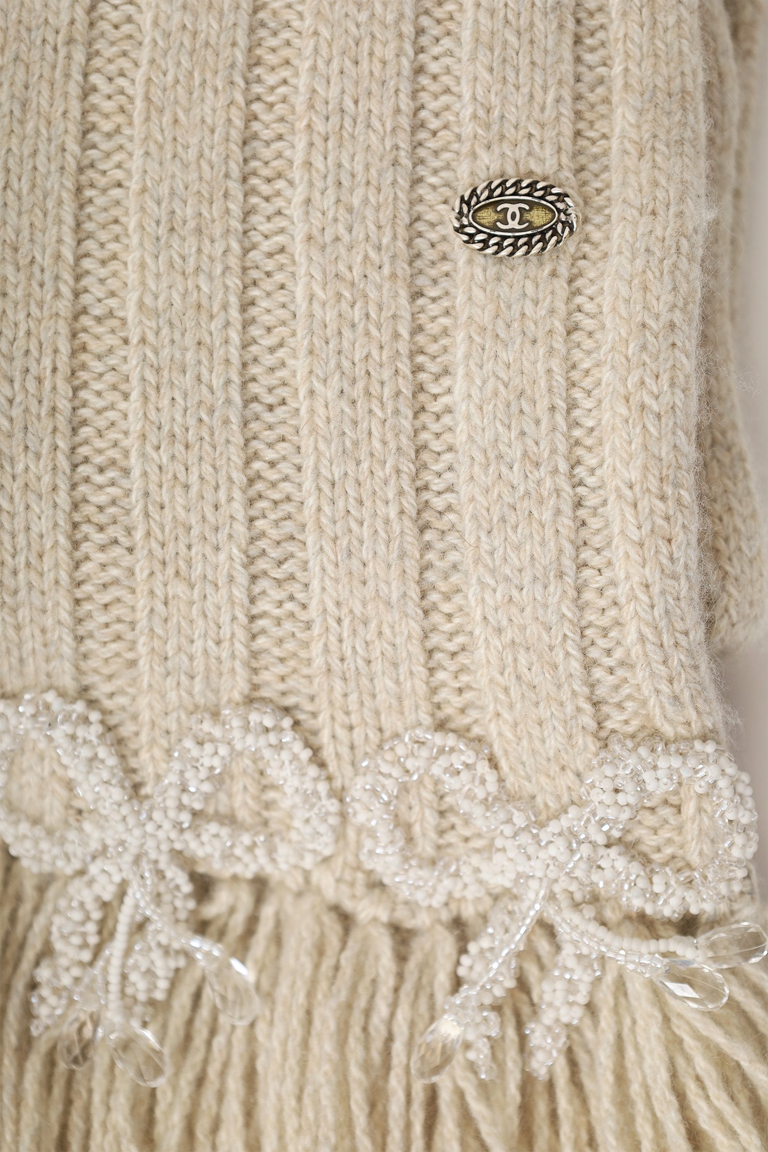 Pre-Loved Chanel™ Beige Cashmere Beaded Scarf
