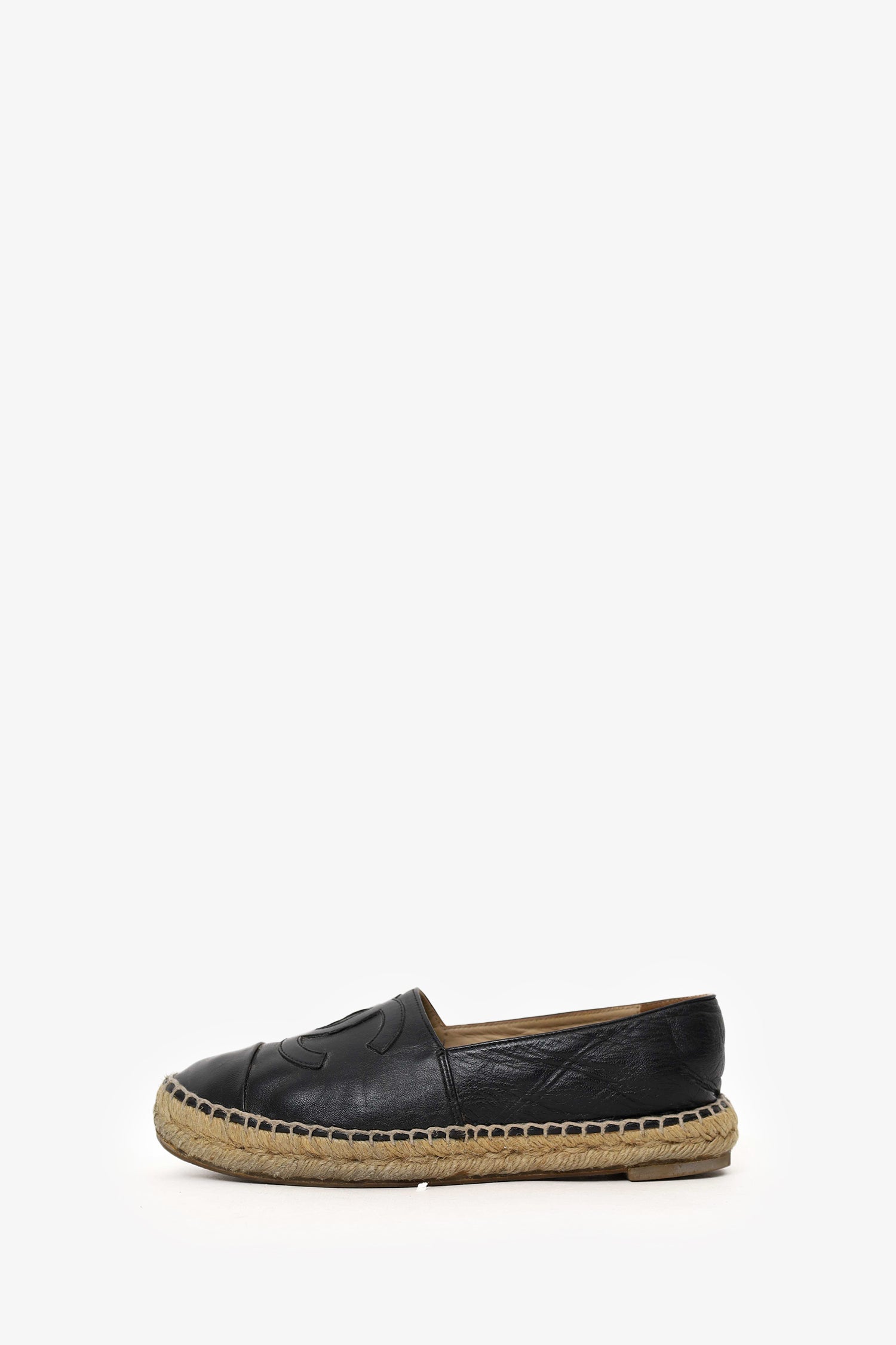 Pre-Loved Chanel Black Lambskin Espadrilles Size 36