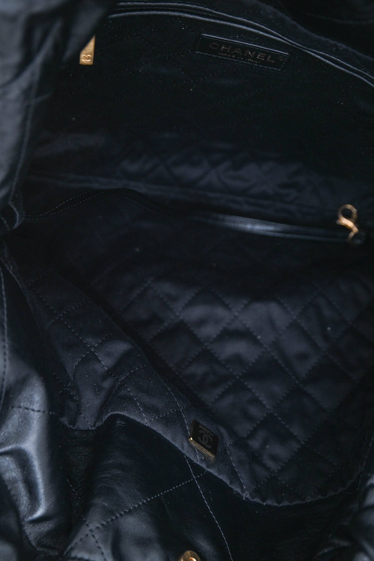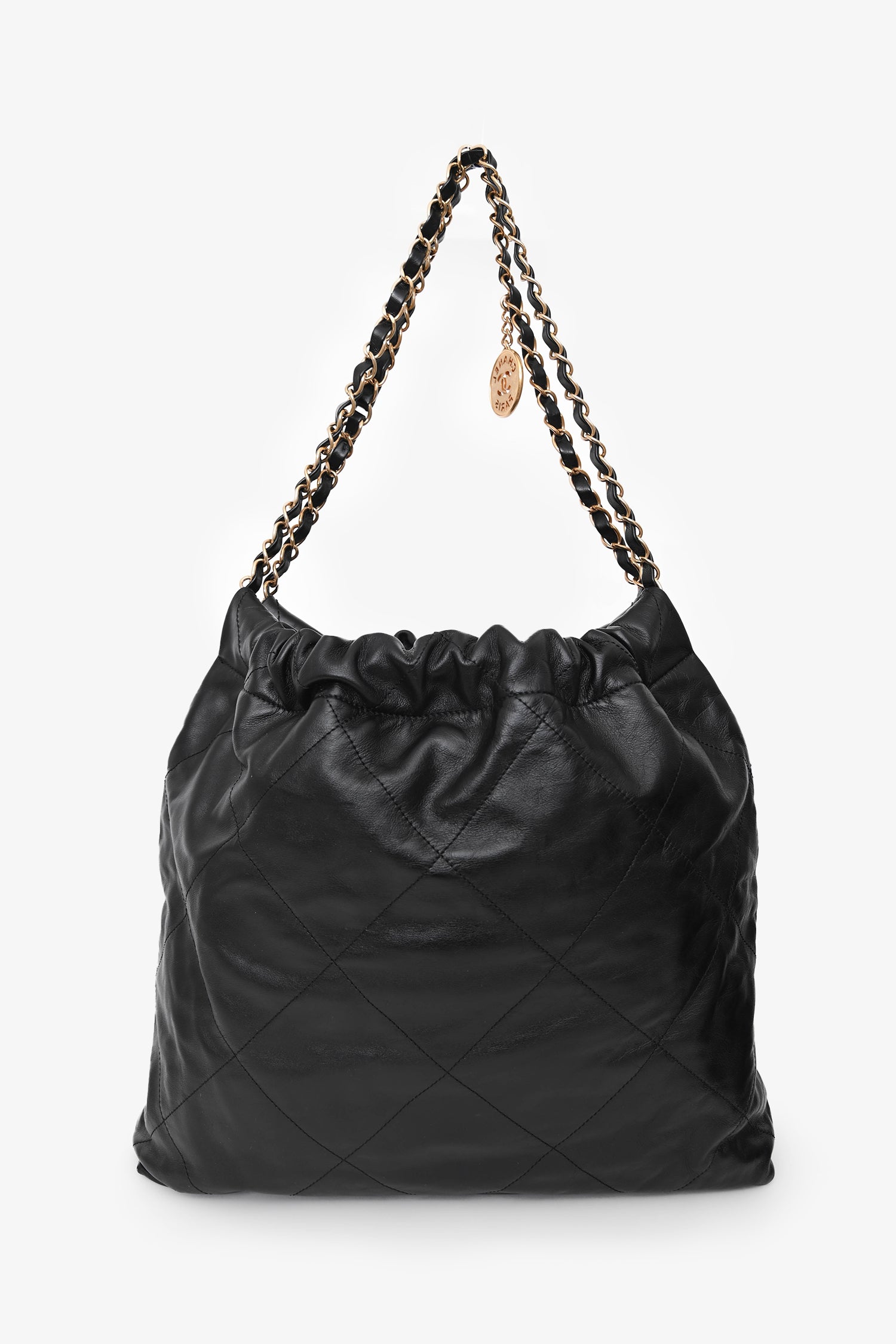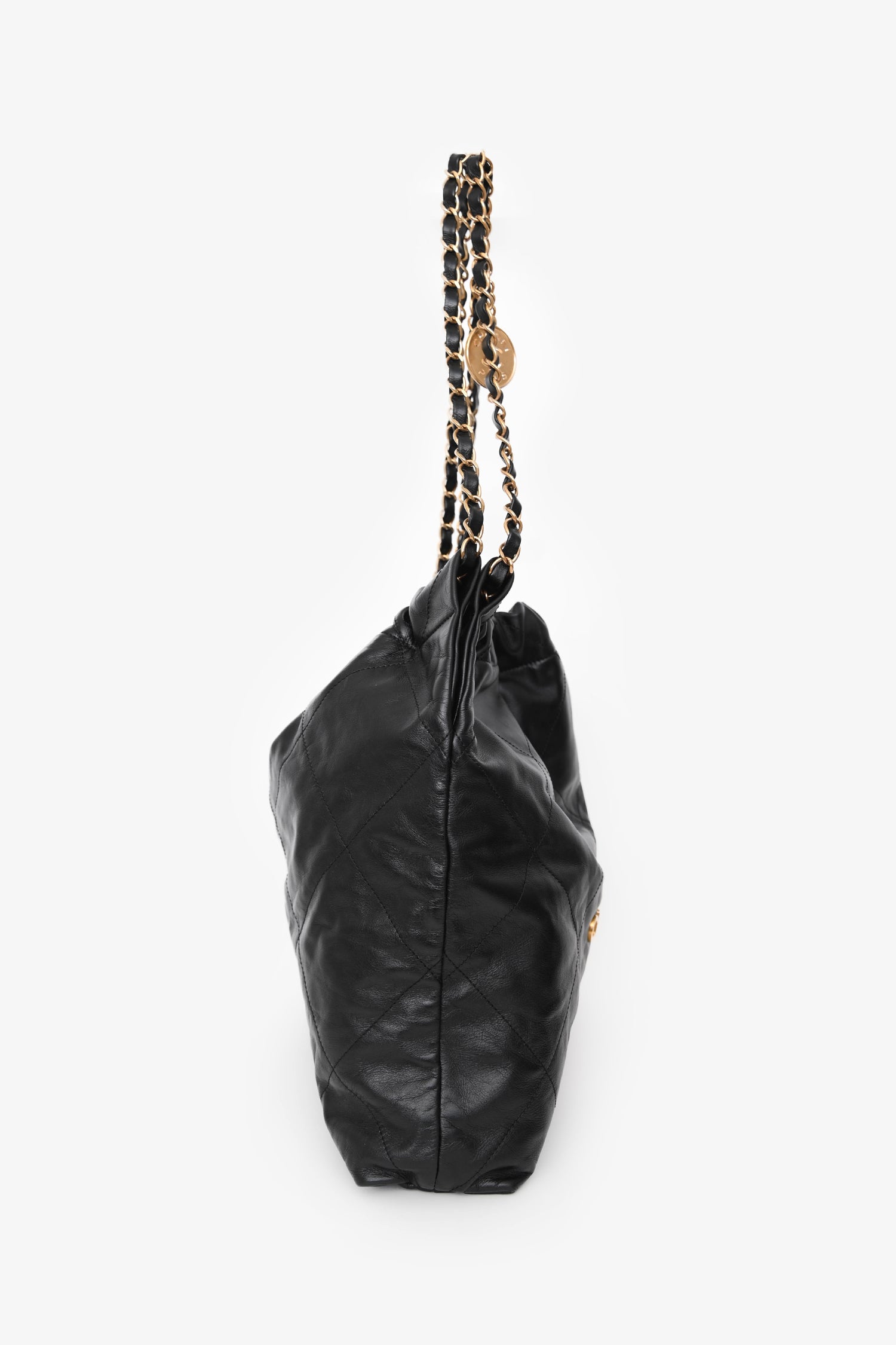 Pre-Loved Chanel™ Black Lambskin Leather 22 Small Hobo Shoulder Bag GHW