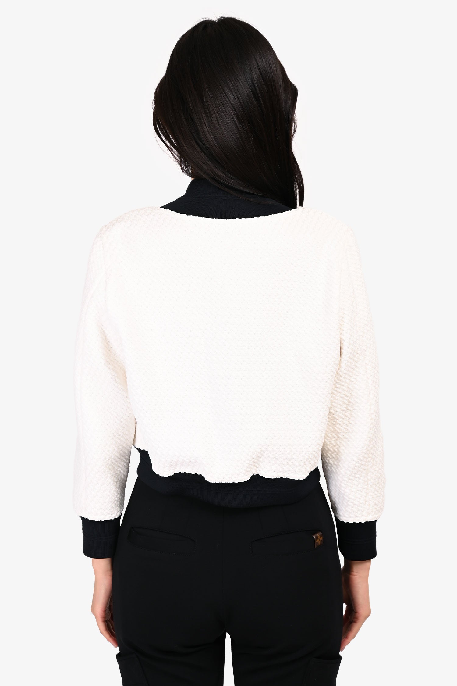 Pre-Loved Chanel™ White/Black Tweed Baseball Style Cropped Jacket Size 36