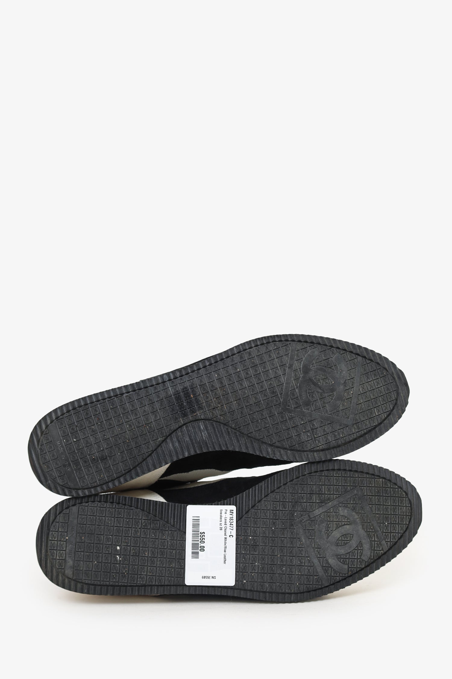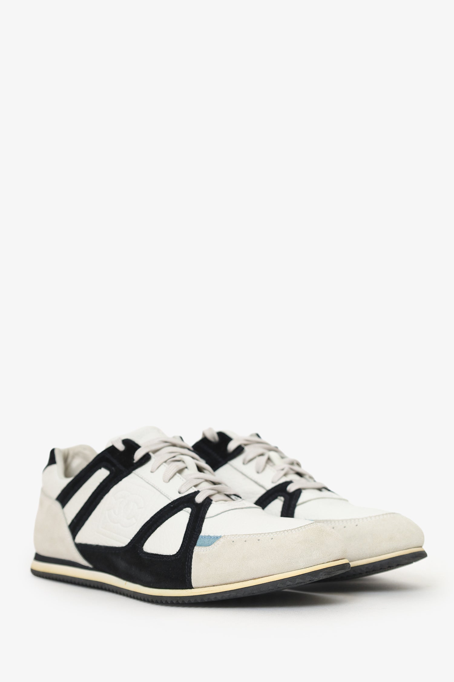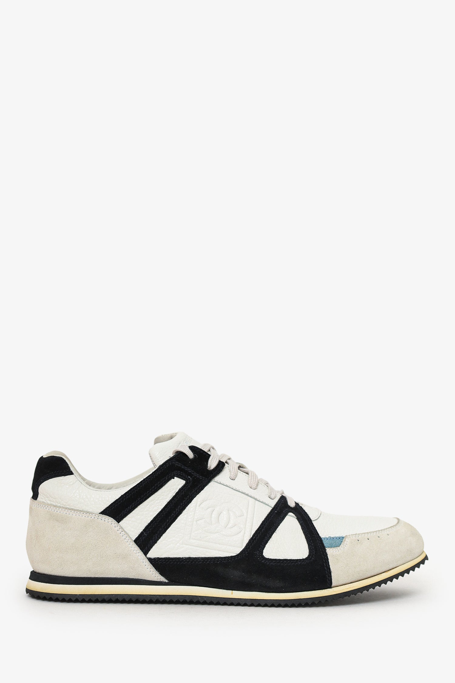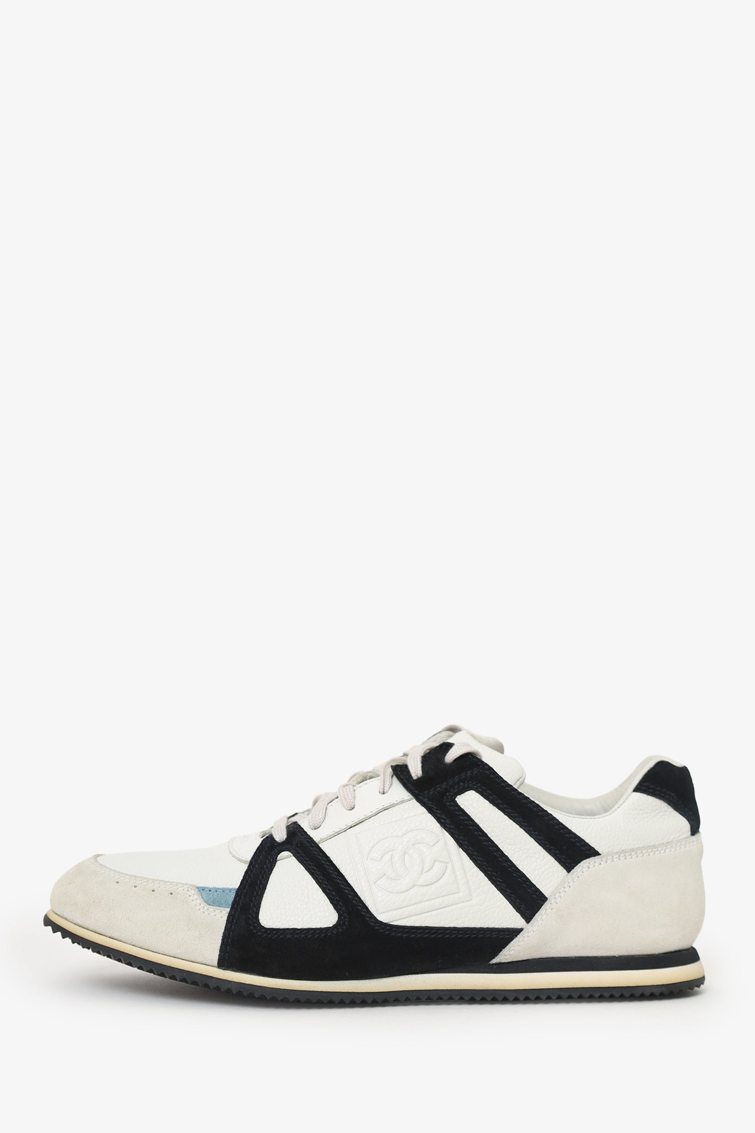 Pre-Loved Chanel™ White/Blue Leather Sneakers Size 39