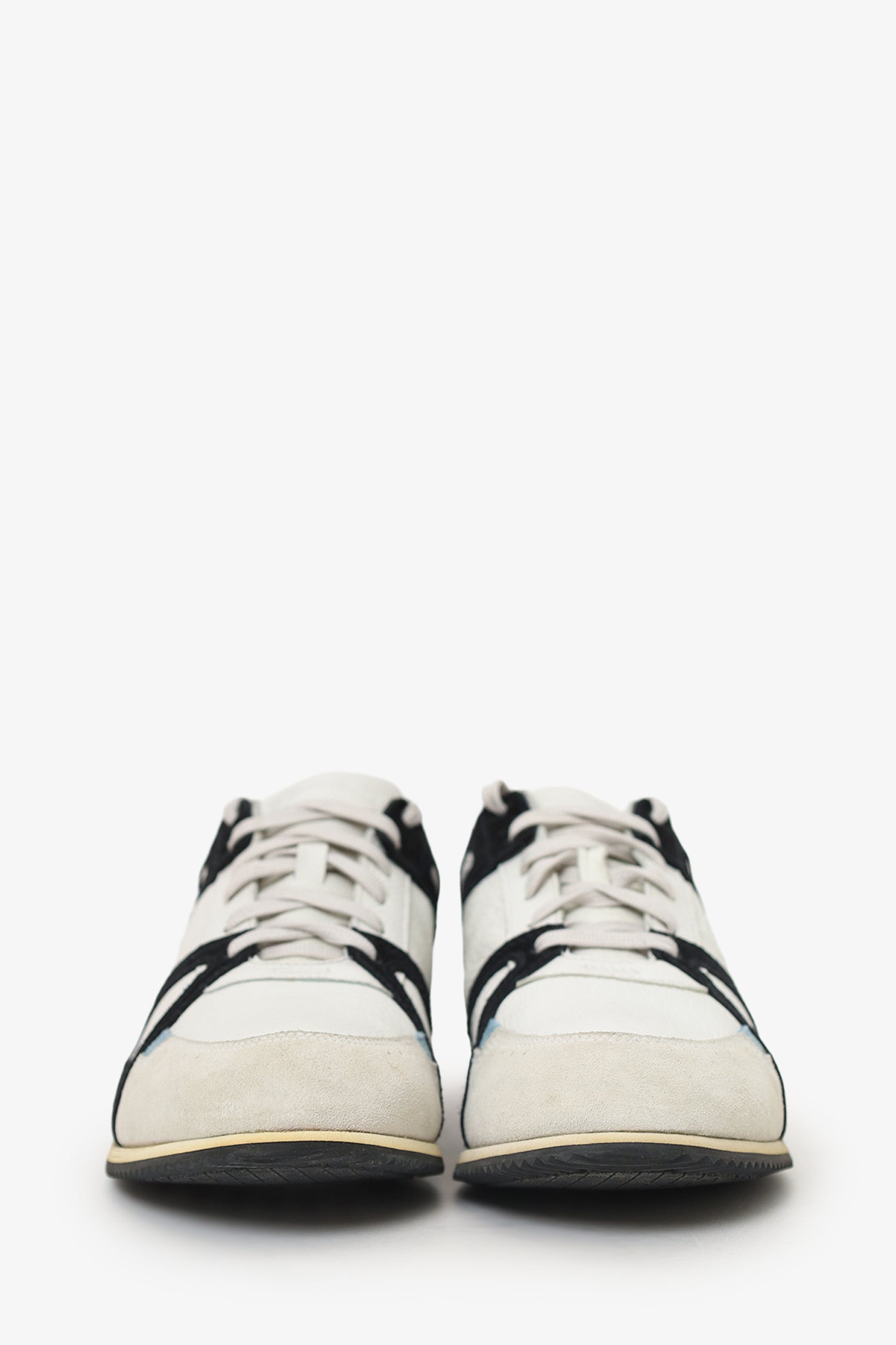 Refresh availabilityPre-Loved Chanel™ White/Blue Leather Sneakers. Slip-on. Round toe. Front lace-up closure. Tonal stitching.