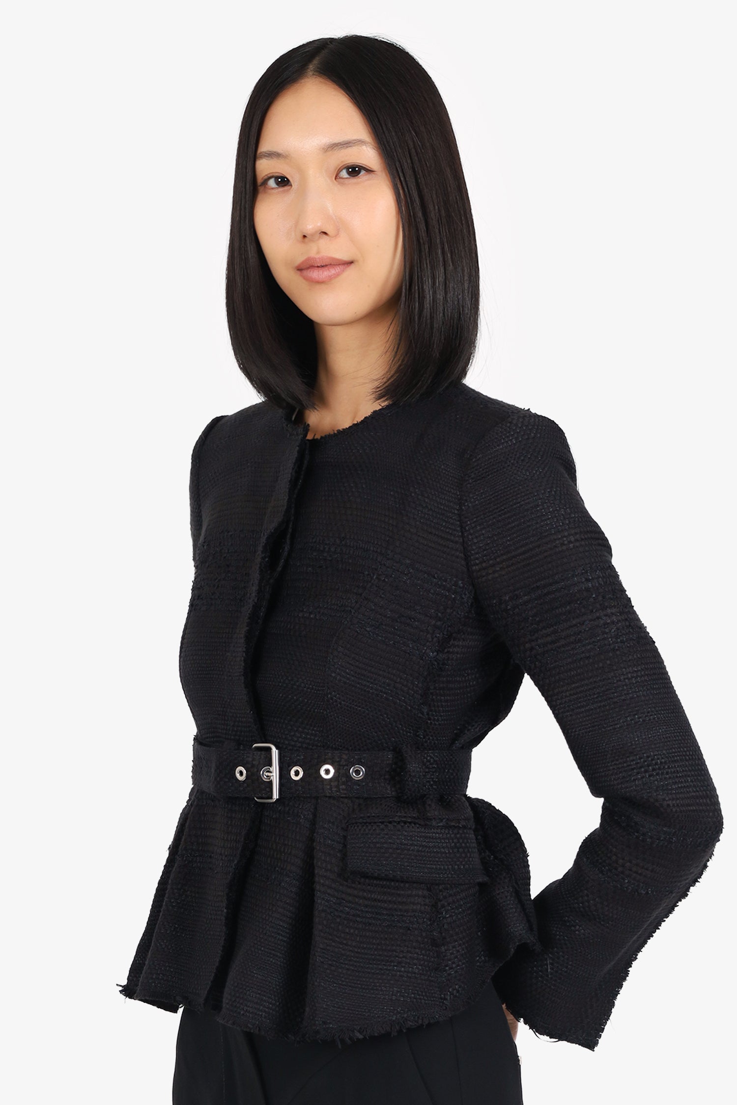 Proenza Schouler Black Tweed Belted Jacket Size 2