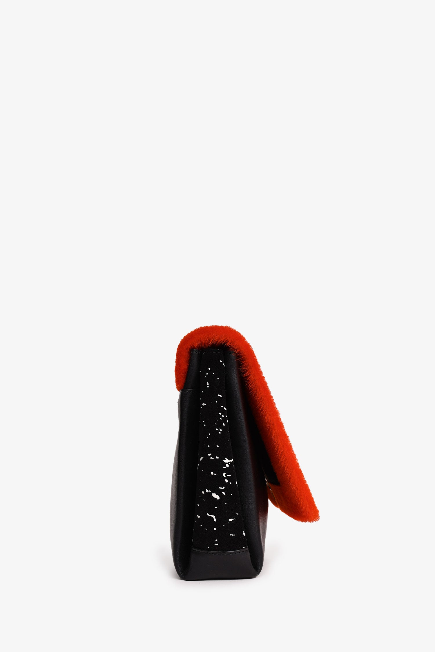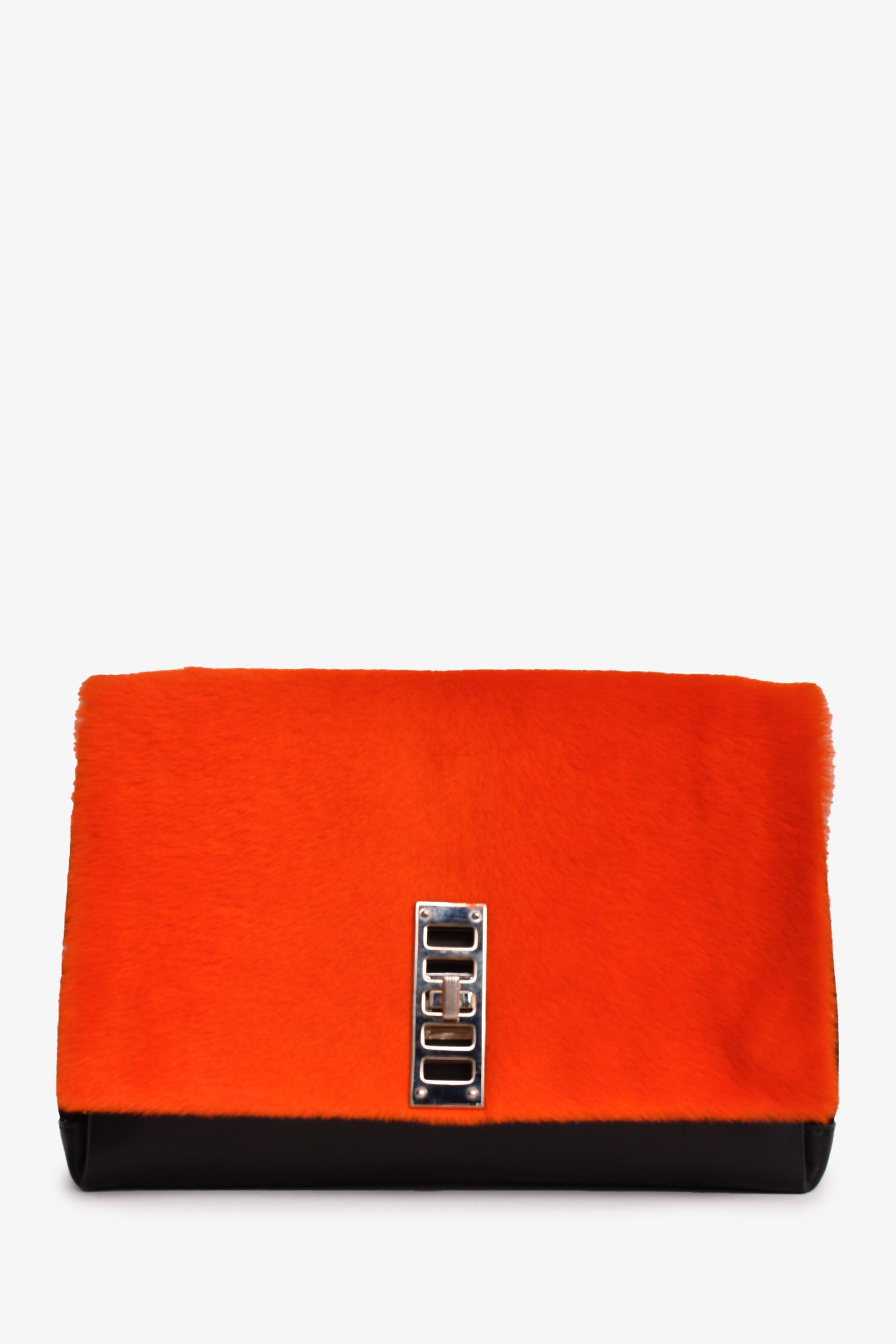 Refresh availabilityProenza Schouler Red Fur/Leather Medium Flap Clutch. Front fold-over flap with turn-lock closure. Black suede interior lining. Single interior wall zip pocket. Silver-tone hardware.